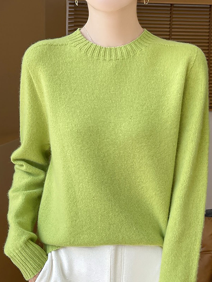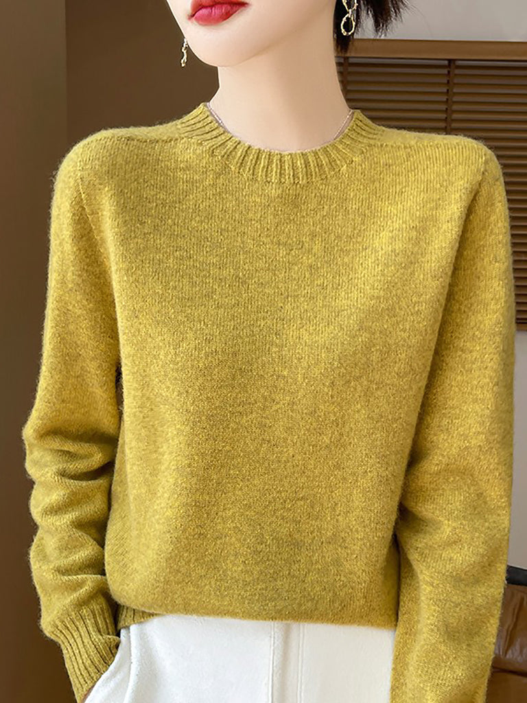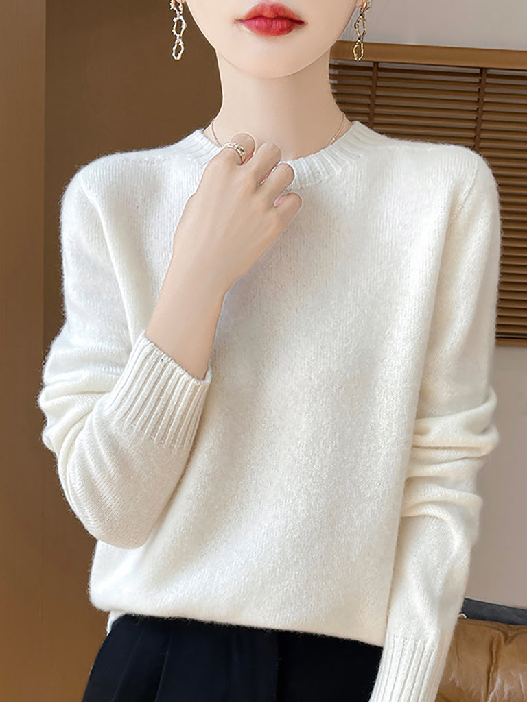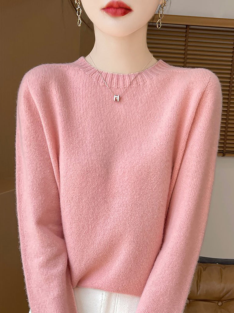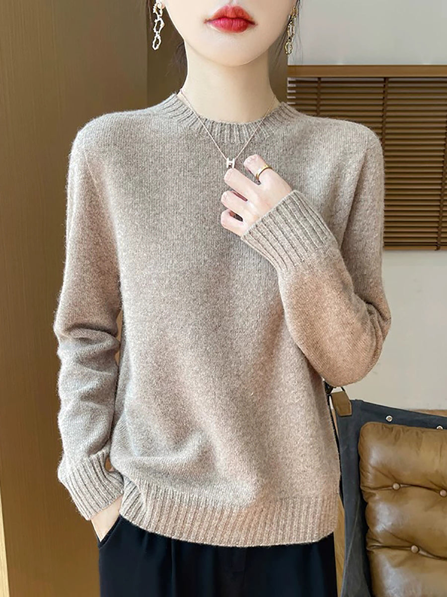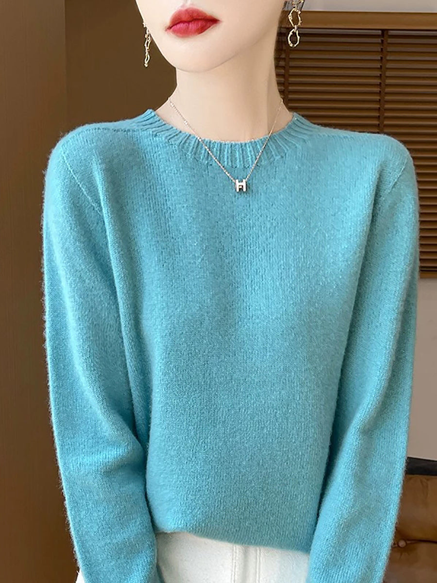 Pulover tricotat cu guler în formă de O pentru femei, de iarnă, casual, în culori pure