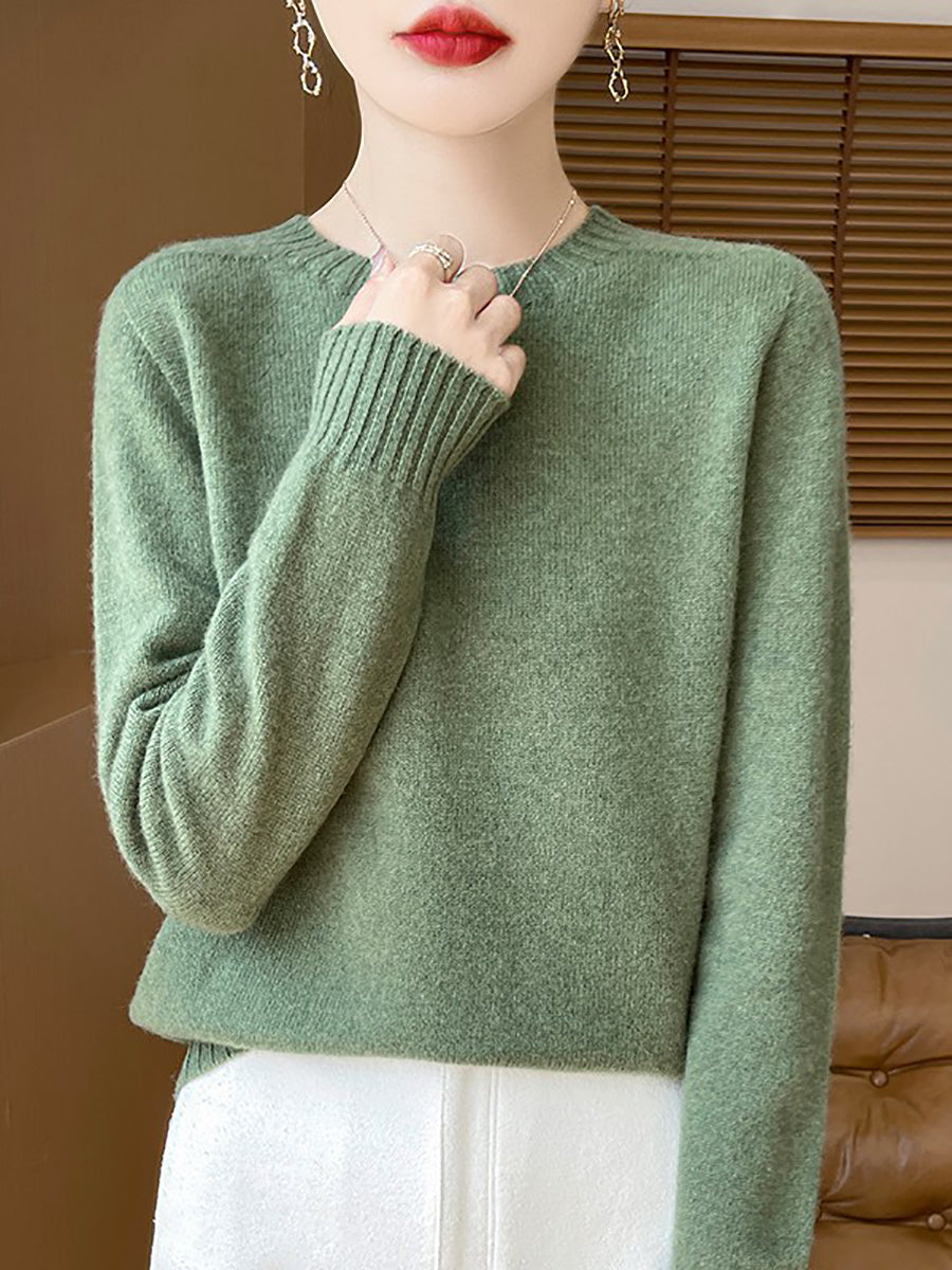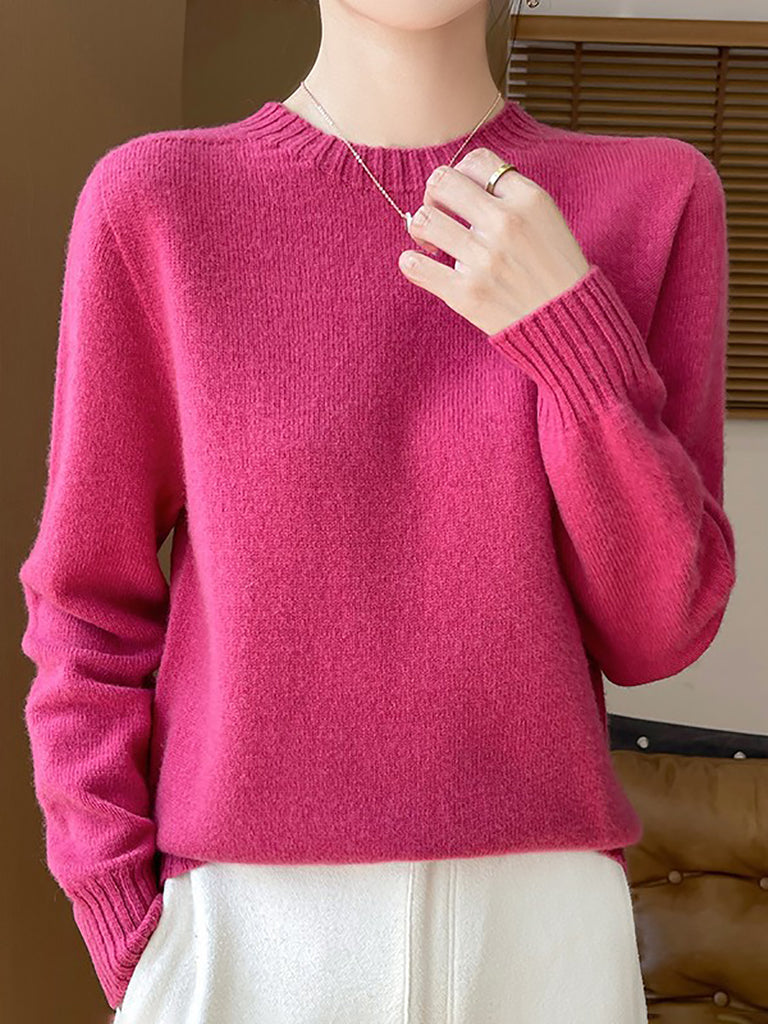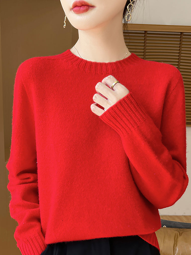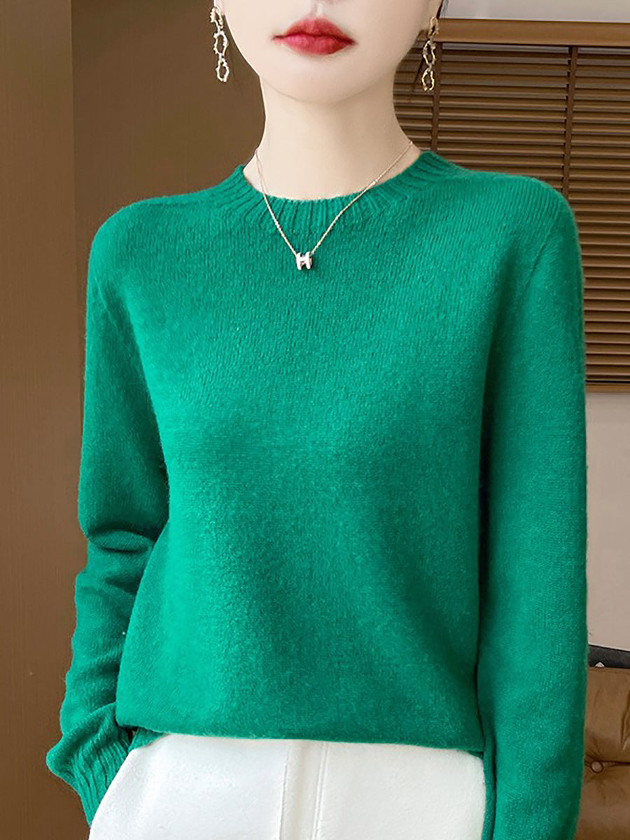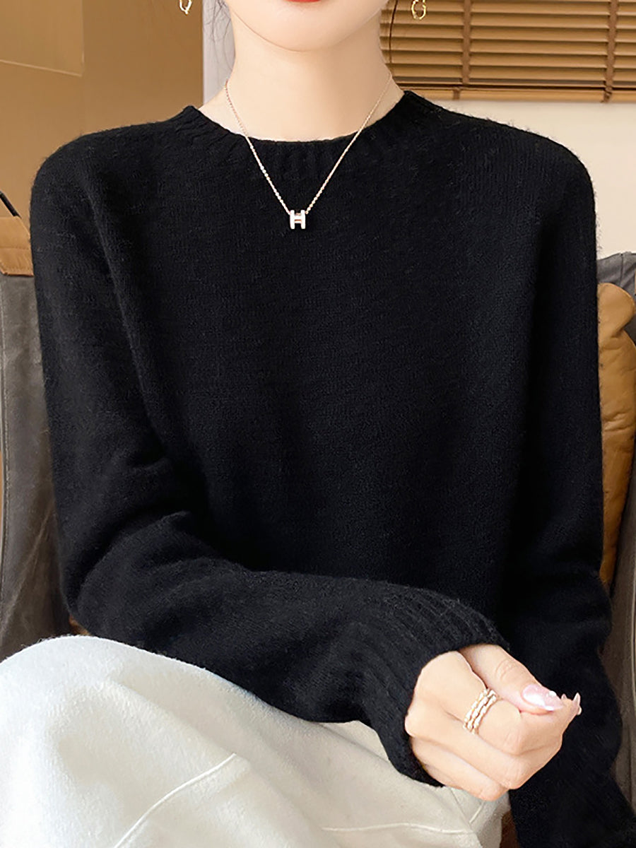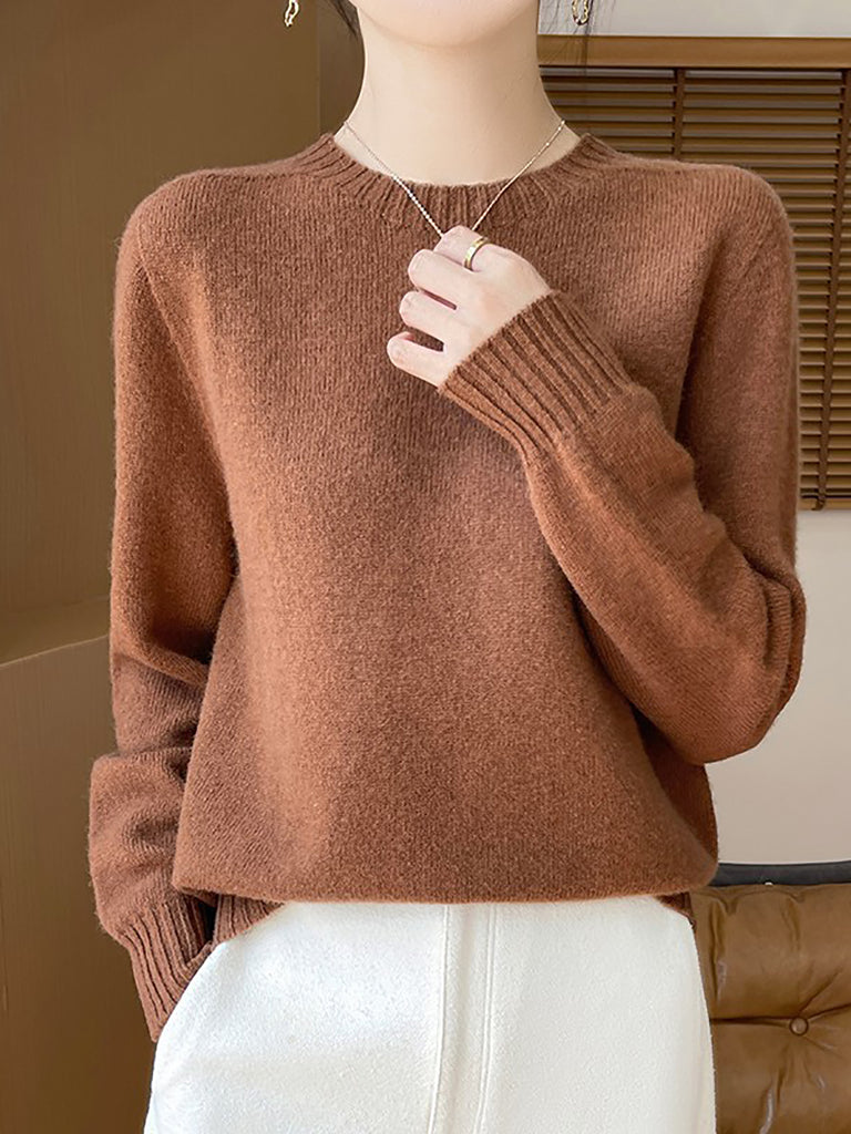 Pulover tricotat cu guler în formă de O pentru femei, de iarnă, casual, în culori pure