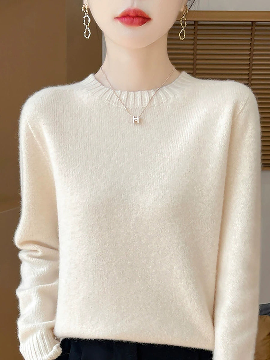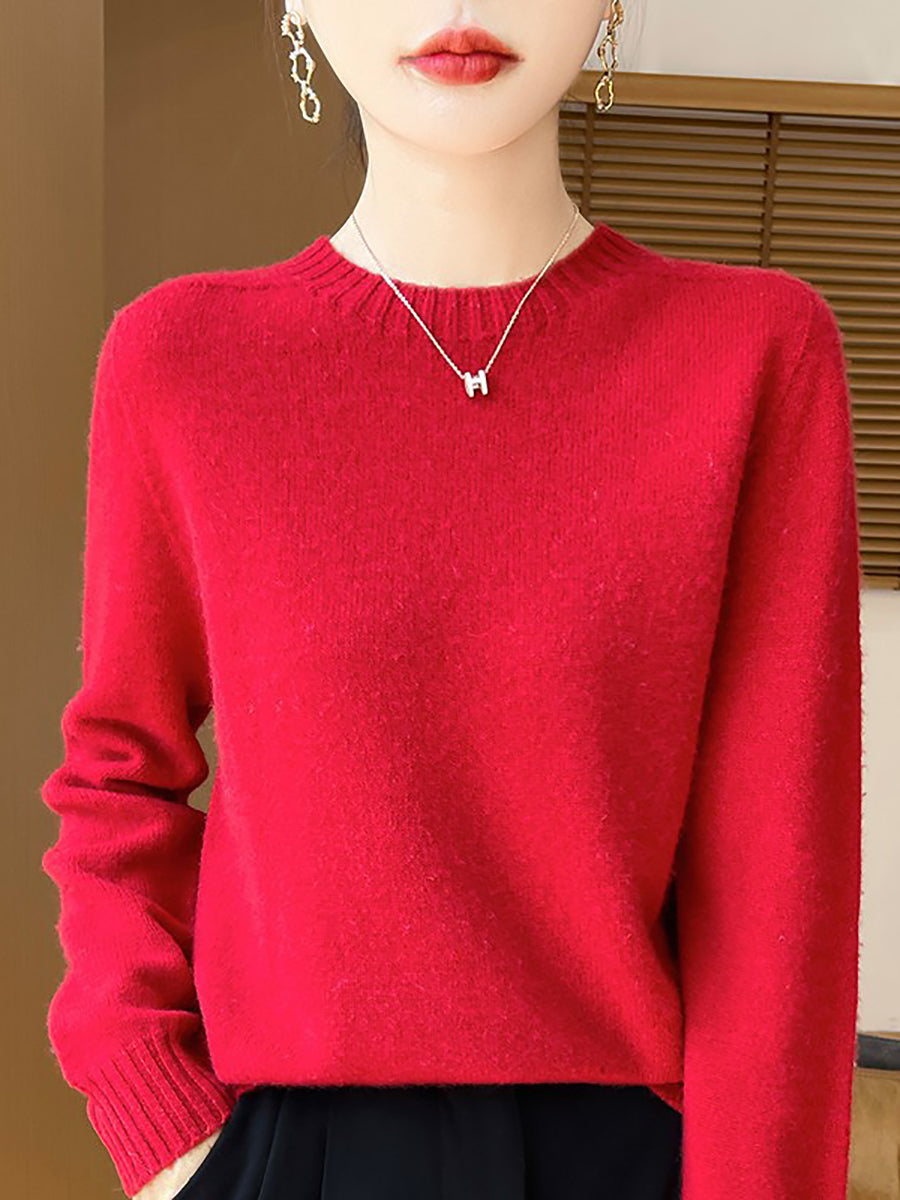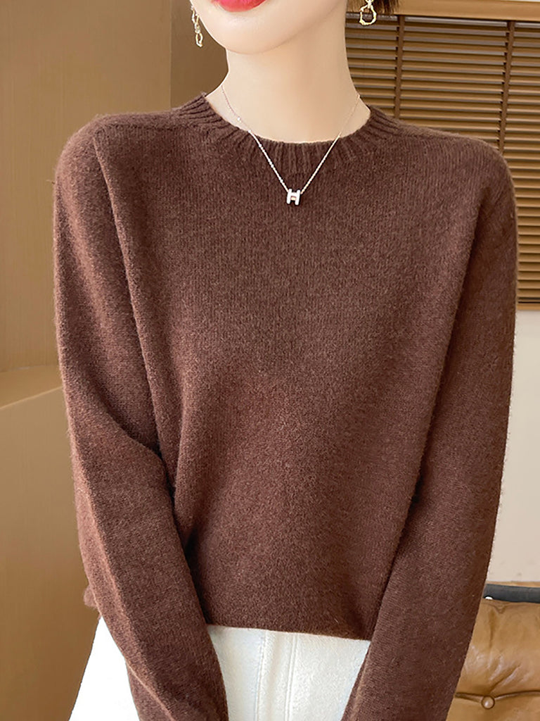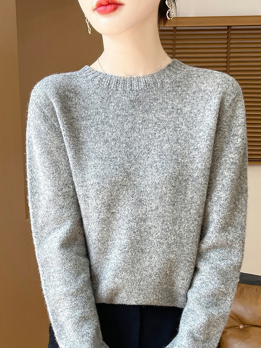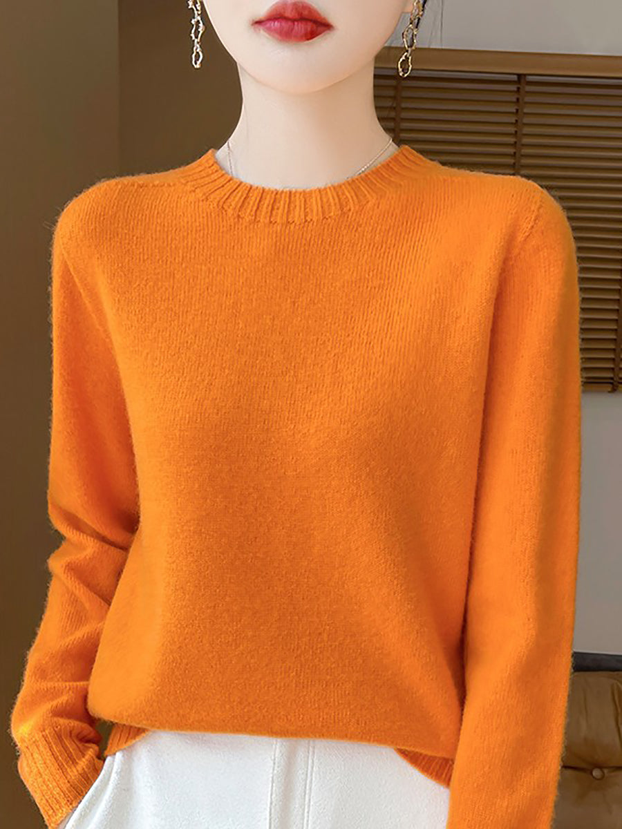 Pulover tricotat cu guler în formă de O pentru femei, de iarnă, casual, în culori pure