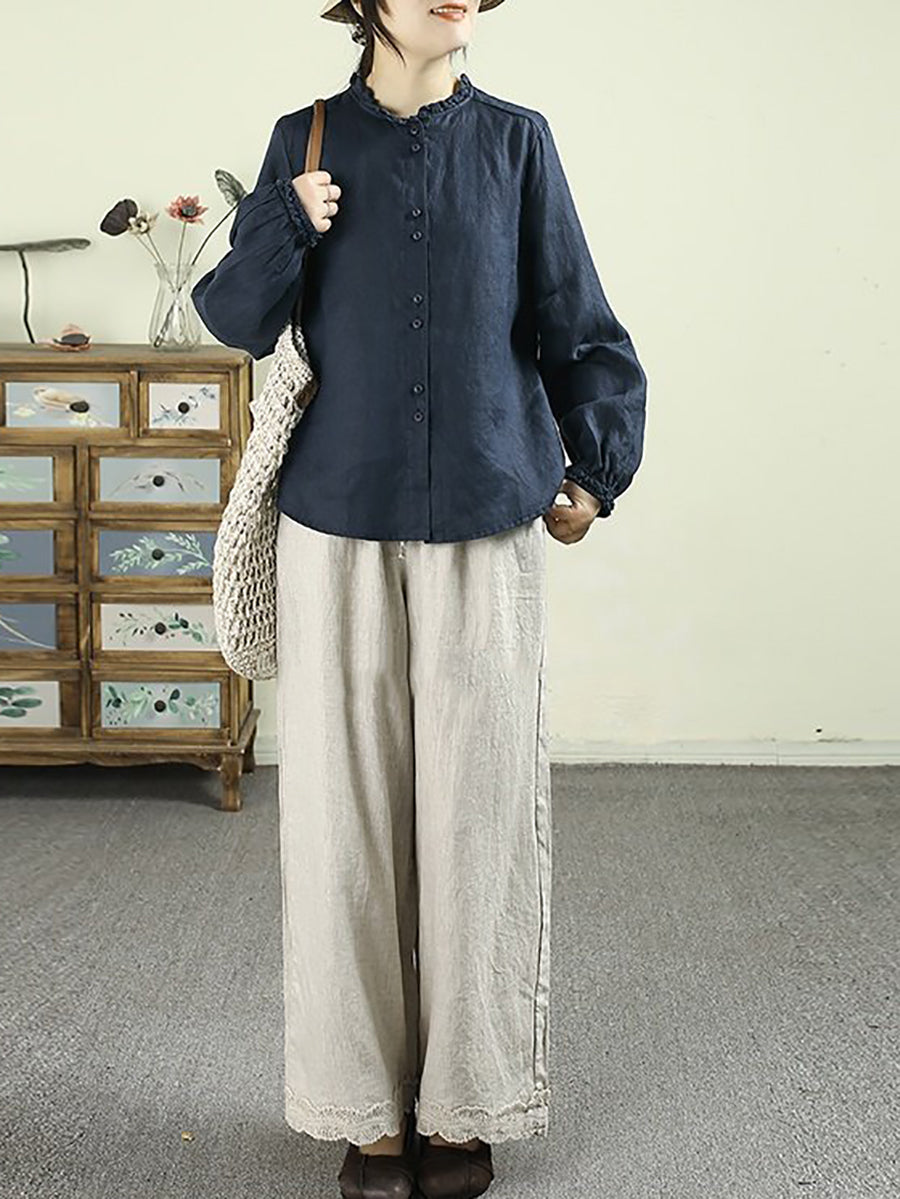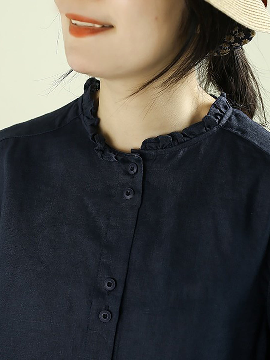Cămașă de damă Artsy Spring, culoare pură, cu guler înalt, 100% in