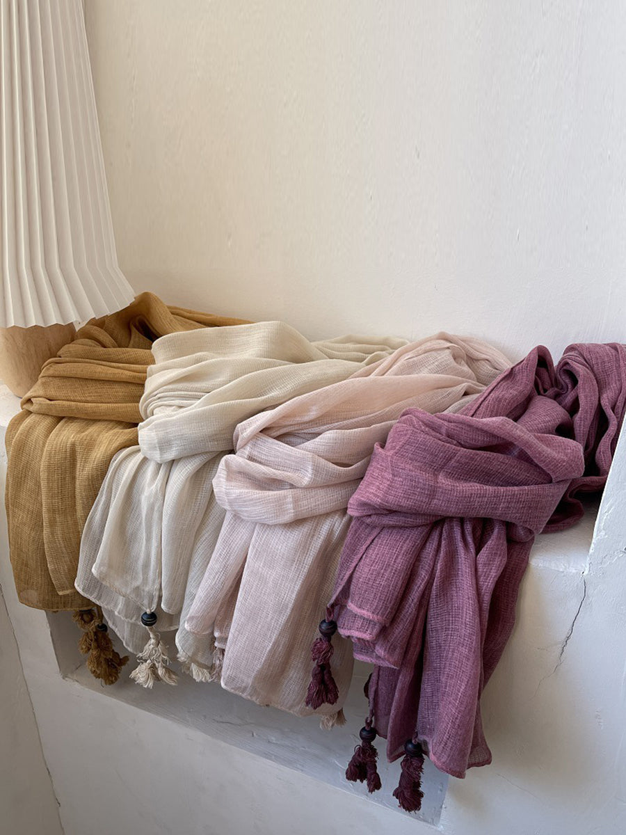 Eșarfă retro de vară din bumbac cu ciucuri pentru femei