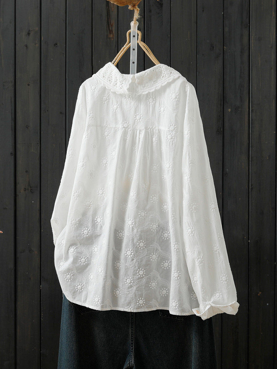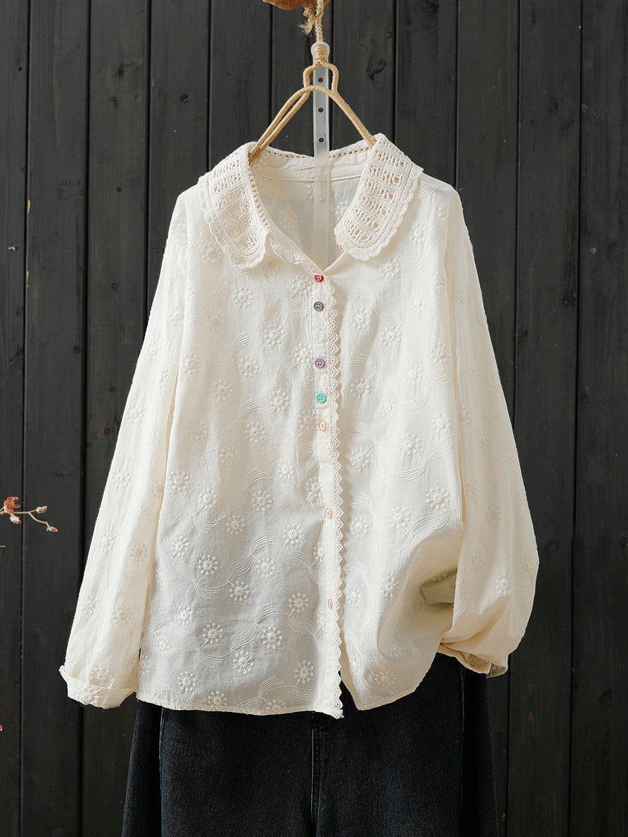 Cămașă de primăvară pentru femei, cu broderie artistică, 100% bumbac