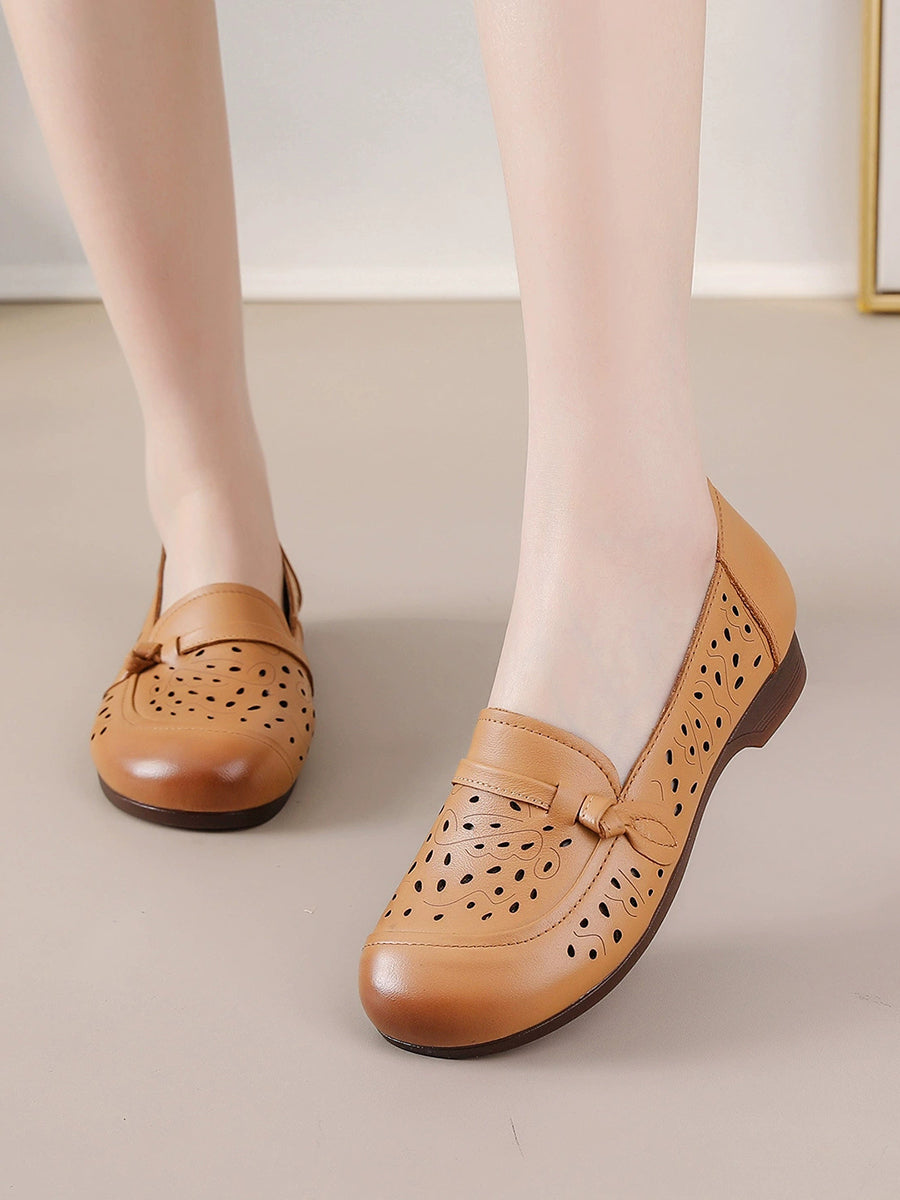 Pantofi de vară pentru femei din piele naturală cu toc jos