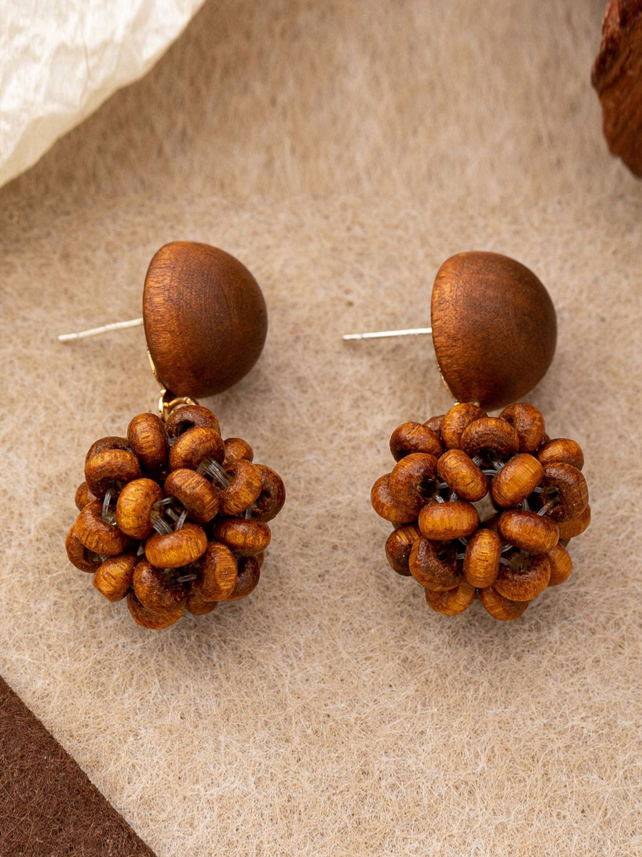 Cercei vintage pentru femei cu con de pin din lemn S925, argint