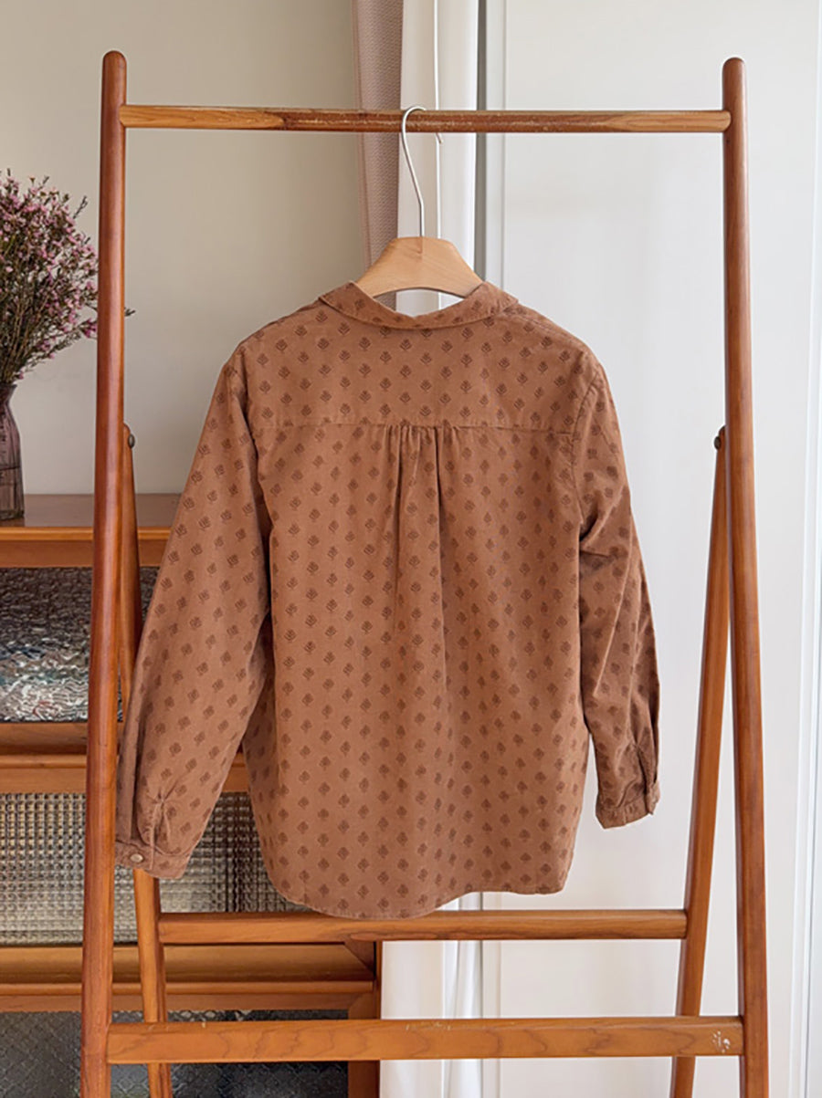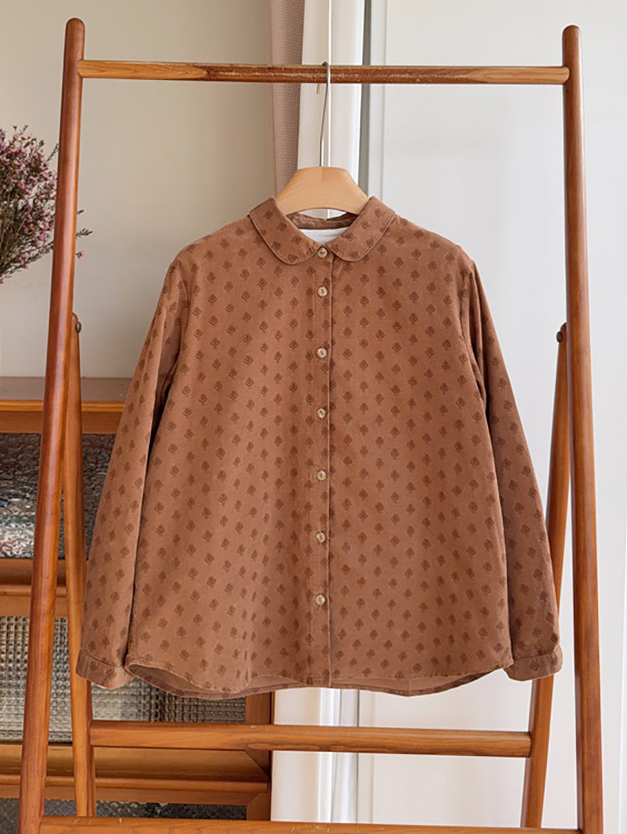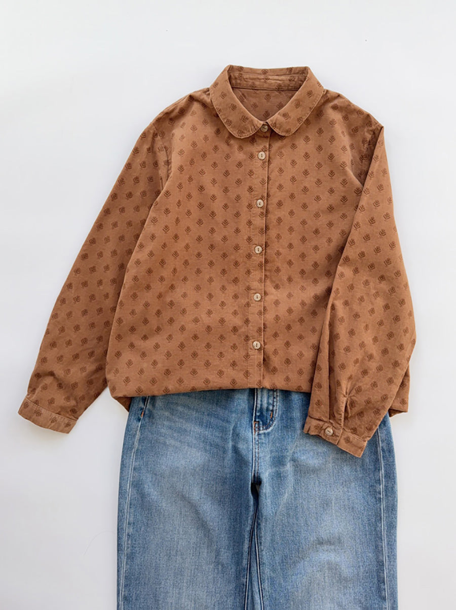 Konstnärlig höstprickig manchesterskjorta med nedåtgående krage för kvinnor
