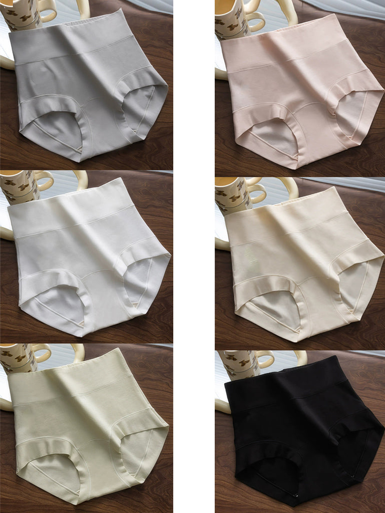 6 stycken kvinnor casual ren färg hög midja underkläder