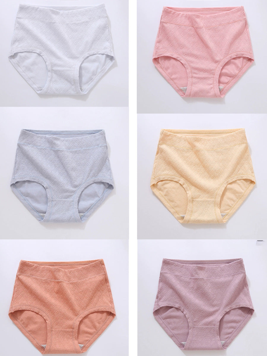 6 stycken kvinnor casual ren färg hög midja underkläder