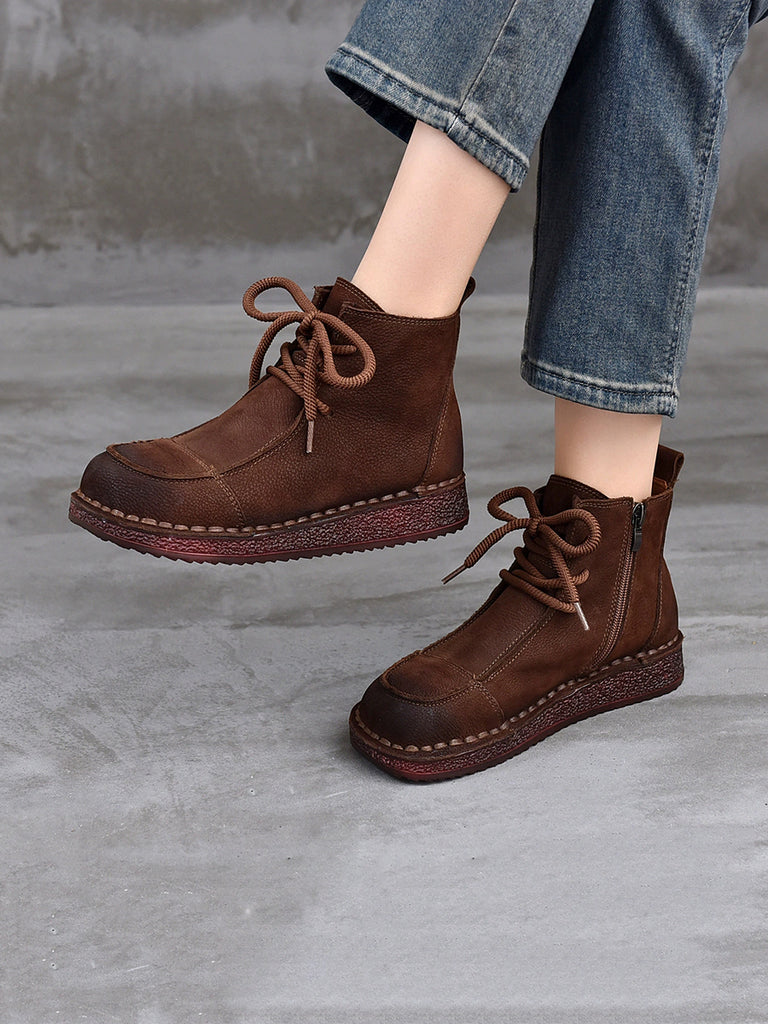 Kvinnors vinterstövlar i äkta läder med skarvade ankelstövlar