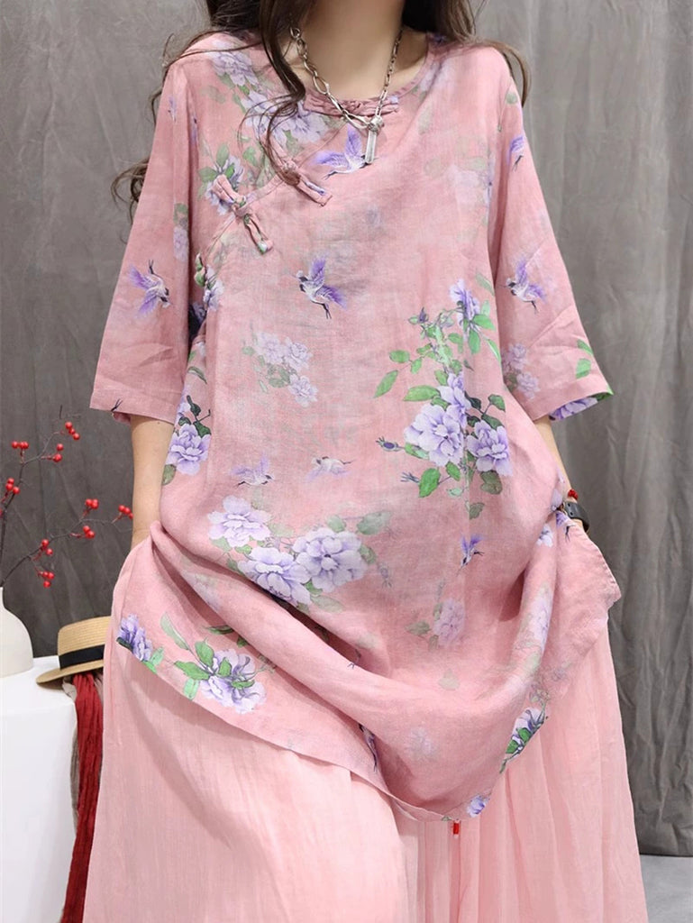Kvinnors vinterkappa i etnisk stil, ren färg, 100 % linne vadderad