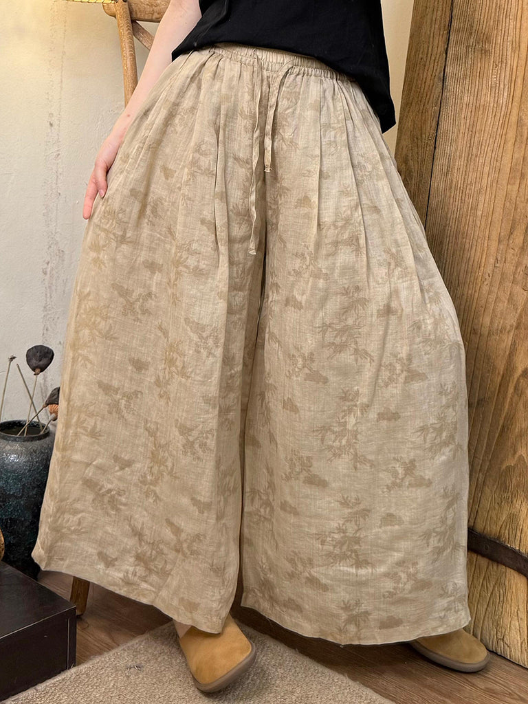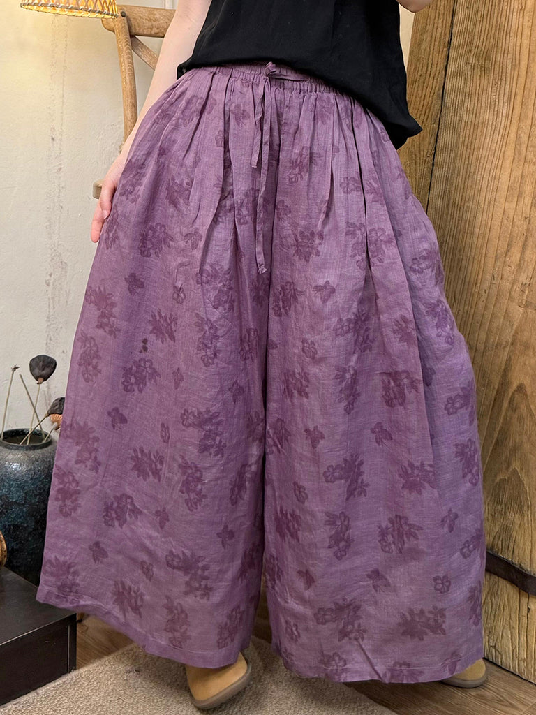 Vinterbyxor med vida ben och fleecefoder i 100 % bomull för kvinnor, retrotryck