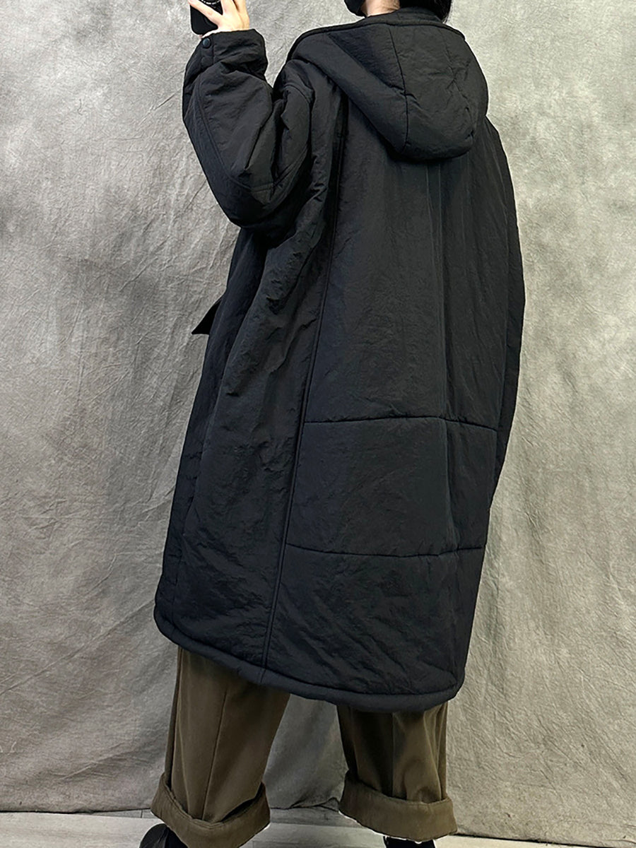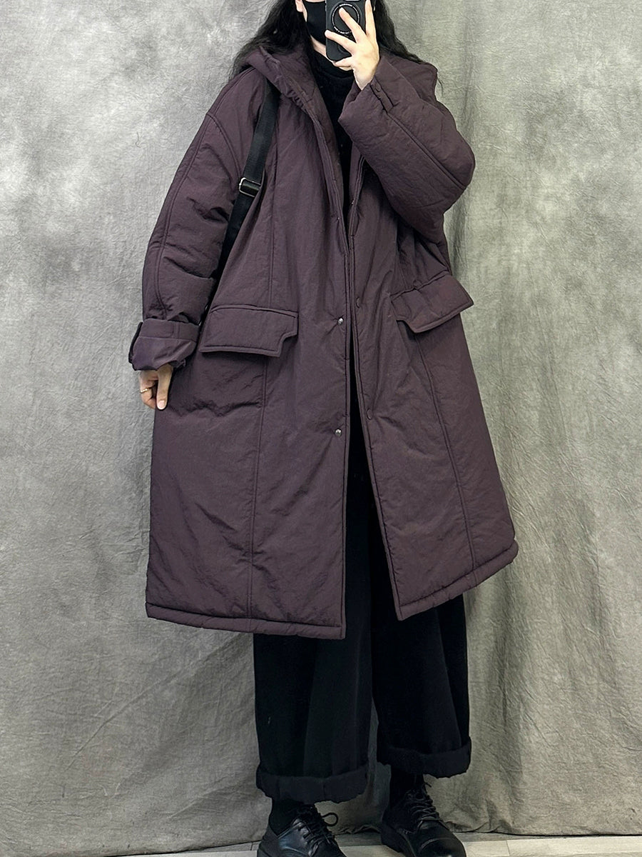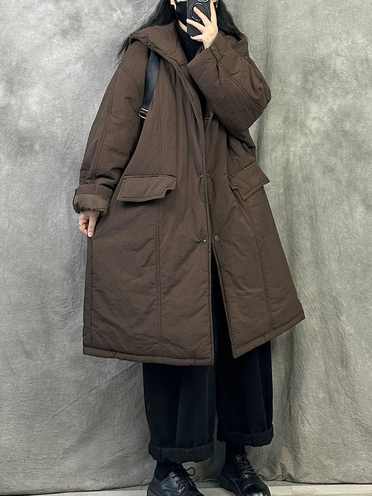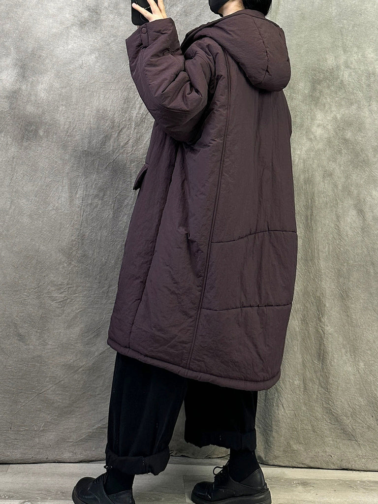 Kvinnors vinterfärgade vadderade långa kappa med huva
