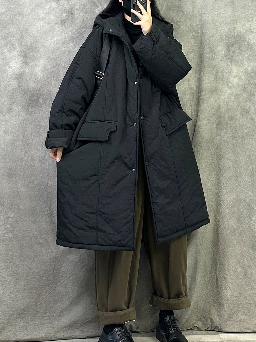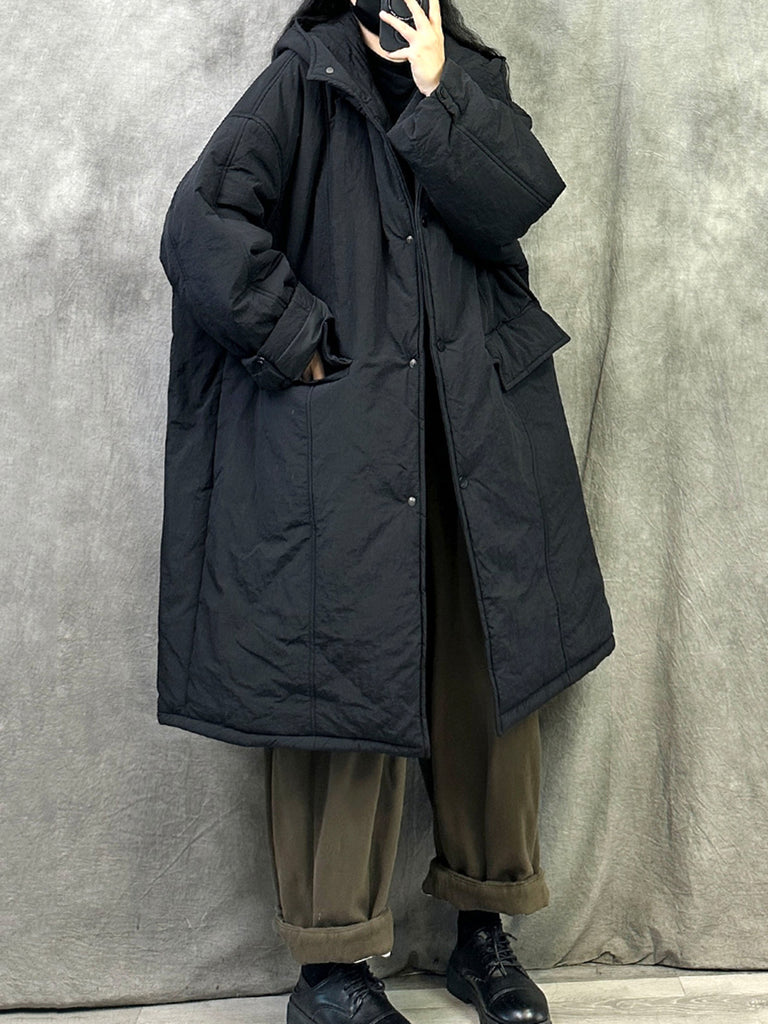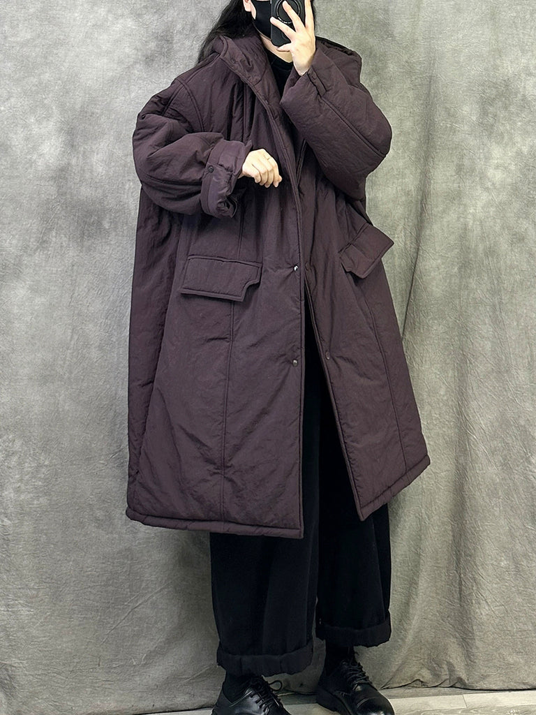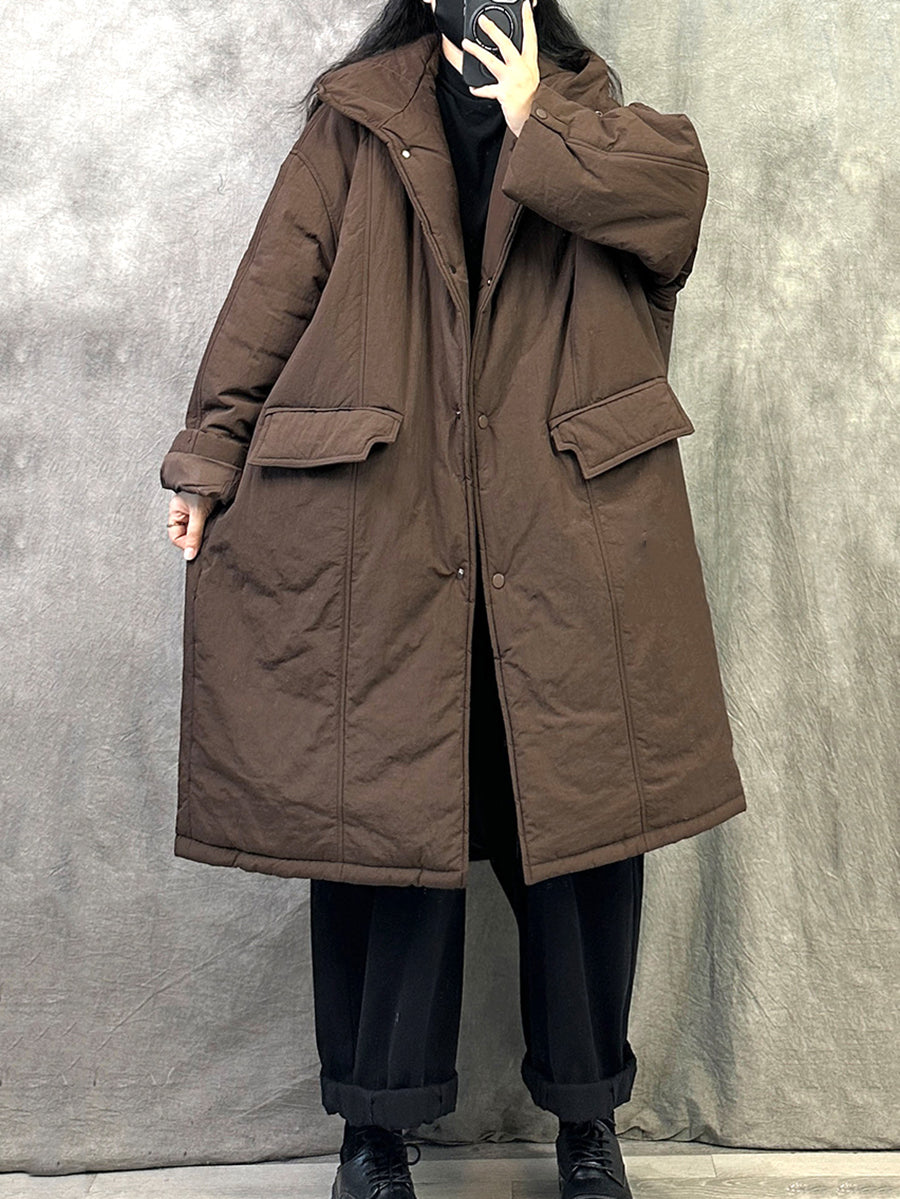 Kvinnors vinterfärgade vadderade långa kappa med huva