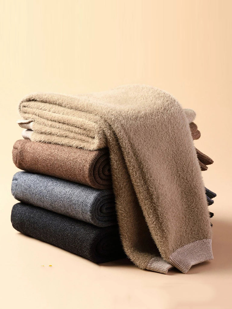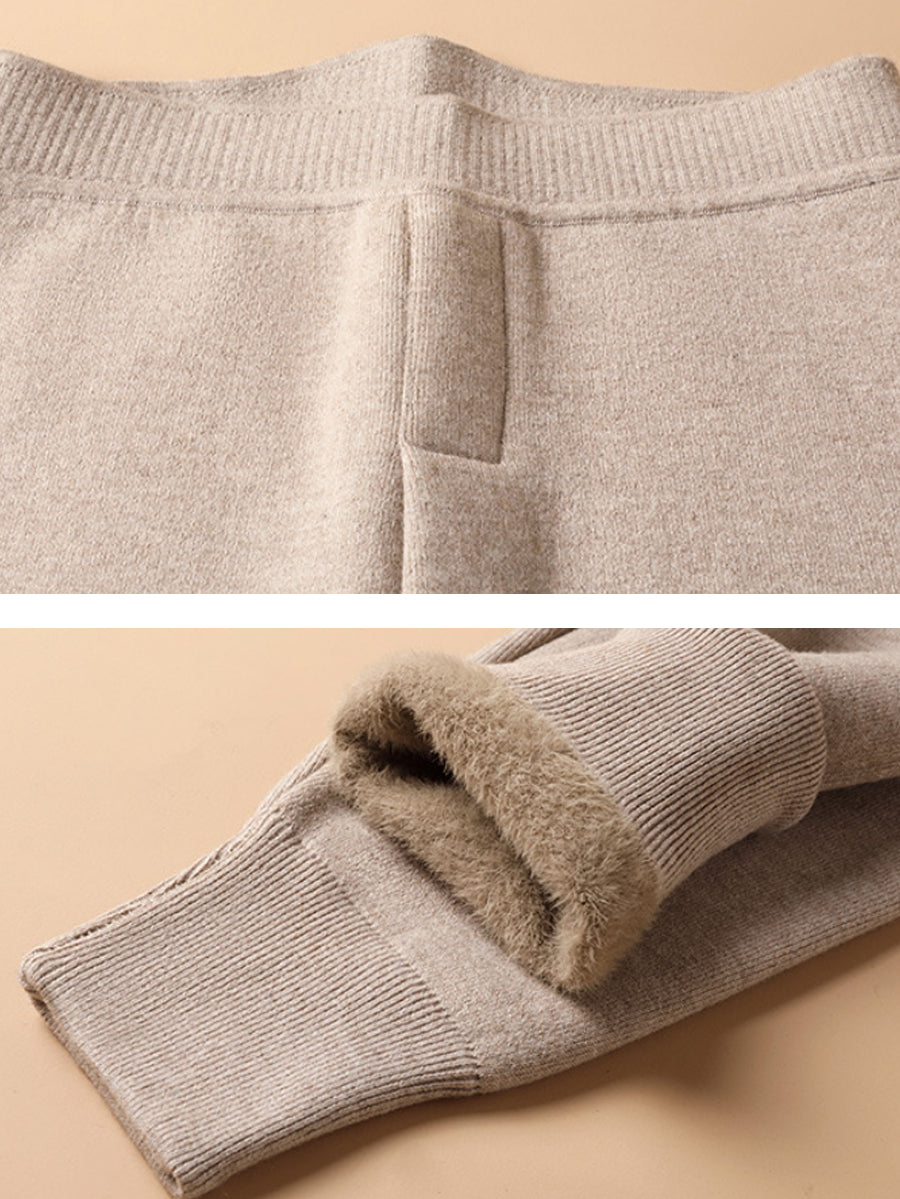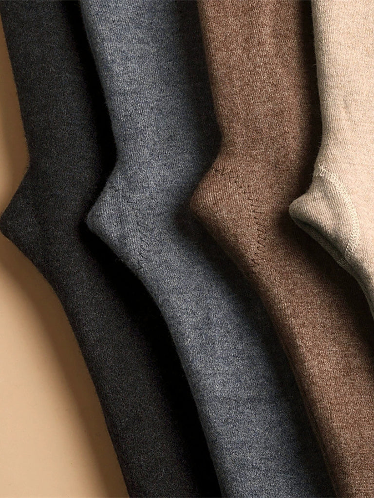 Varma vinterleggings i fleecefodrad ull med ren färg