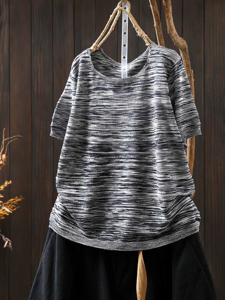 Dam Retro Vårblus i Ren Färg Ramie Polotröja