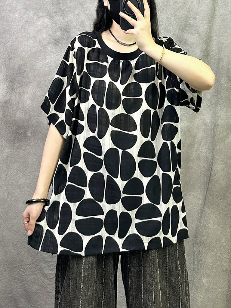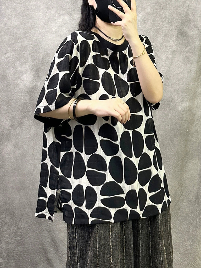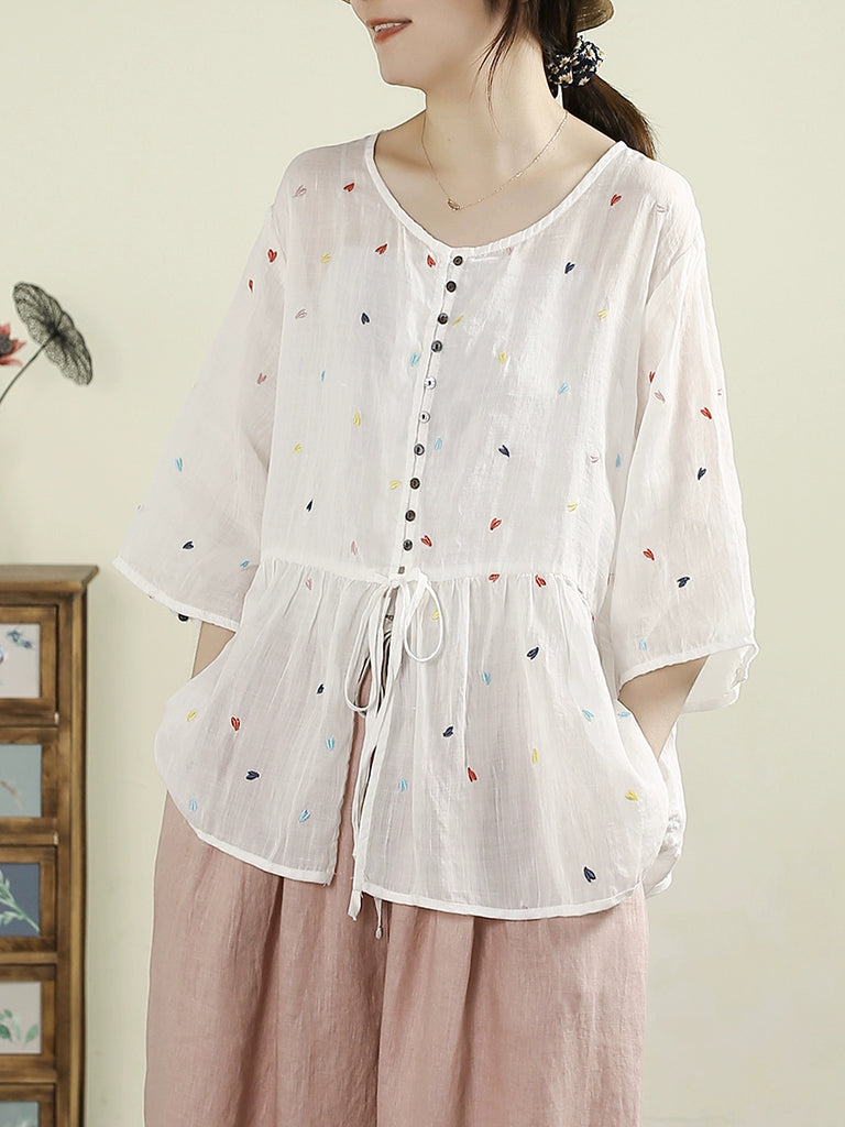 Konstnärlig vårskjorta med O-ringning i 100 % bomull för kvinnor