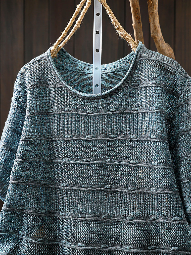 Höstkonstnärlig stickad O-ringad tröja för kvinnor