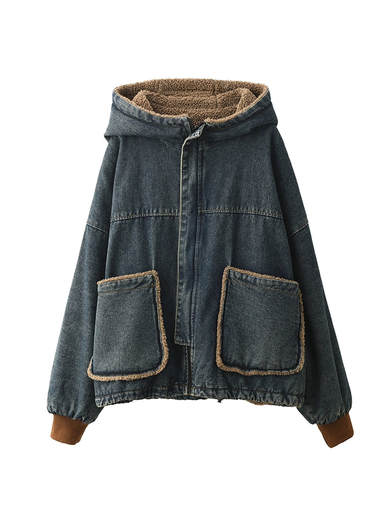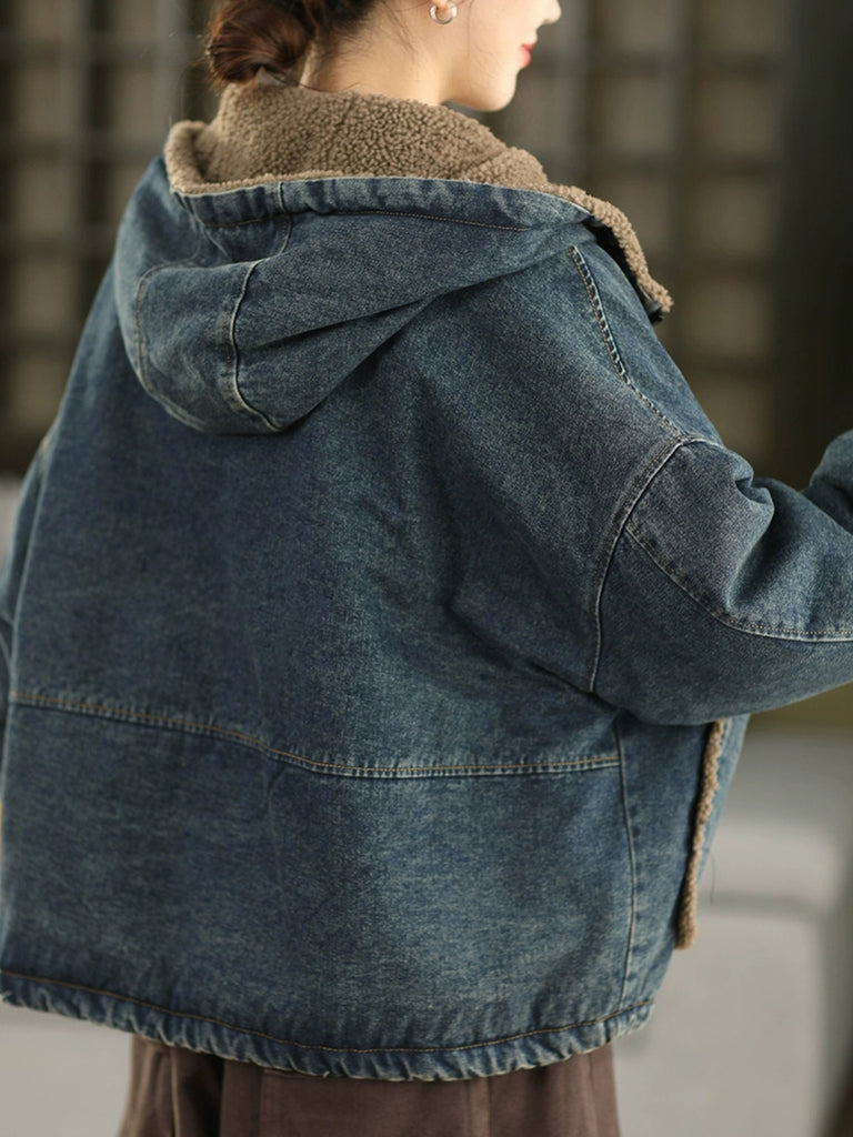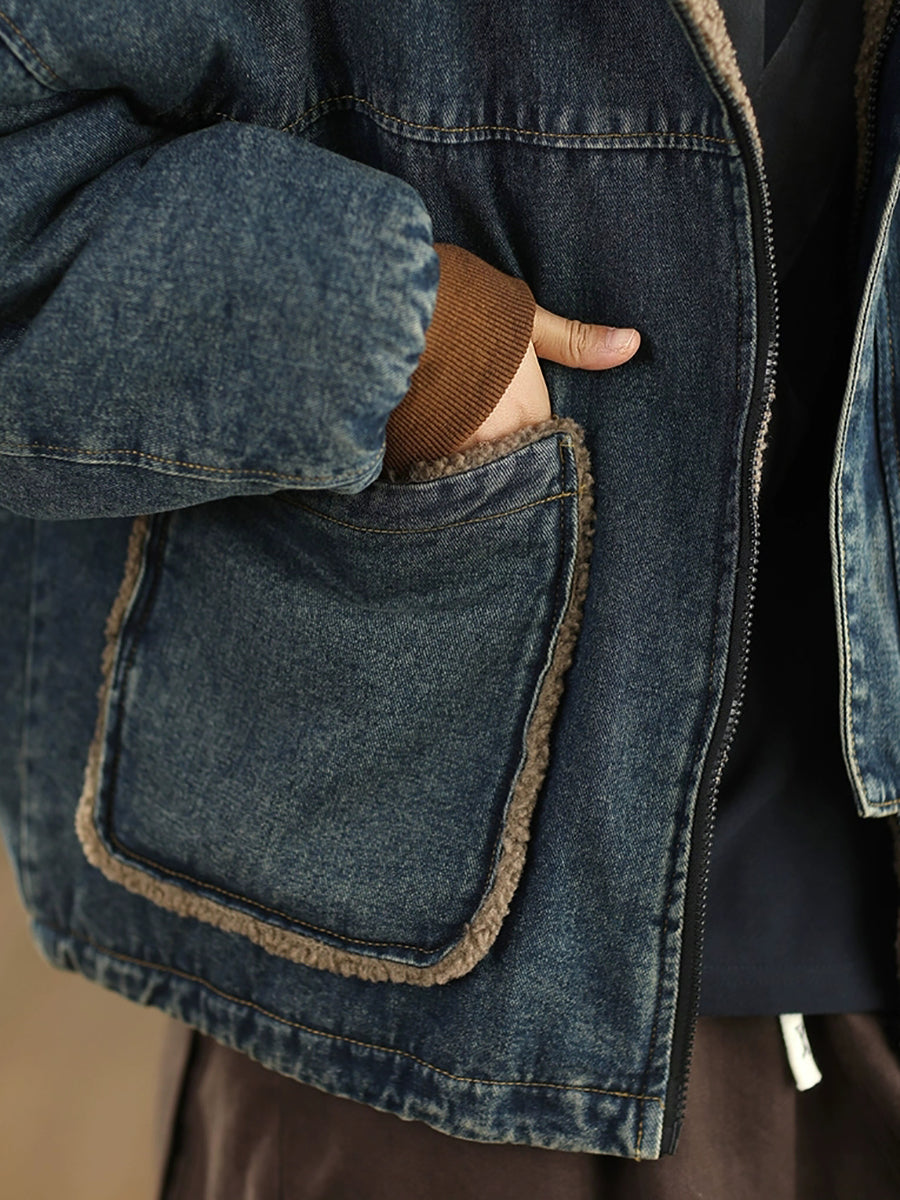 Kvinnors vinterjacka med dubbelsidig fleece och denim