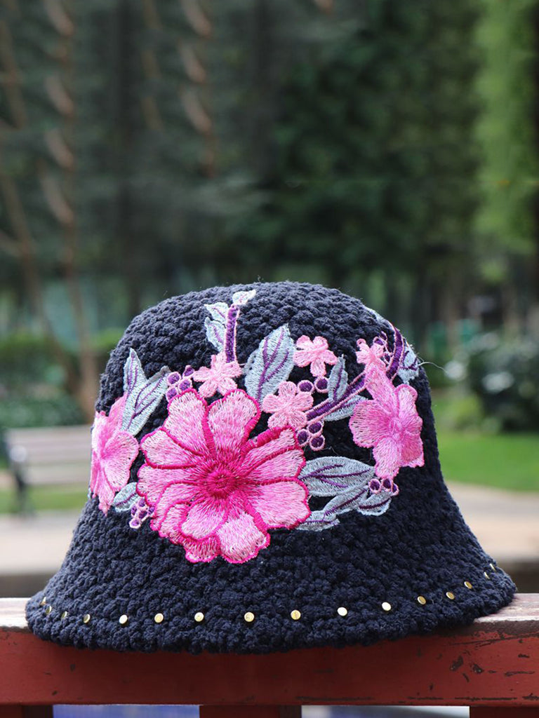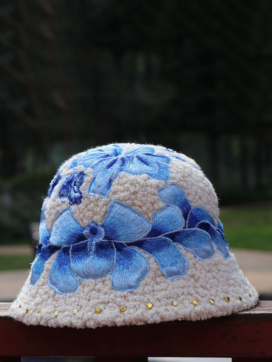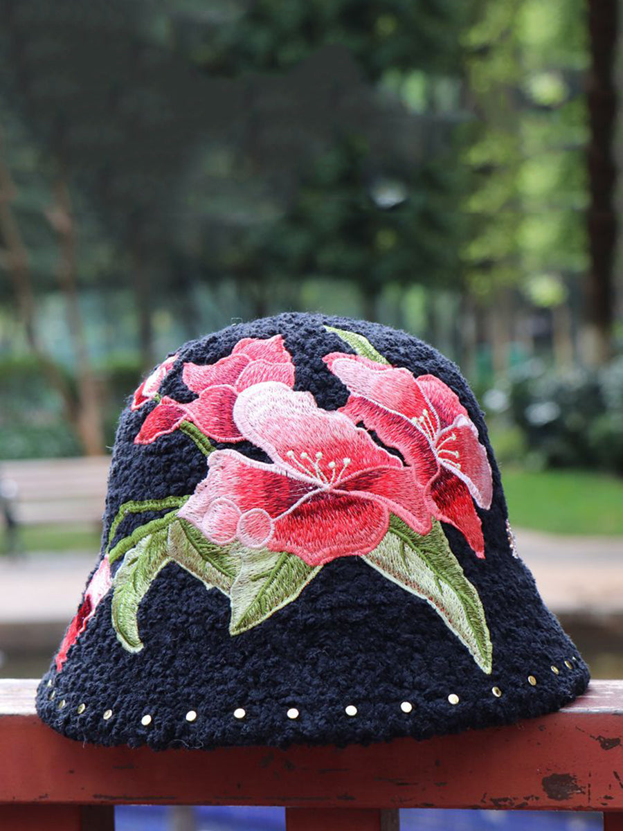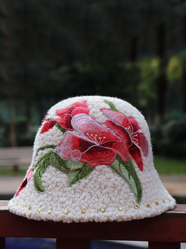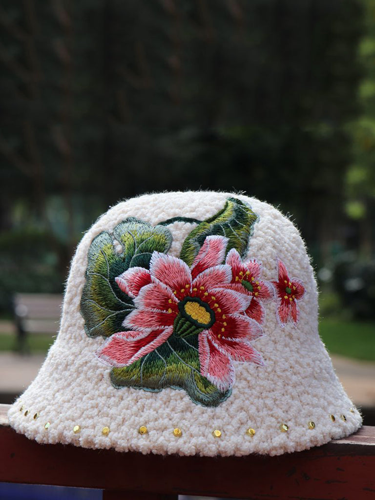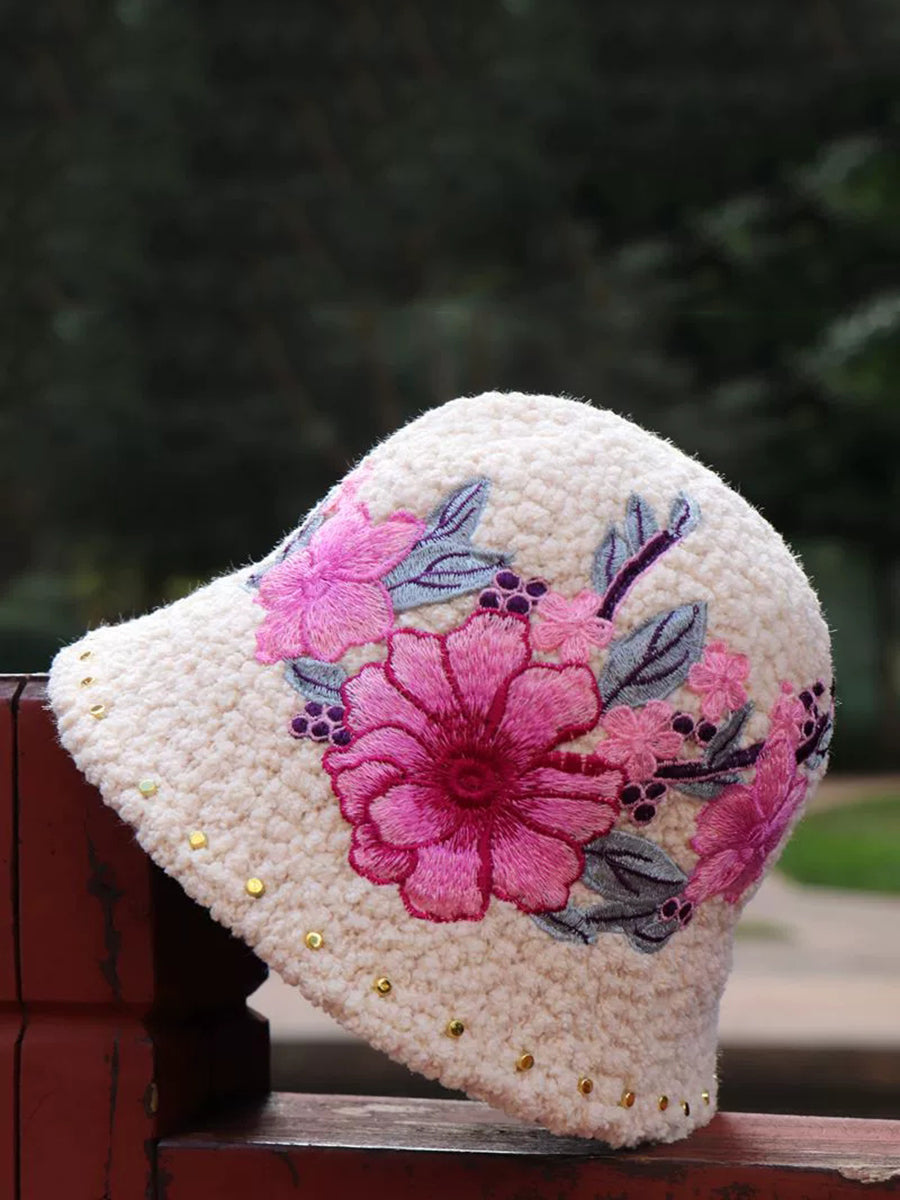 Dam Artsy Vinter Blommig Broderad Fleecehatt