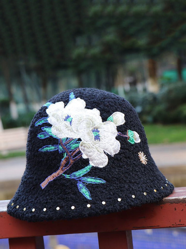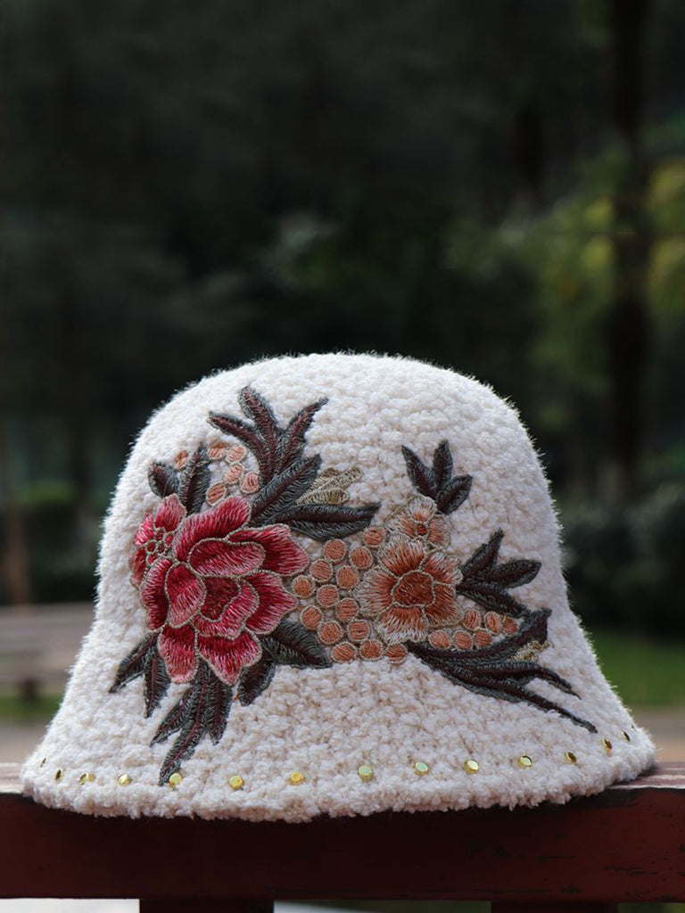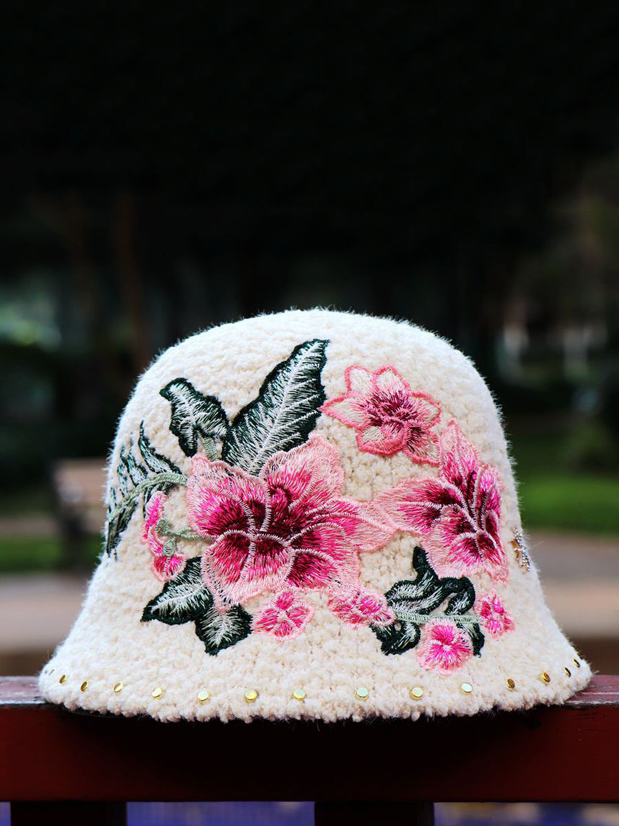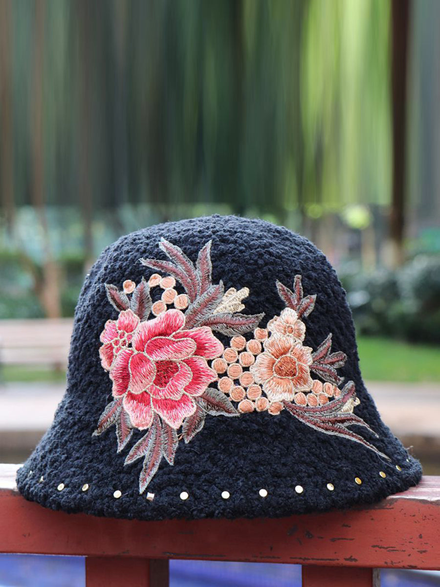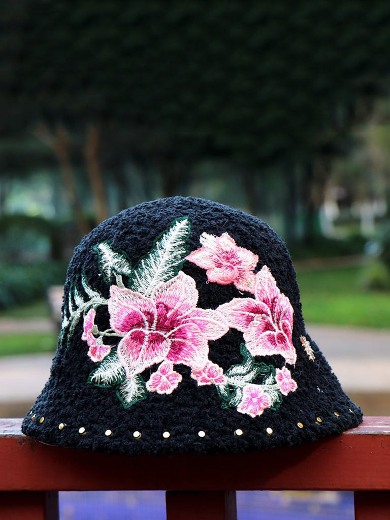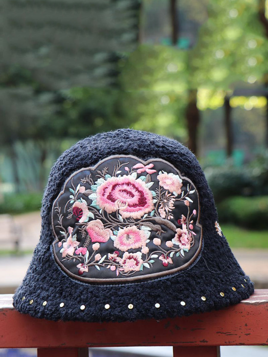 Dam Artsy Vinter Blommig Broderad Fleecehatt