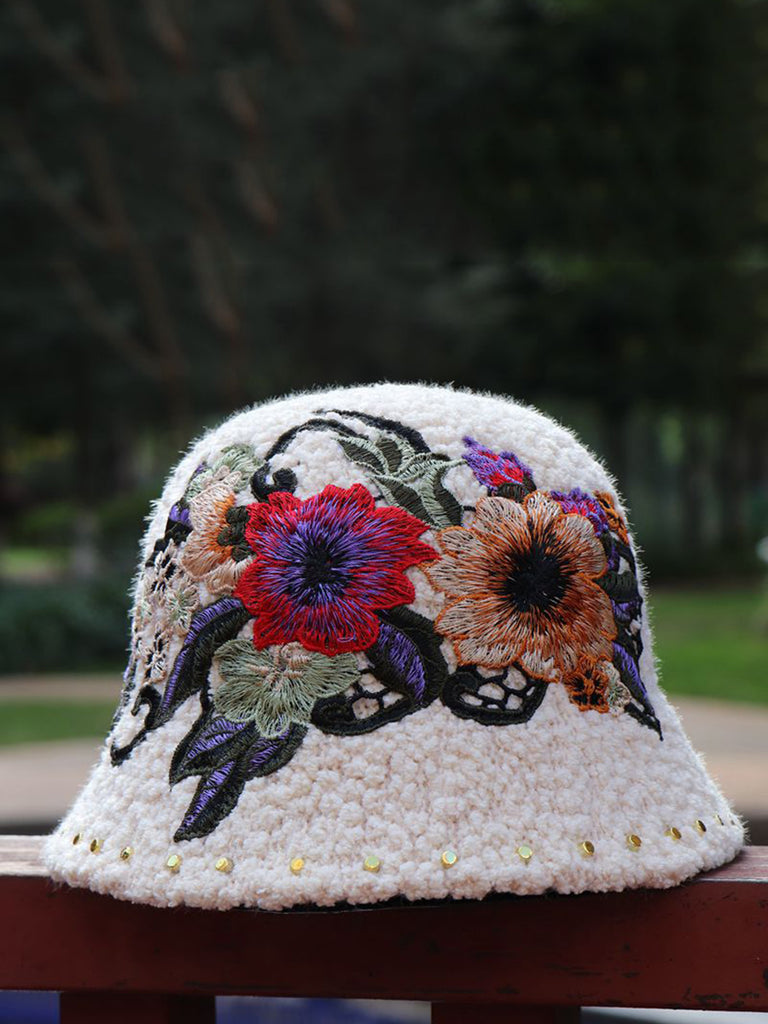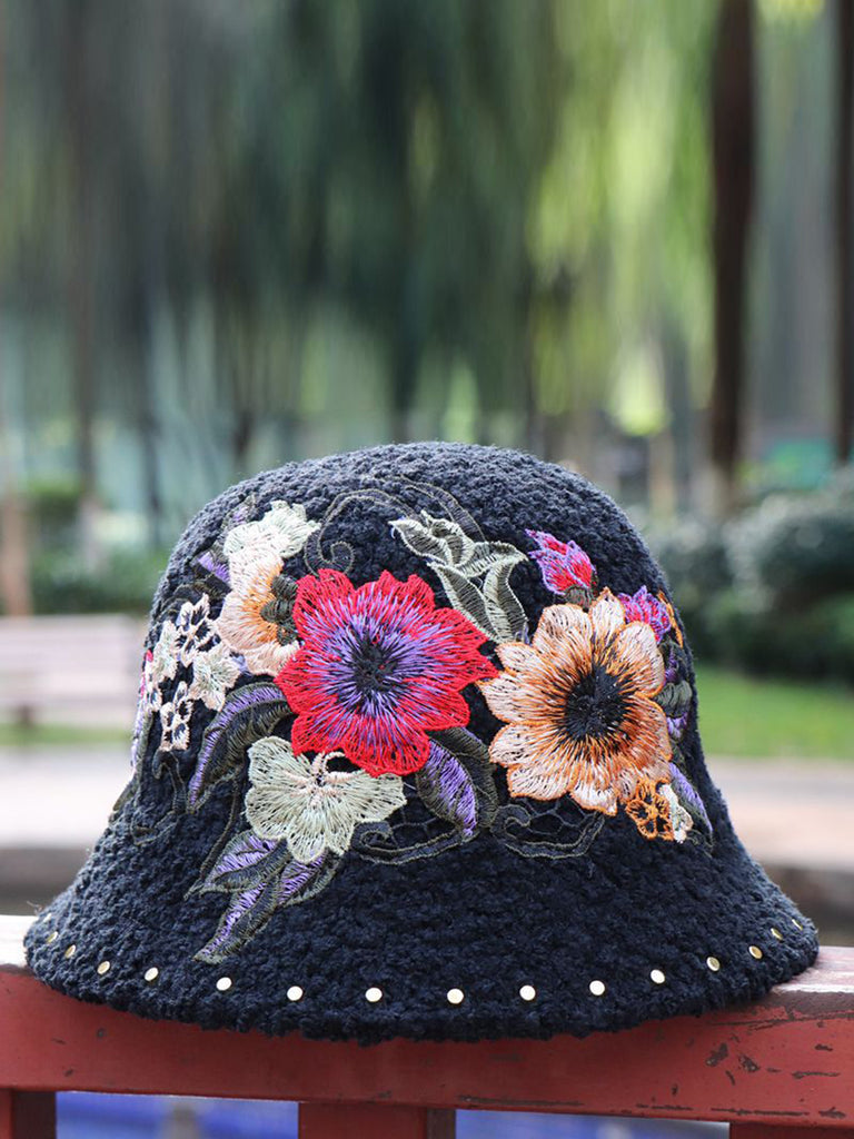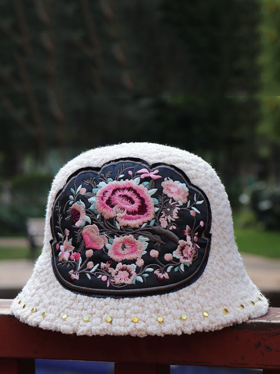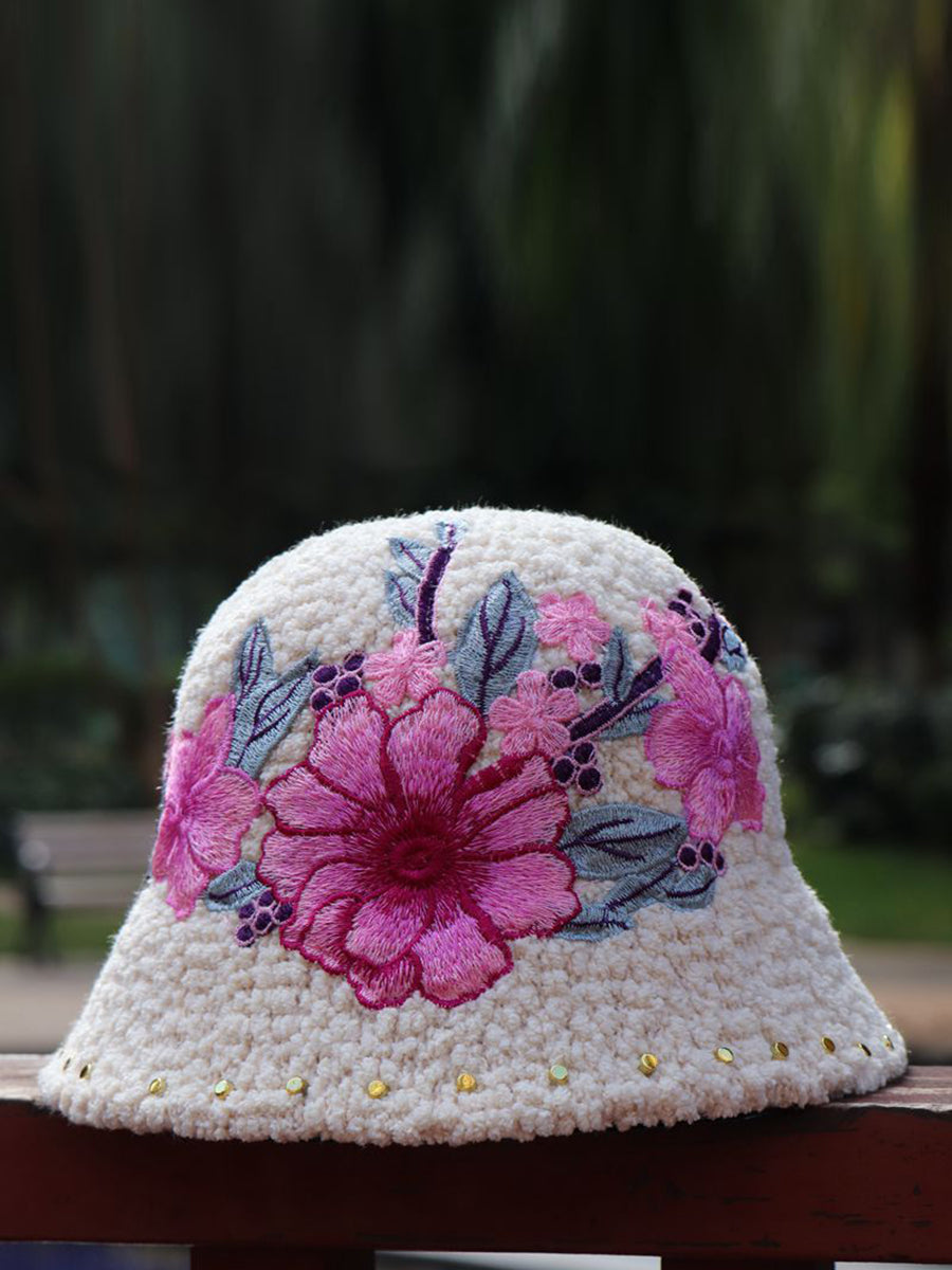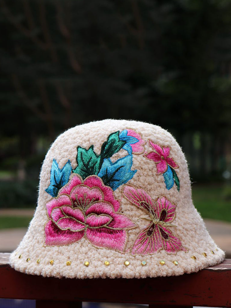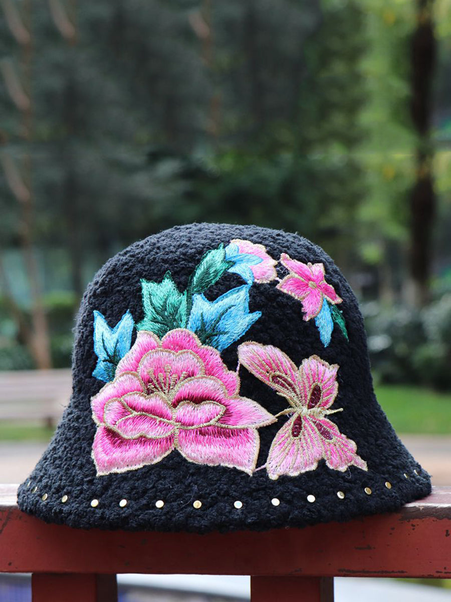 Dam Artsy Vinter Blommig Broderad Fleecehatt