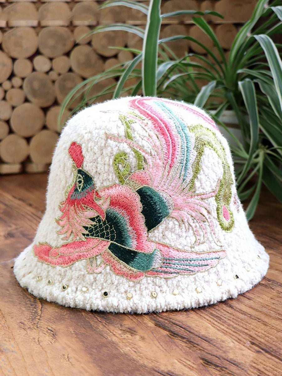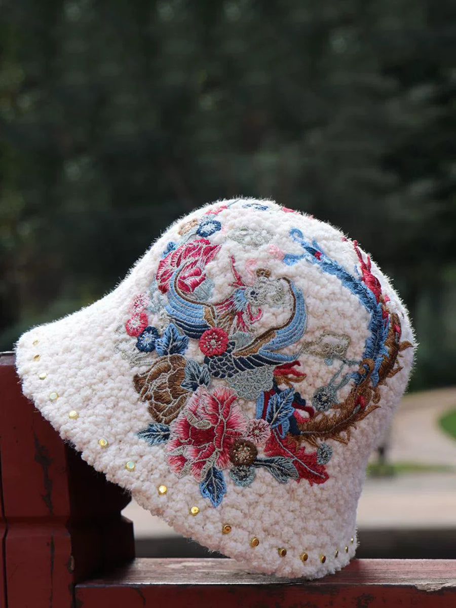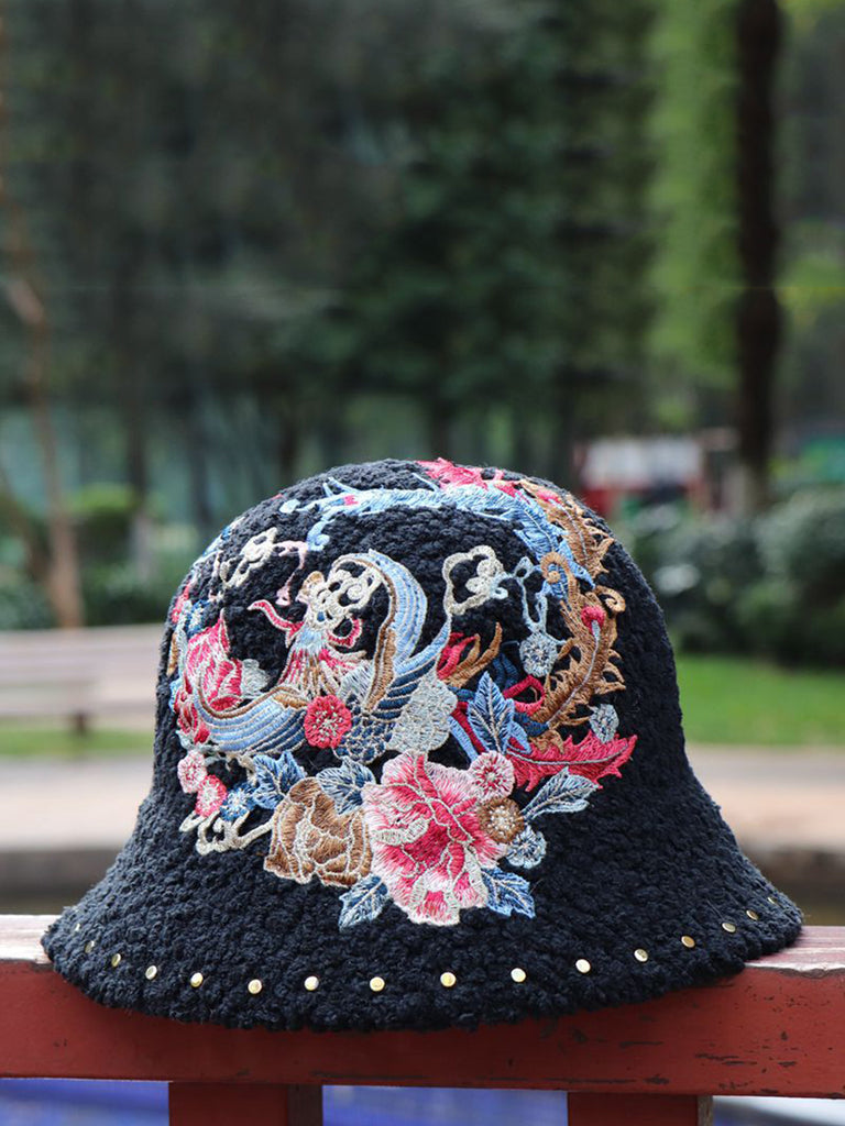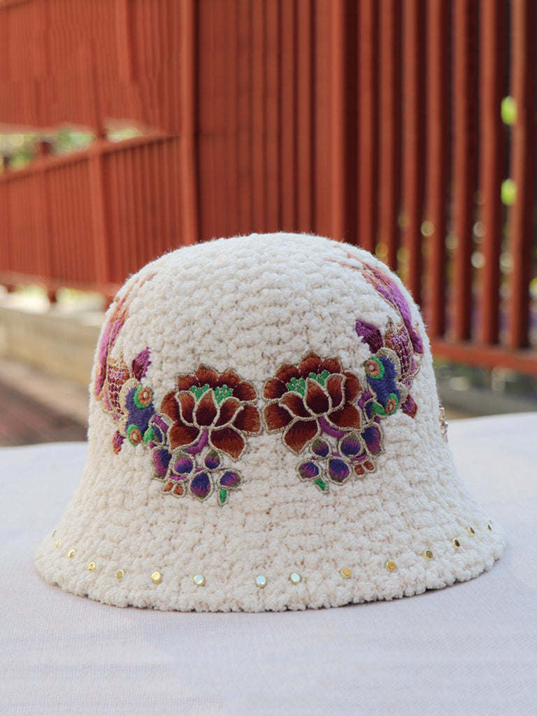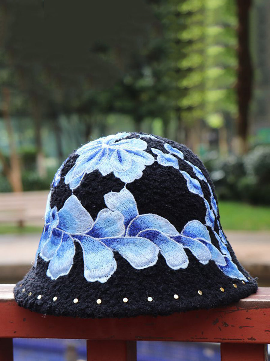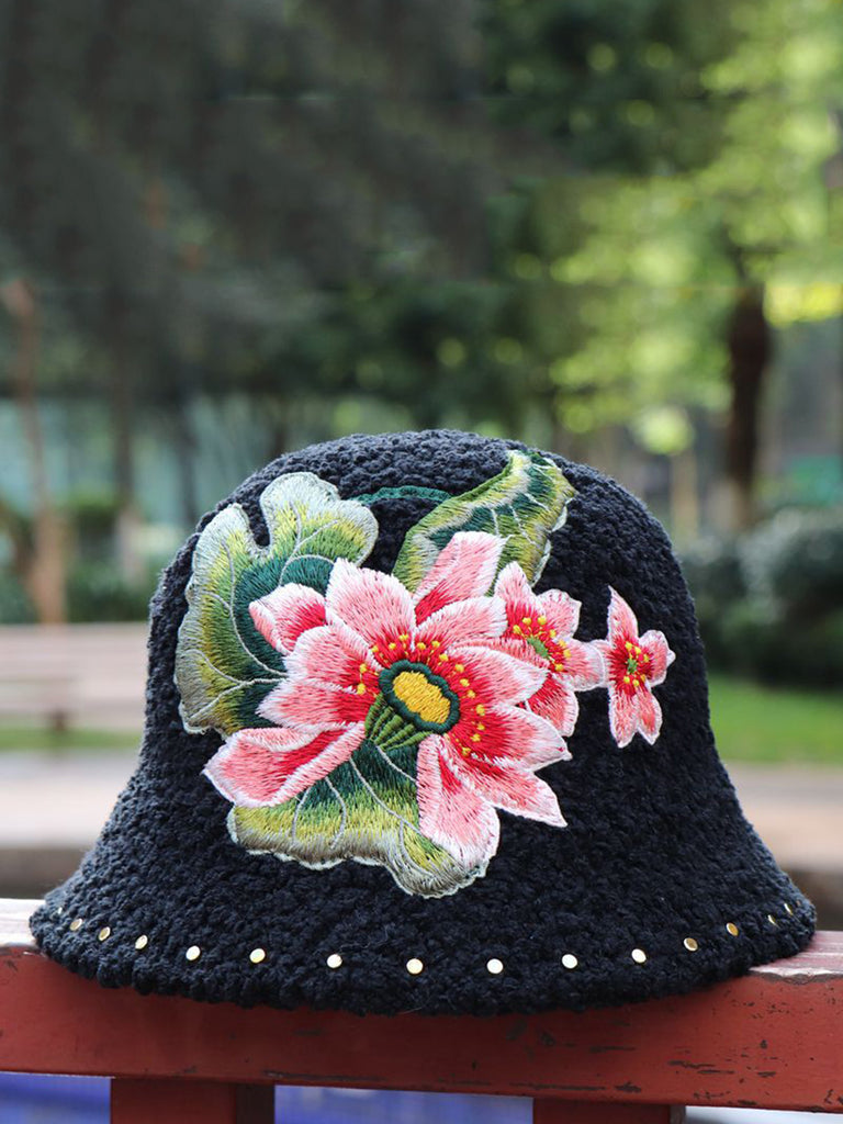 Dam Artsy Vinter Blommig Broderad Fleecehatt