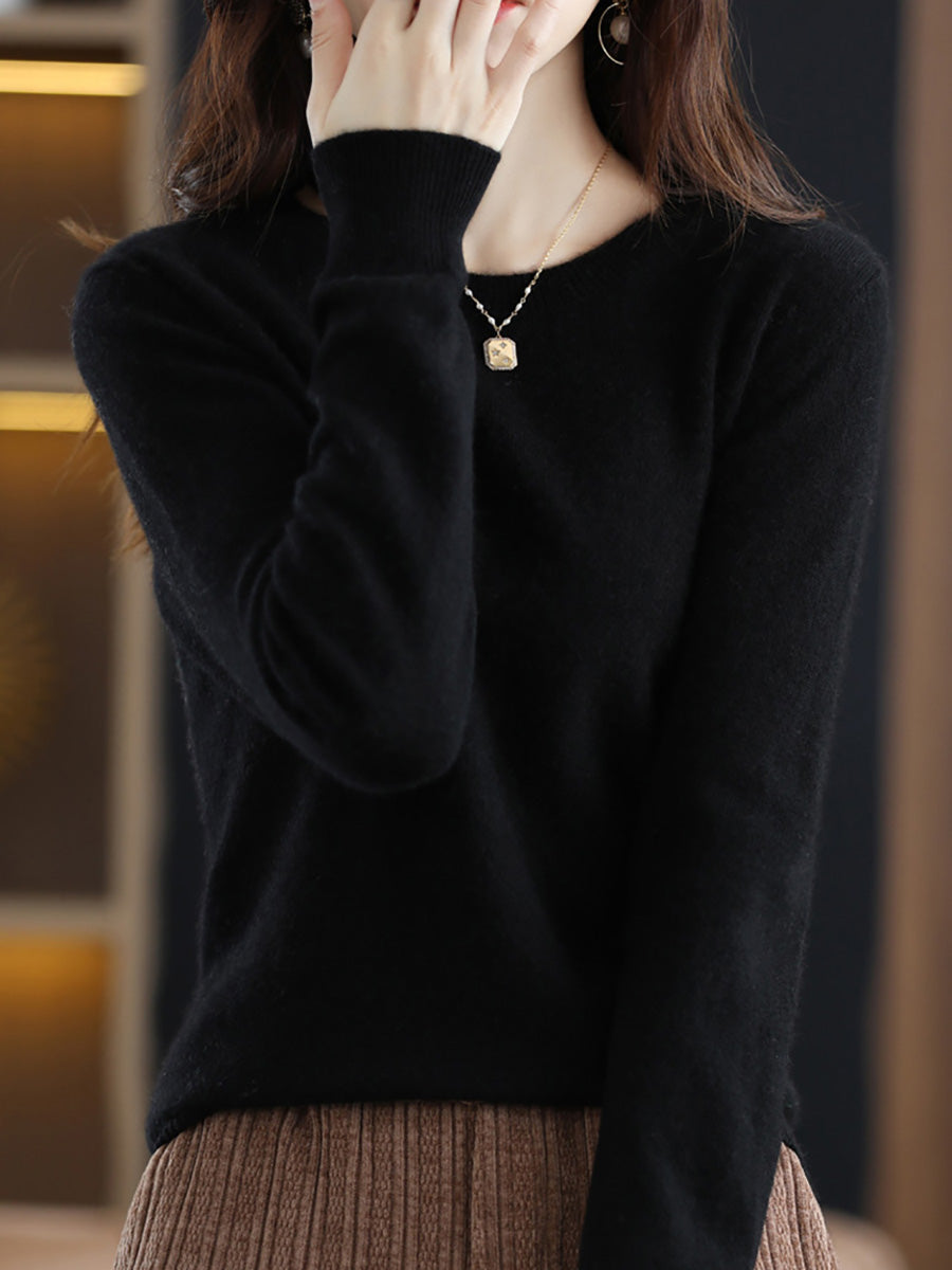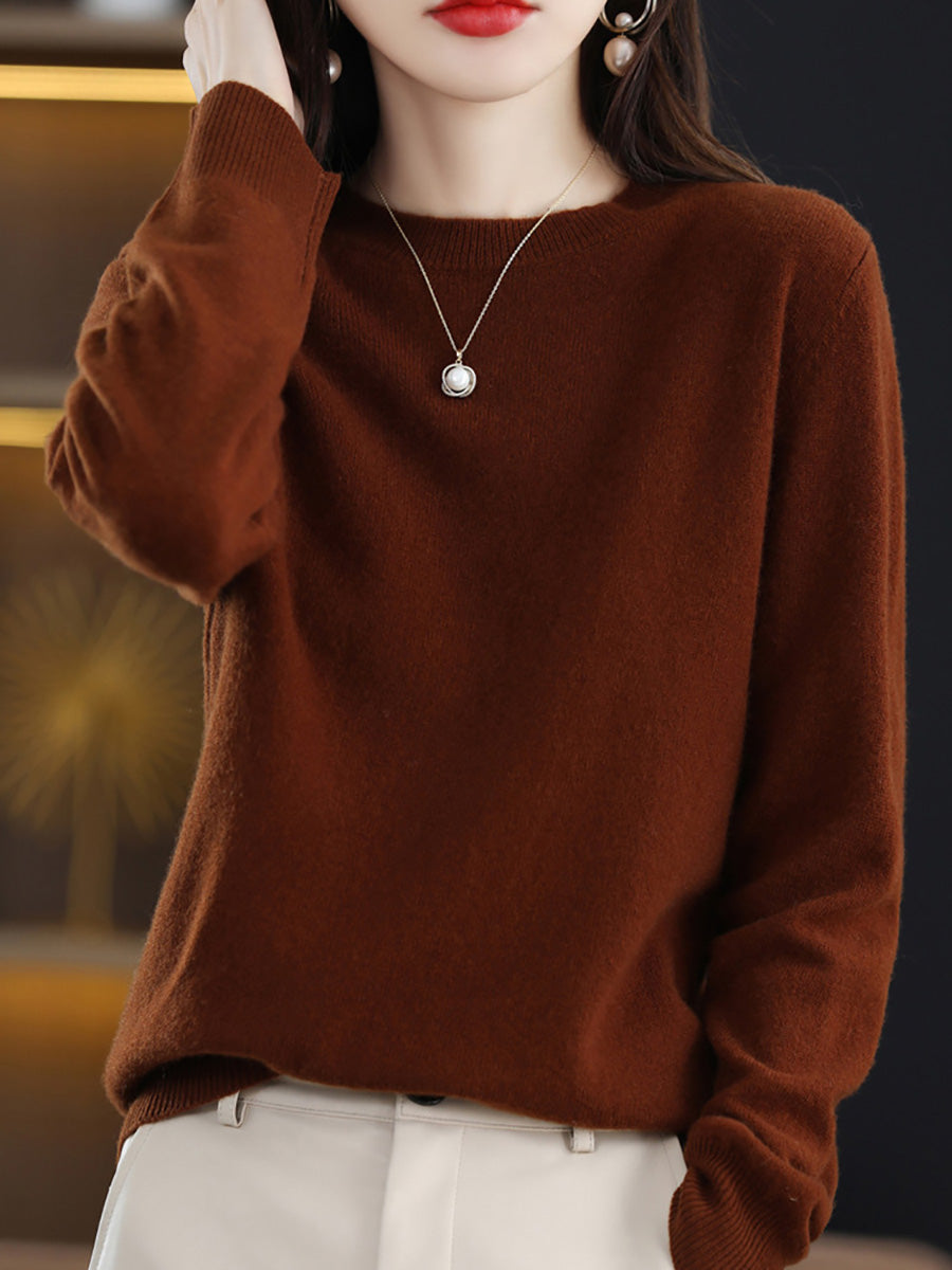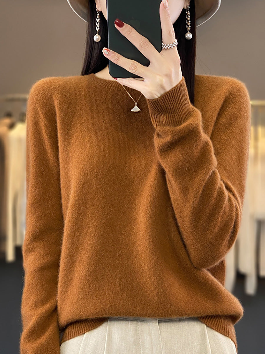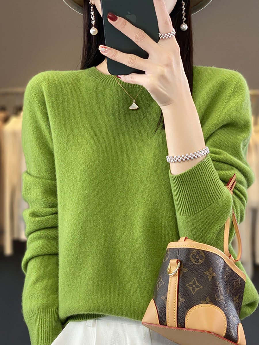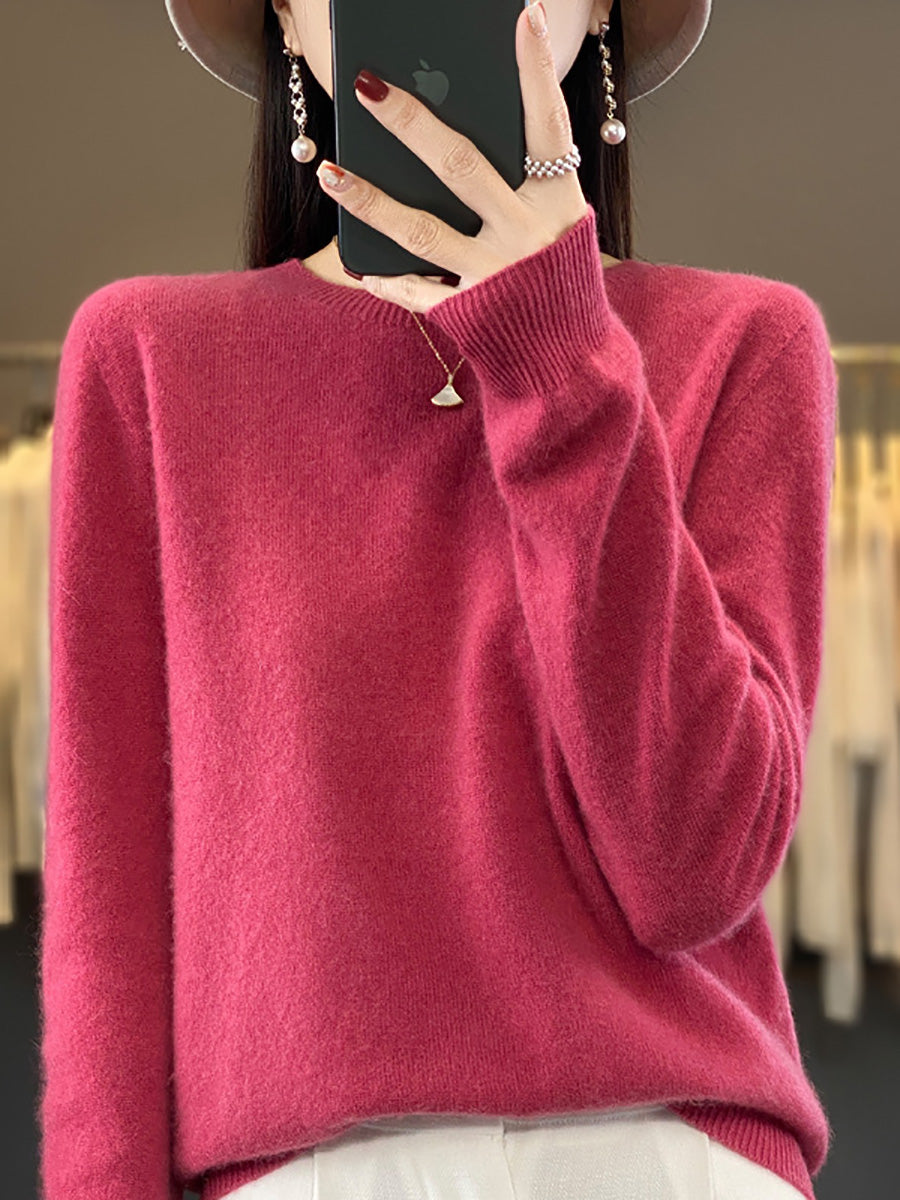 Höstkonstnärlig ulltröja i ren färg för kvinnor med O-ringning