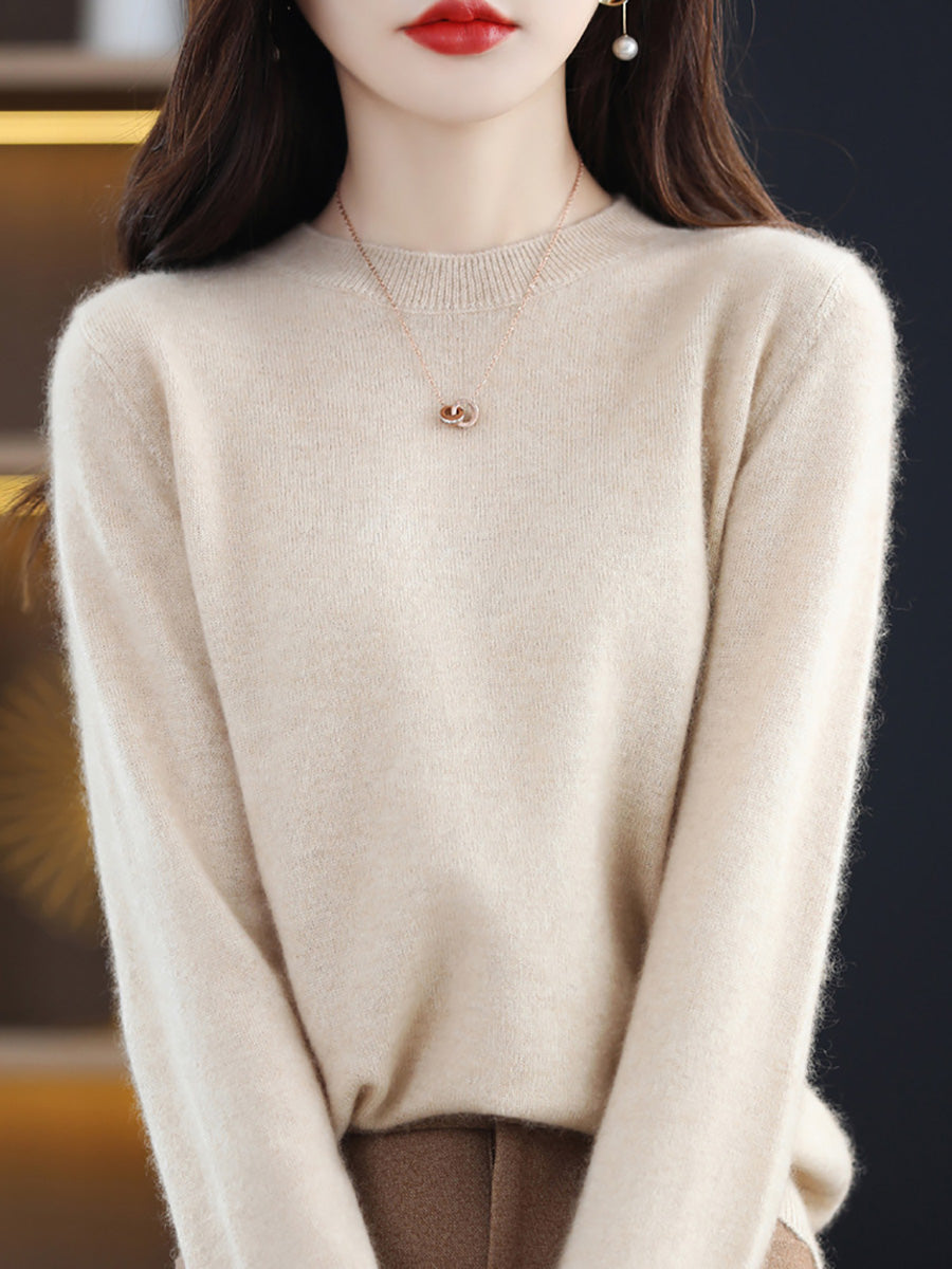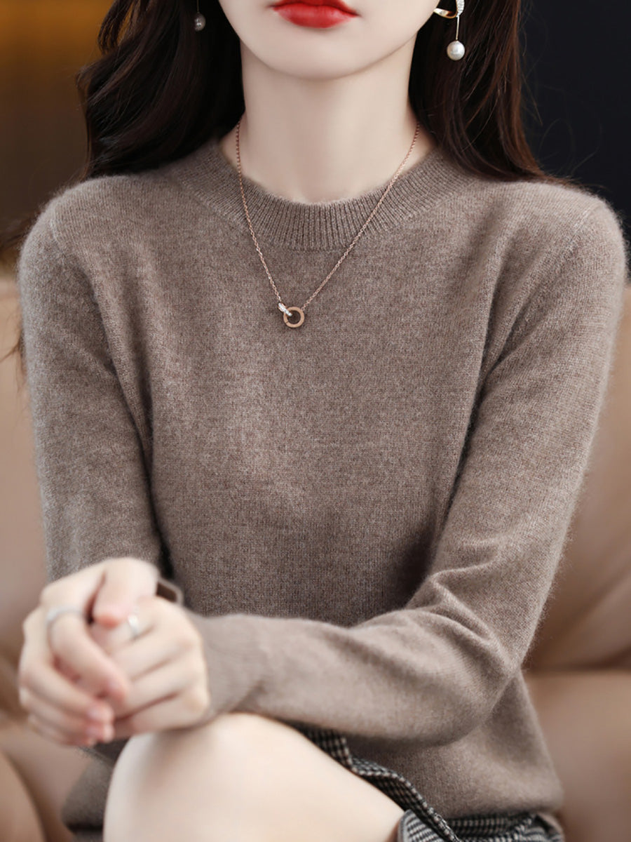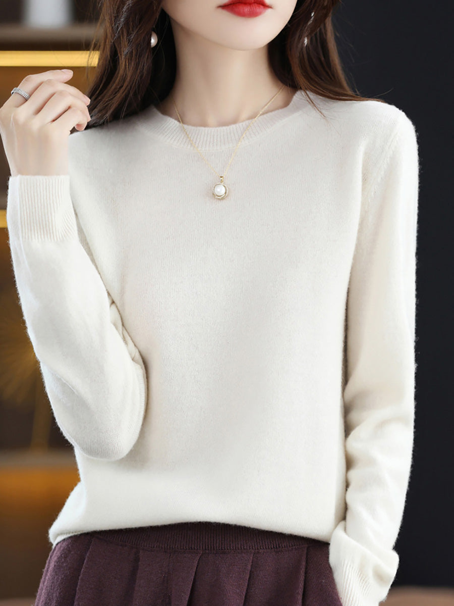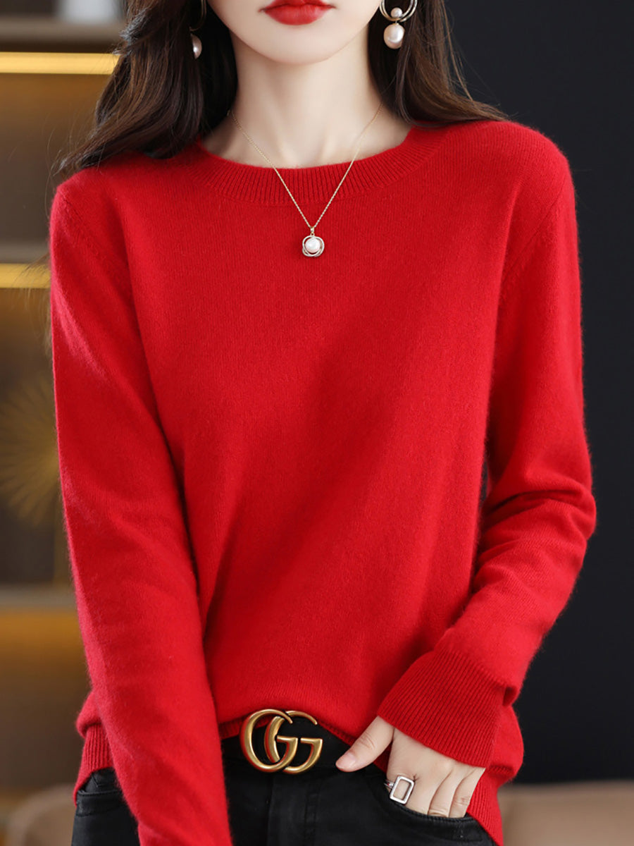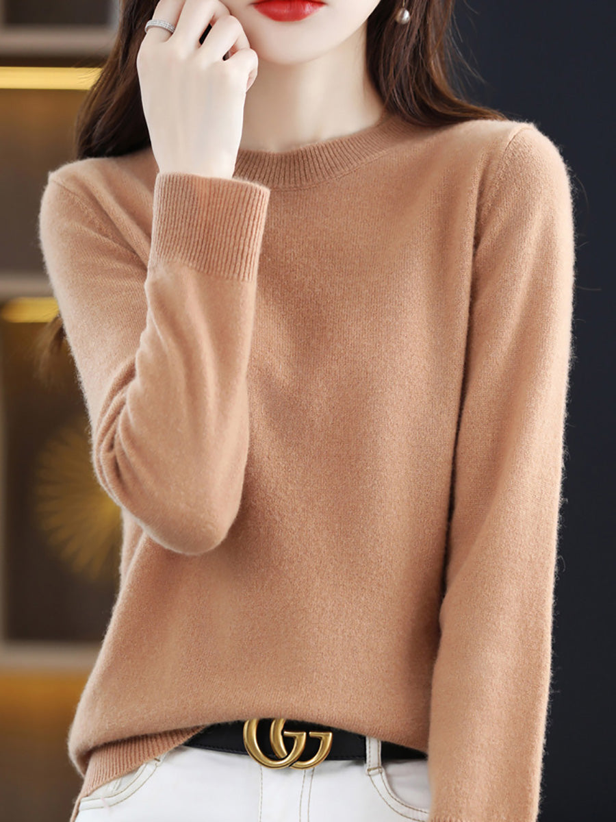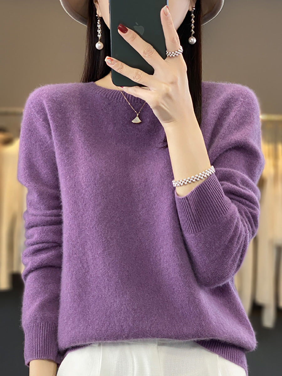 Höstkonstnärlig ulltröja i ren färg för kvinnor med O-ringning