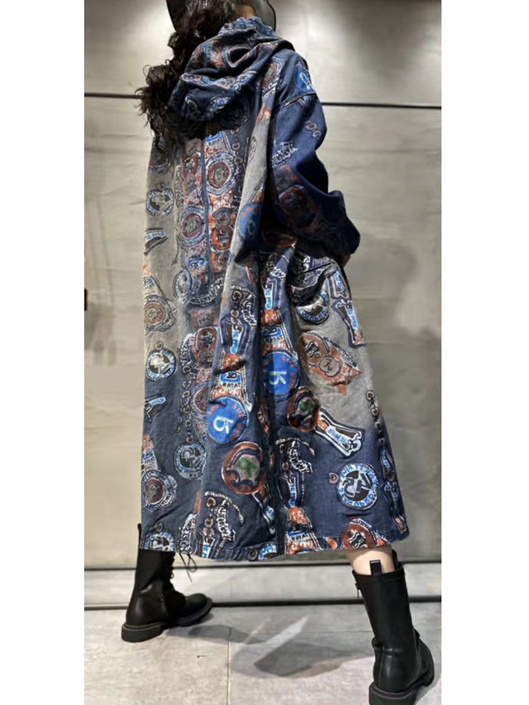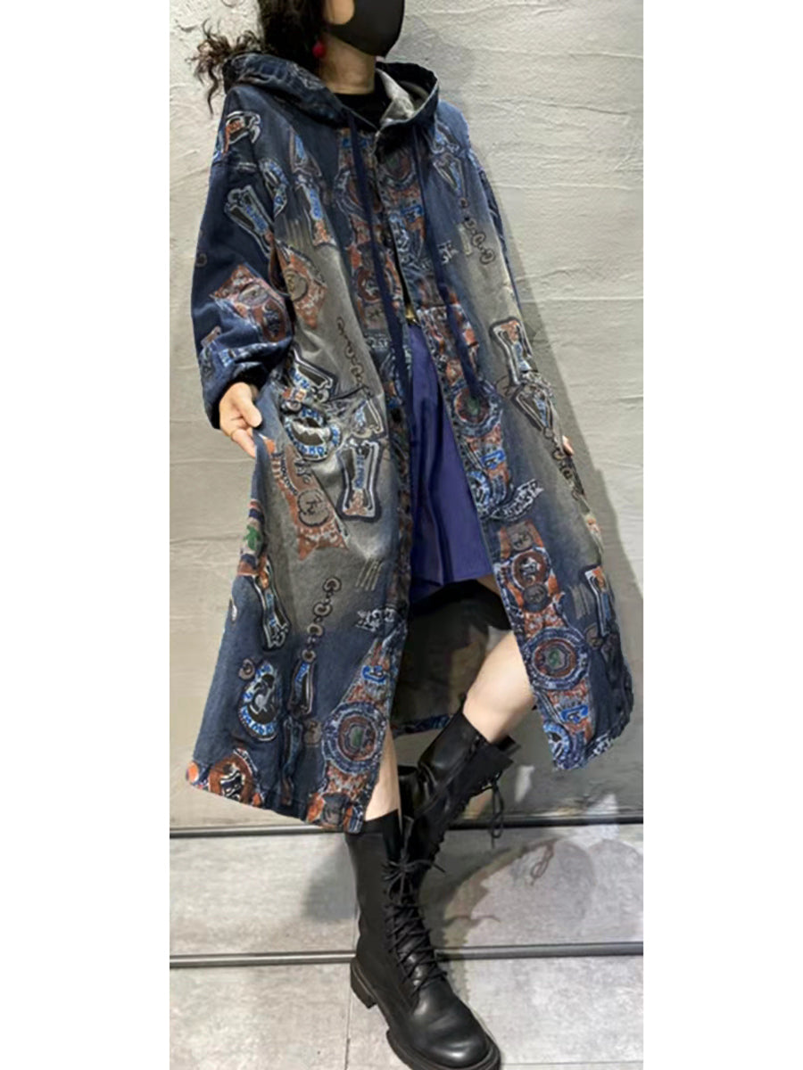 Den här produkten är gjord av bomull och har ett blommönster, en krage med huva och långa raglanärmar. Det är en vintagestil och passar för hösten och vintern.