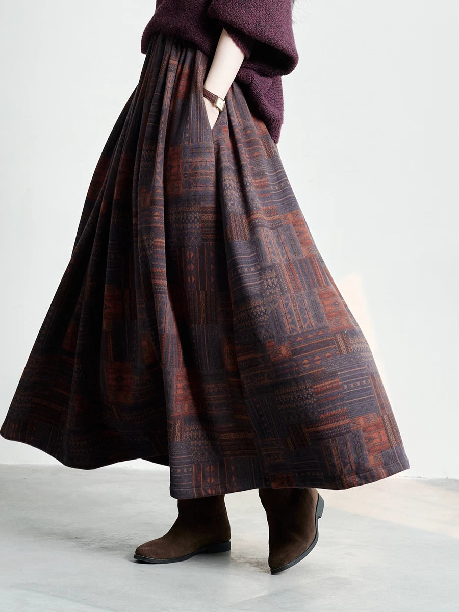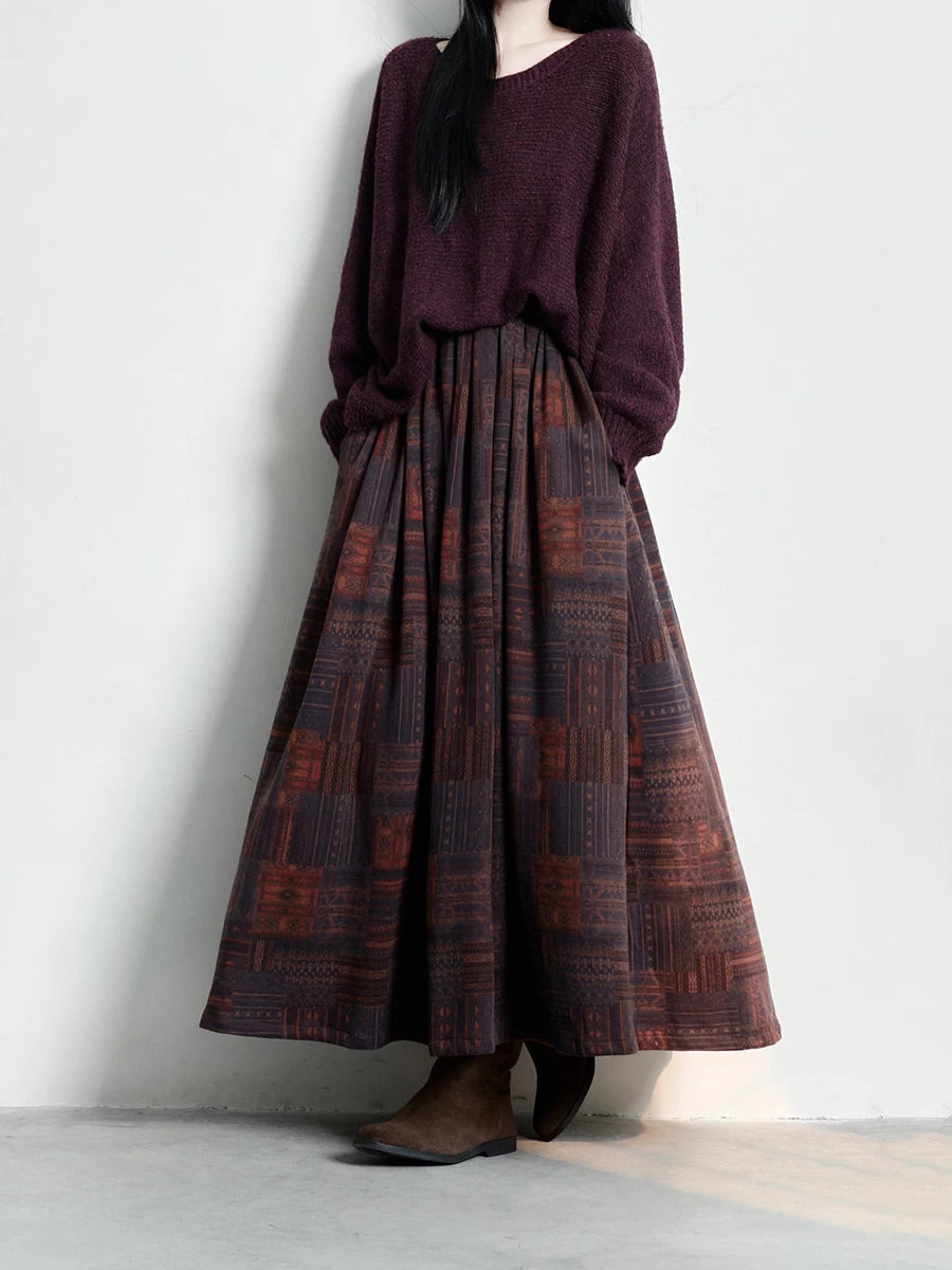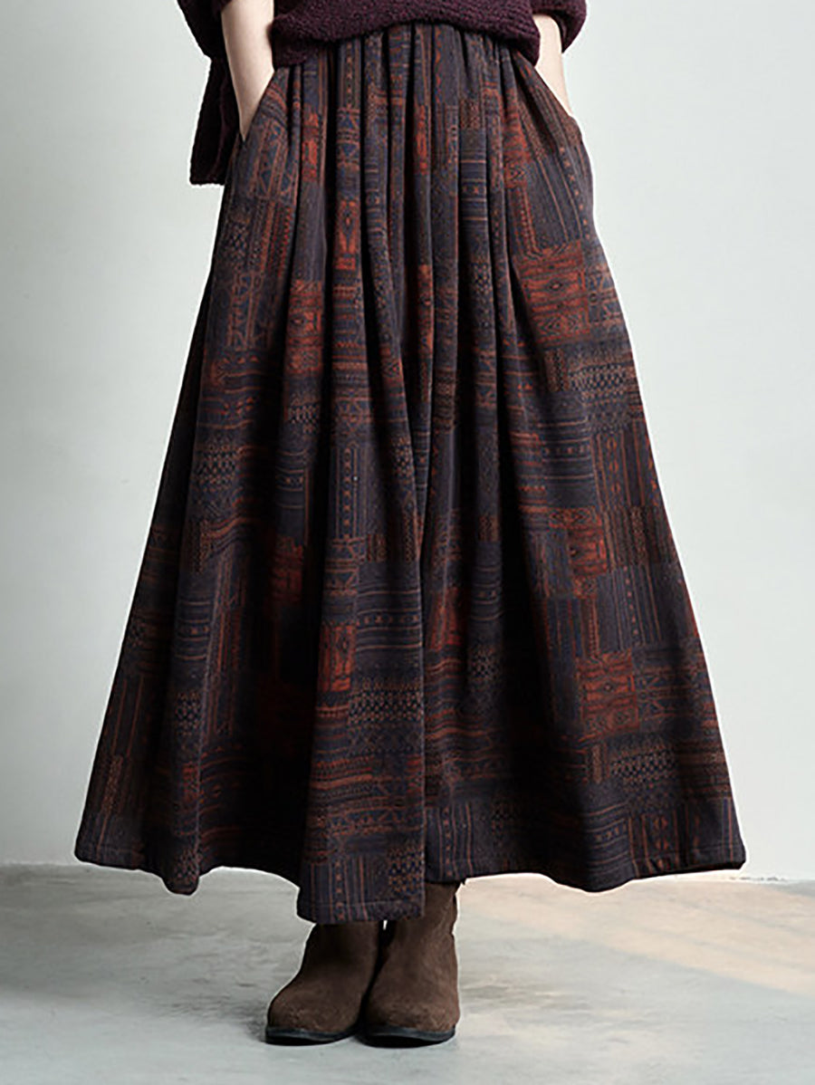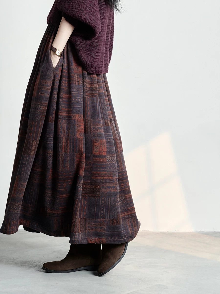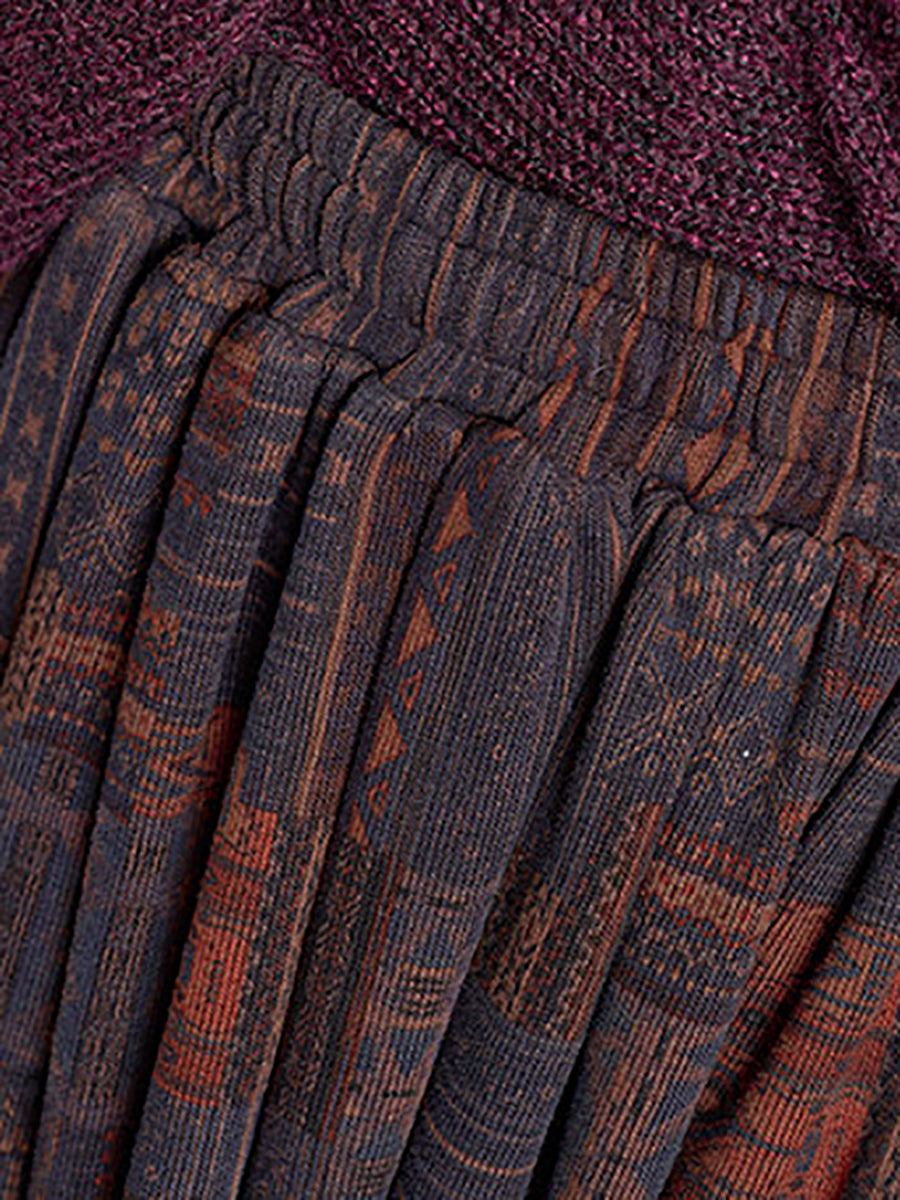 Kvinnors Bohemiska Patchwork Plisserad A-formad Kjol