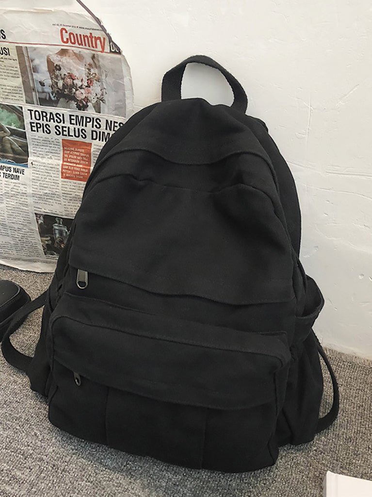 Kvinnor Casual Solid Canvas Ryggsäck med stor kapacitet