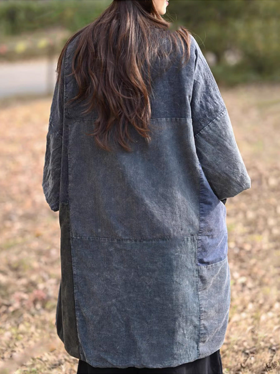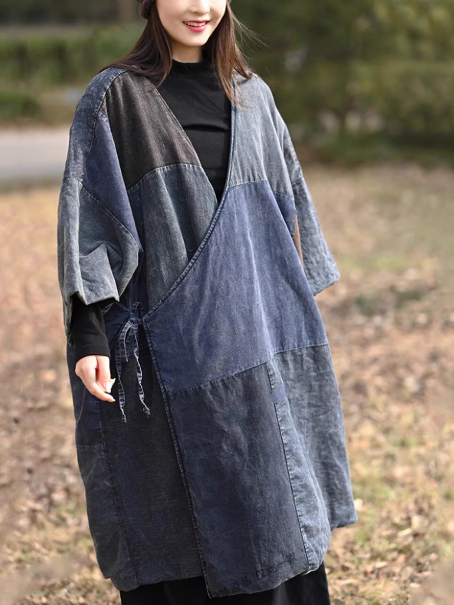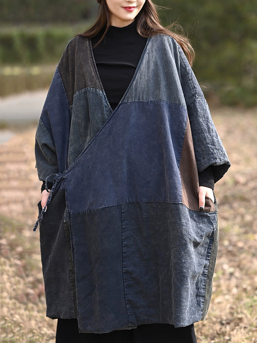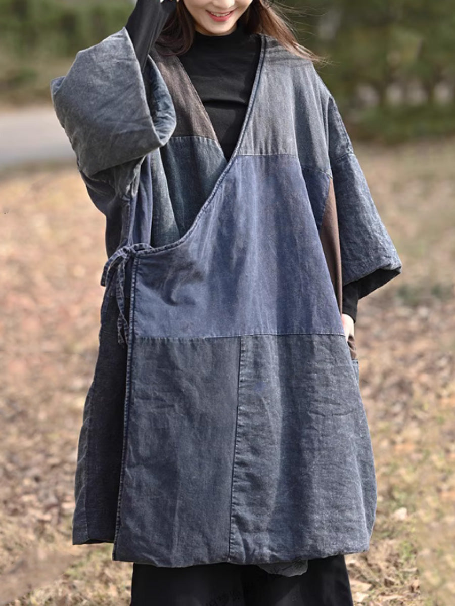 Dam Retro Färgblocks Spliced Bomull V-ringad Vadderad Kappa
