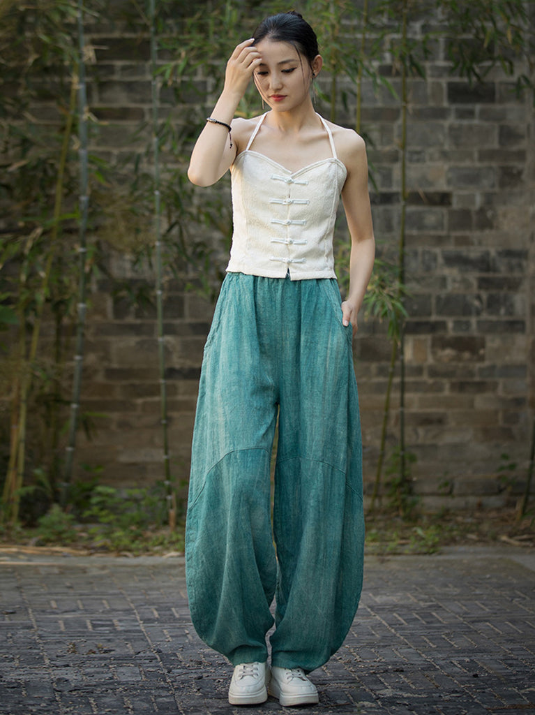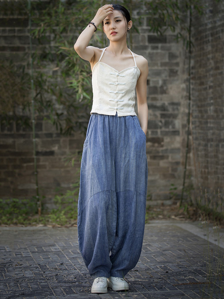 Dam Summe Vintage Tie-dye Splitsade Ramie Bloomers
