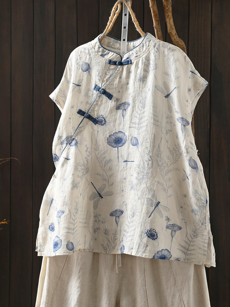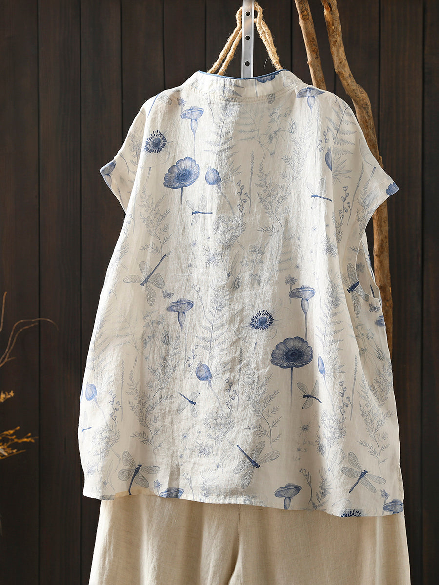 Kvinnors sommarblus med etnisk blommig krage
