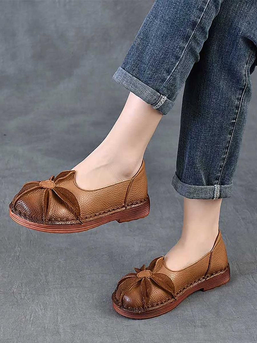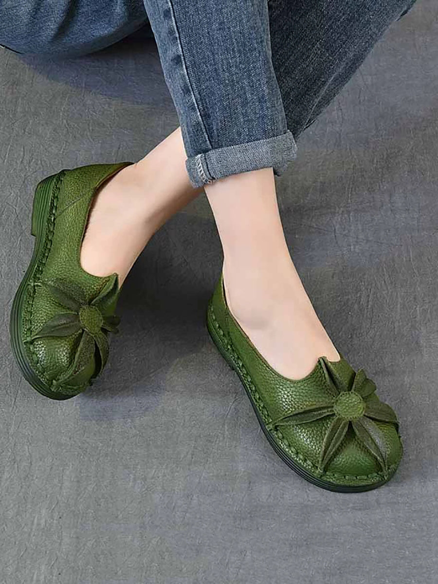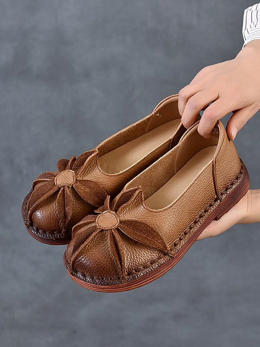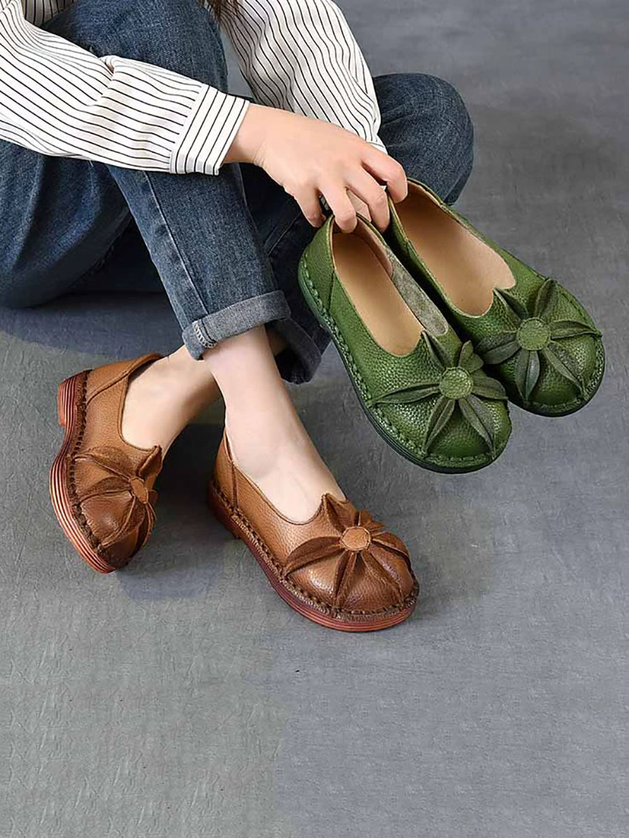 Damskor med låg klack och blommotiv i äkta läder