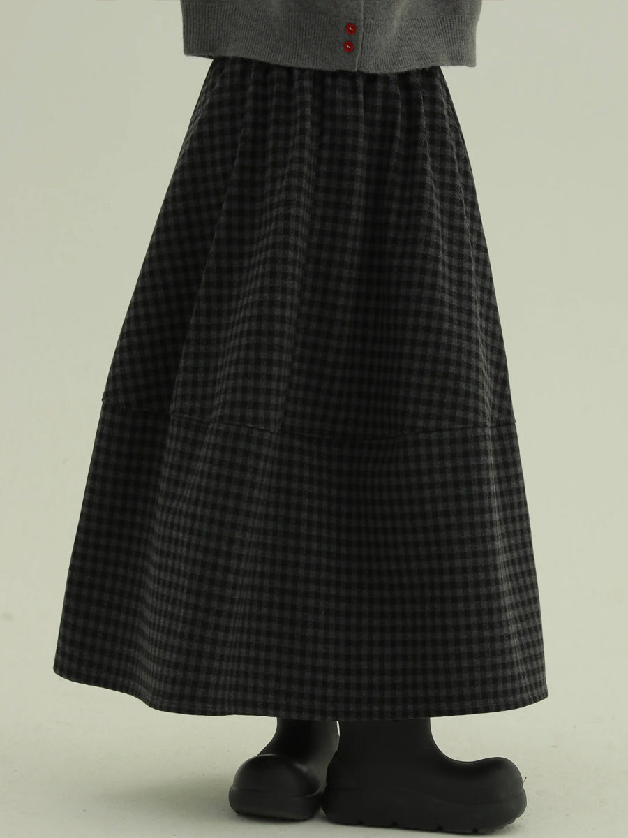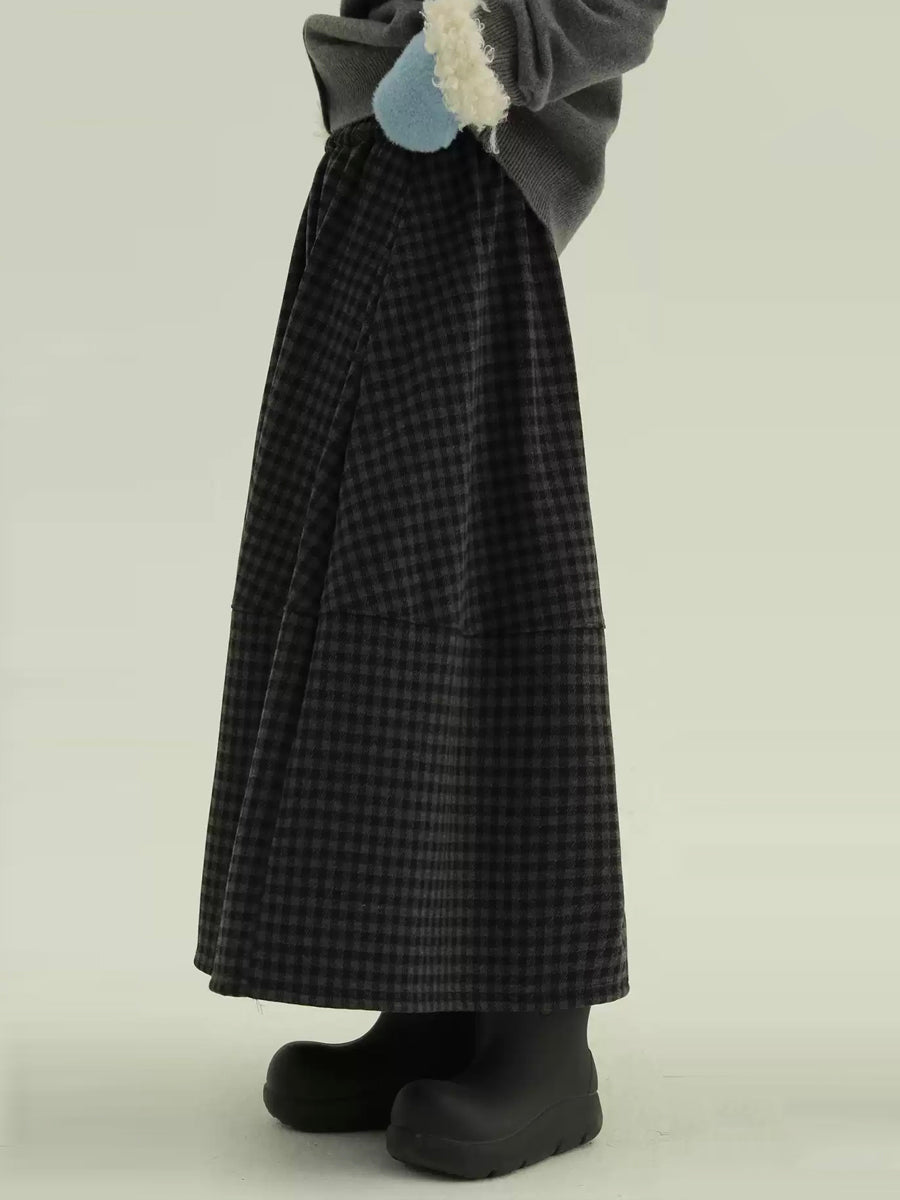 Vinterkjol med fleecefoder och rutig A-form för kvinnor