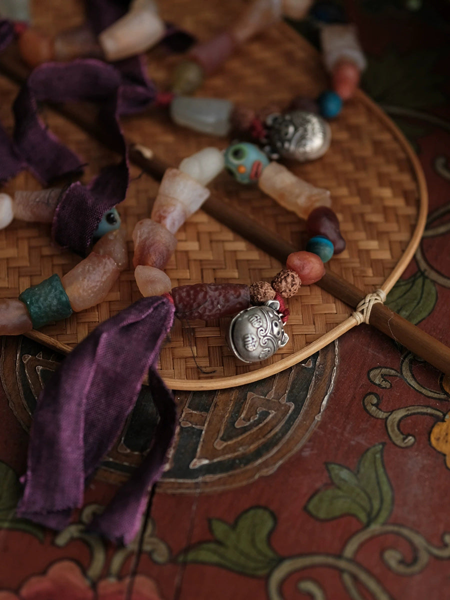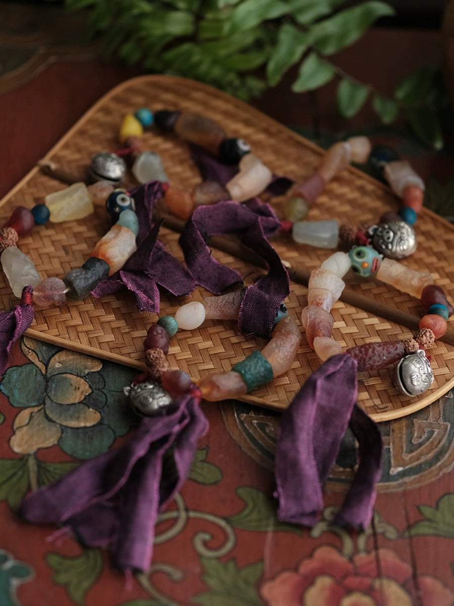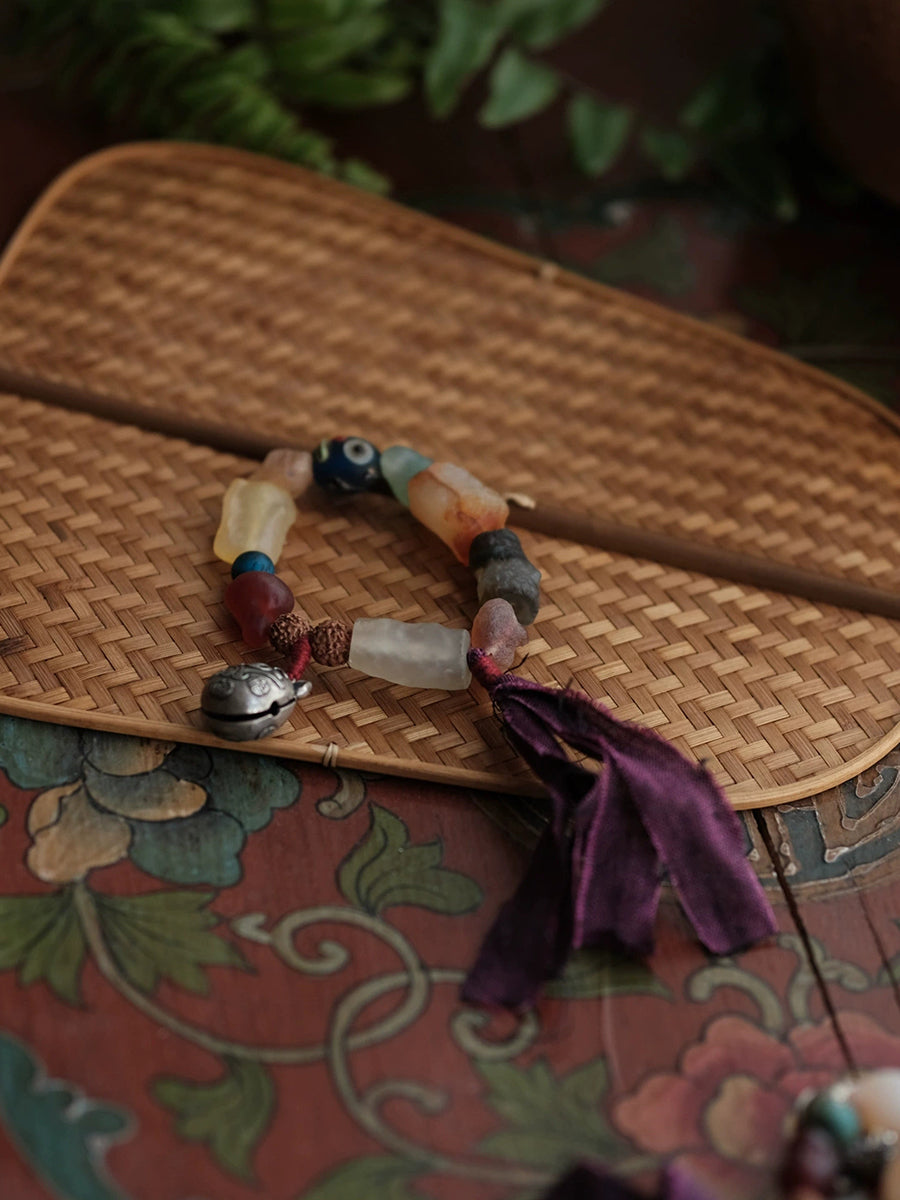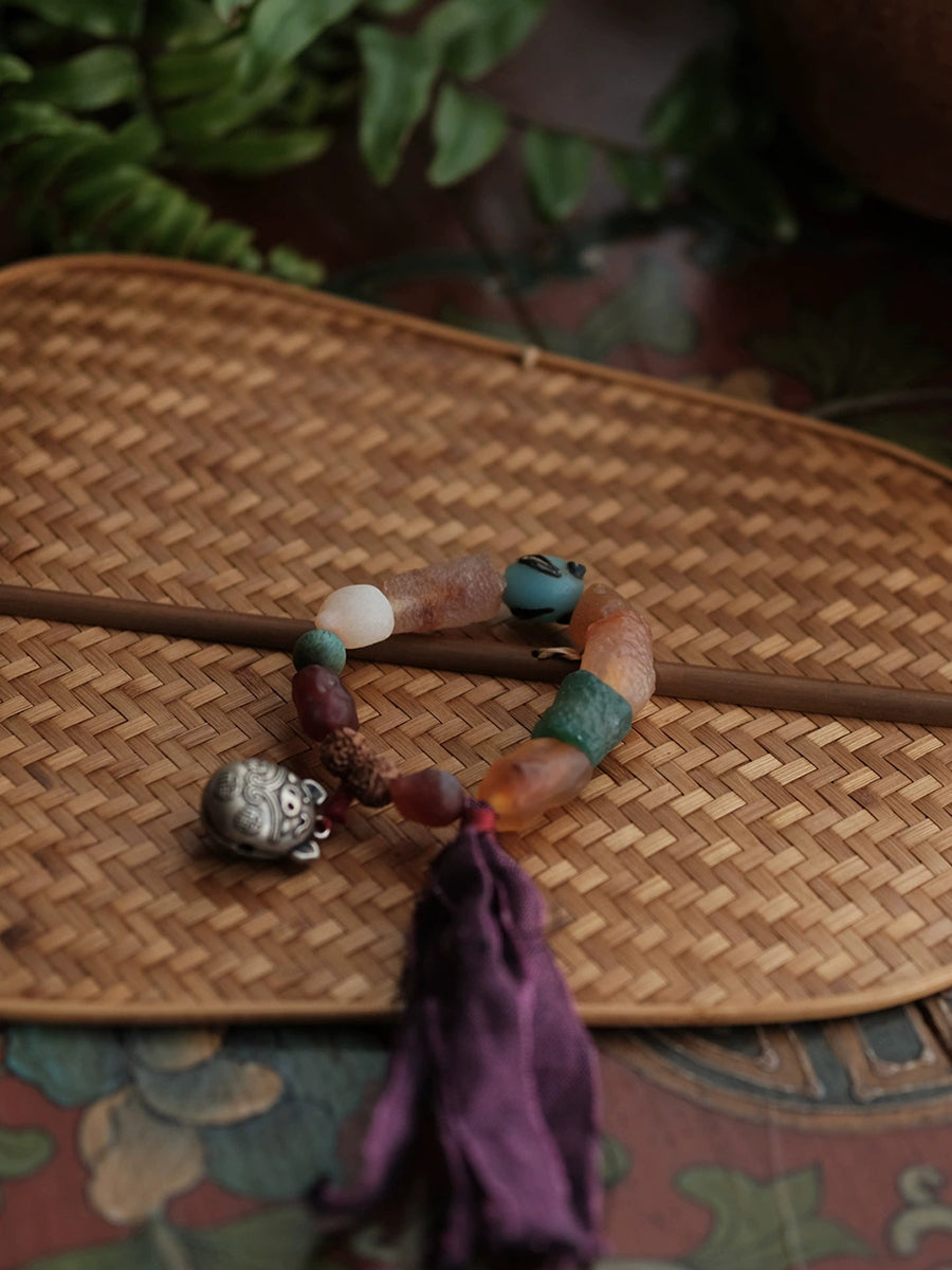 Kvinnors etniska träpärlor handgjorda tofsarmband