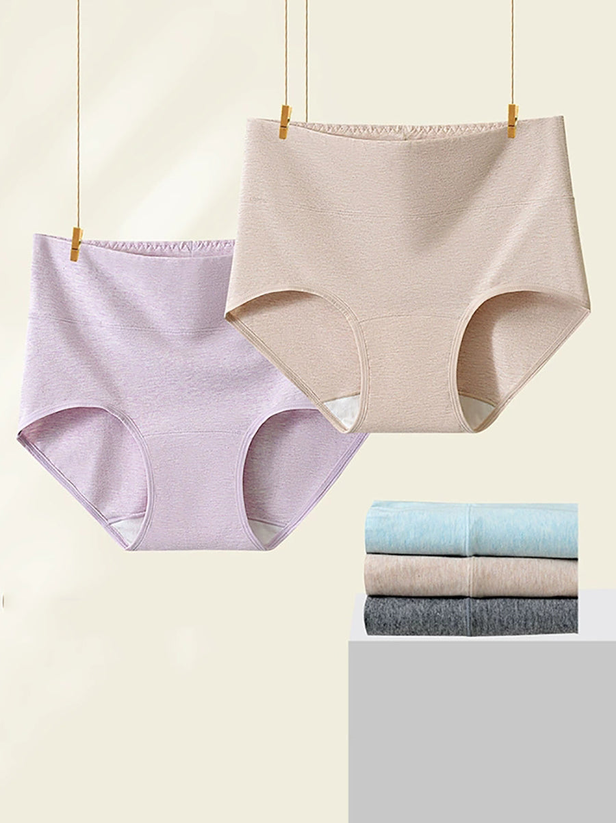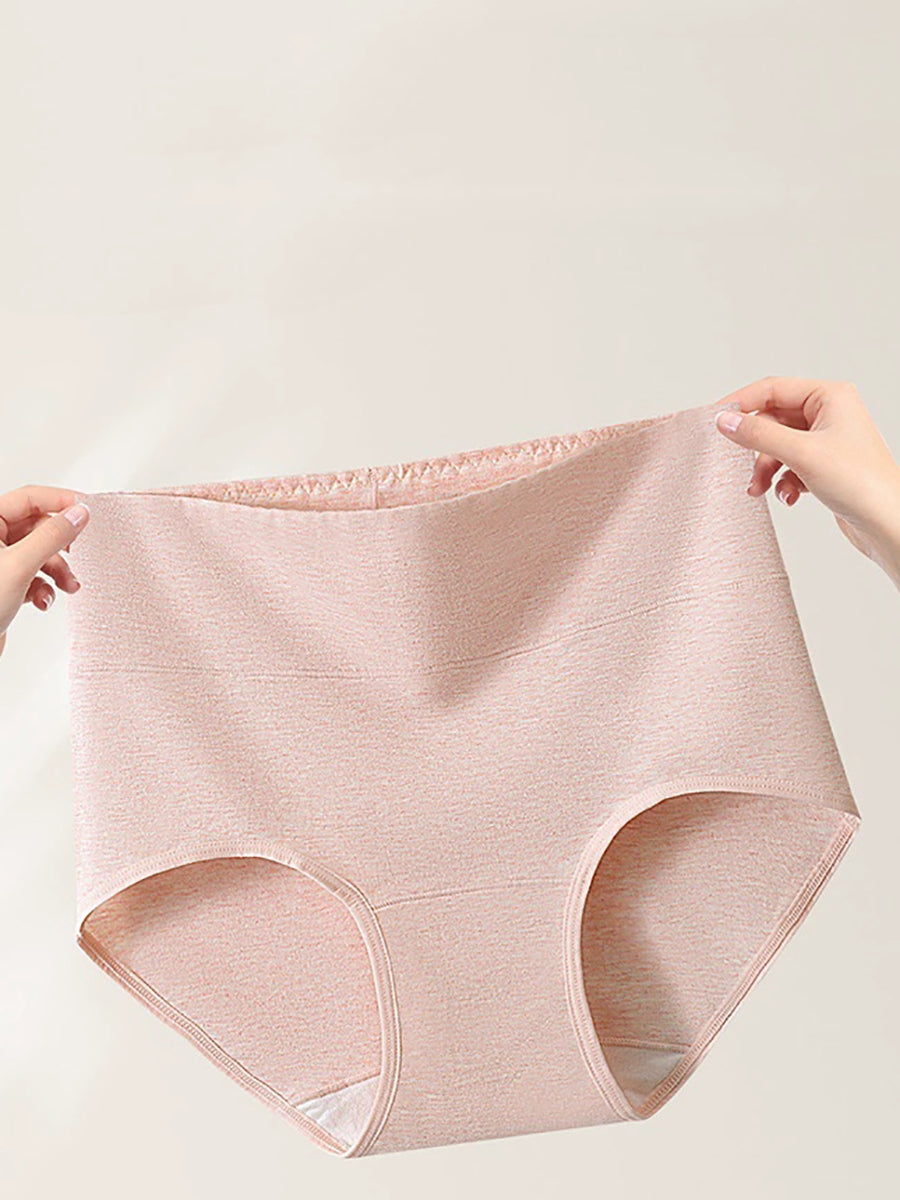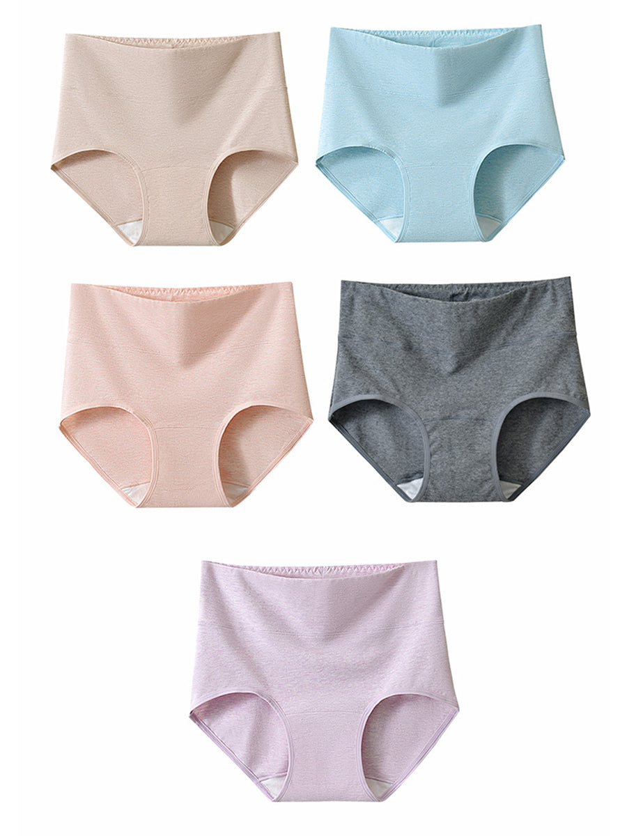 5 stycken kvinnors renfärgade bomullsunderkläder med hög midja