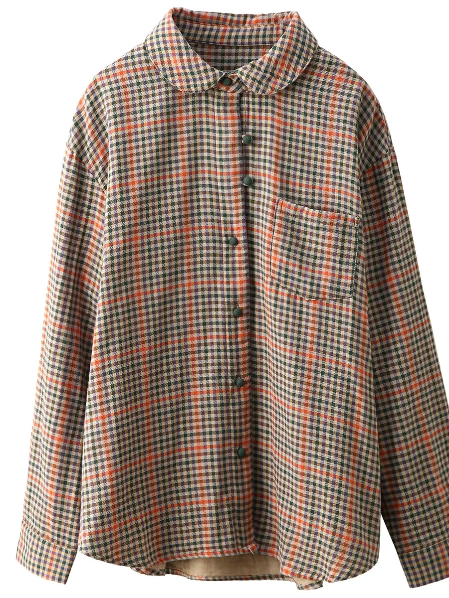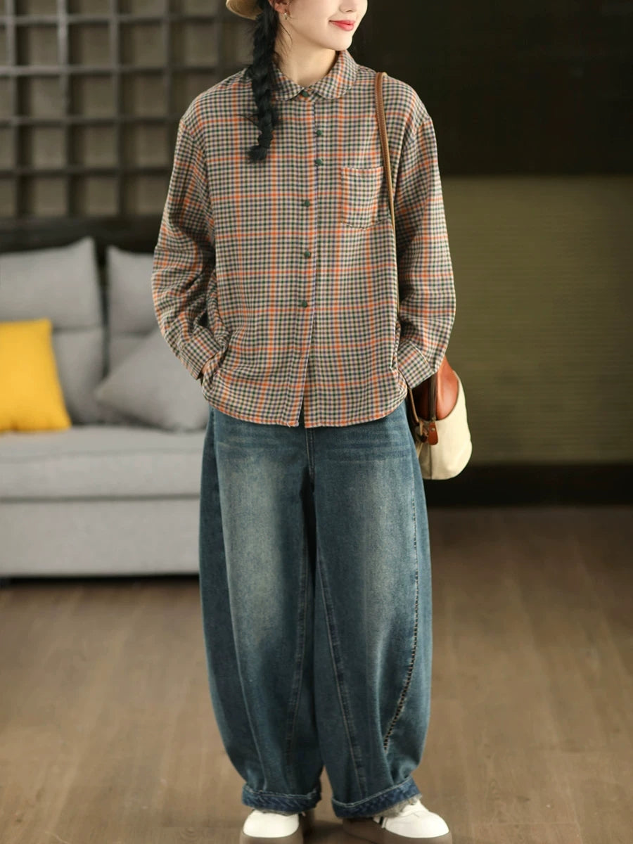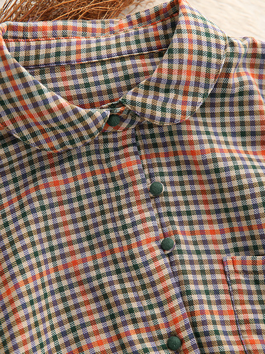 Vårskjorta med konstnärlig rutig krage för kvinnor i 100 % bomull