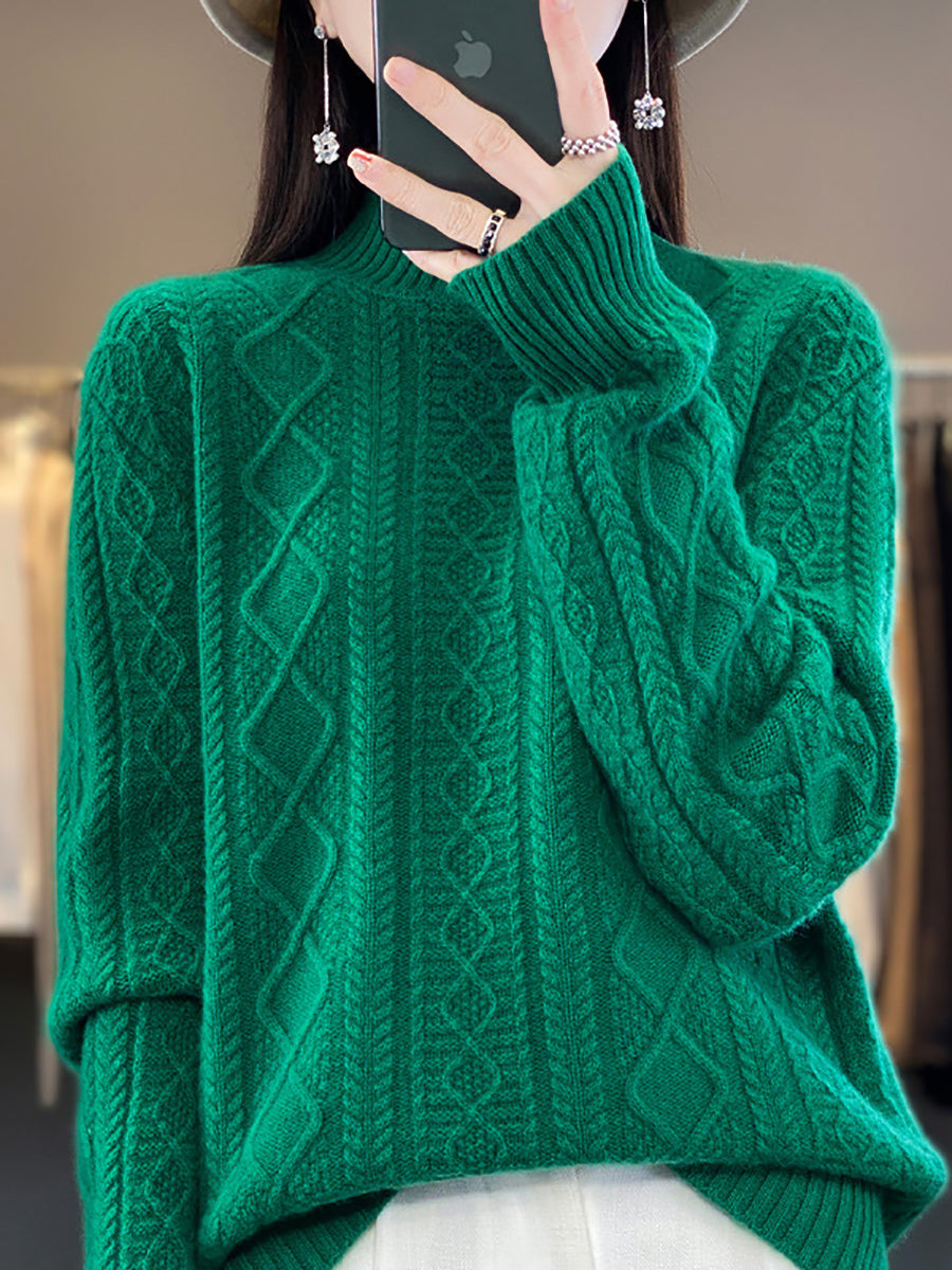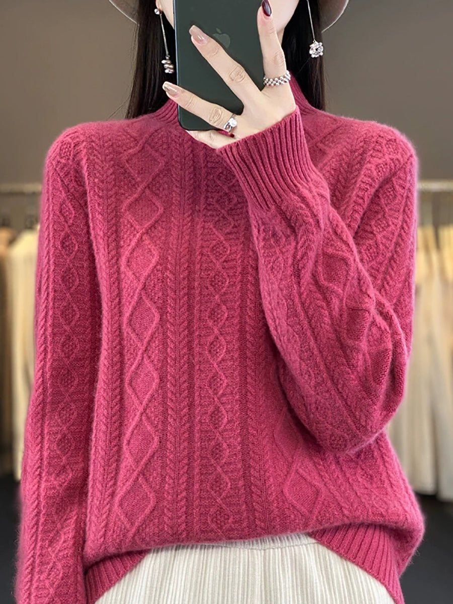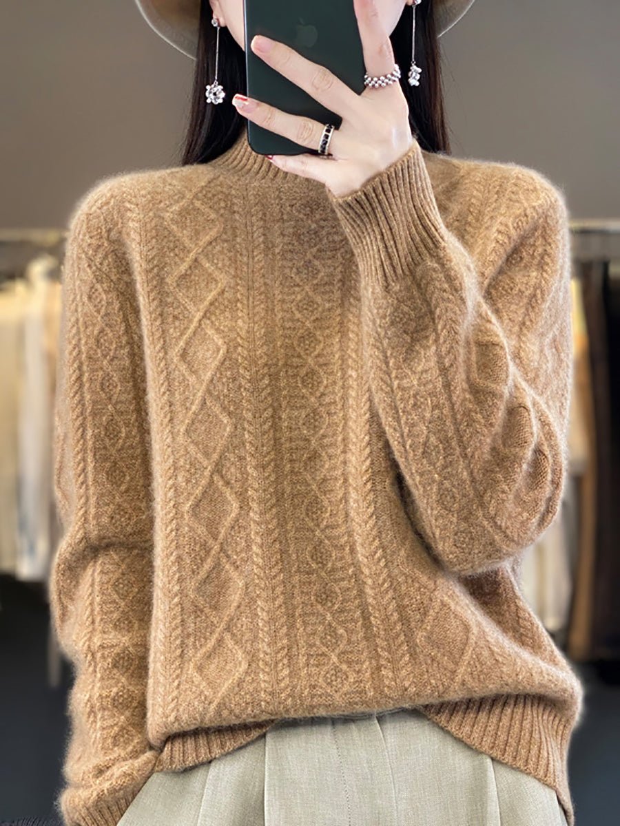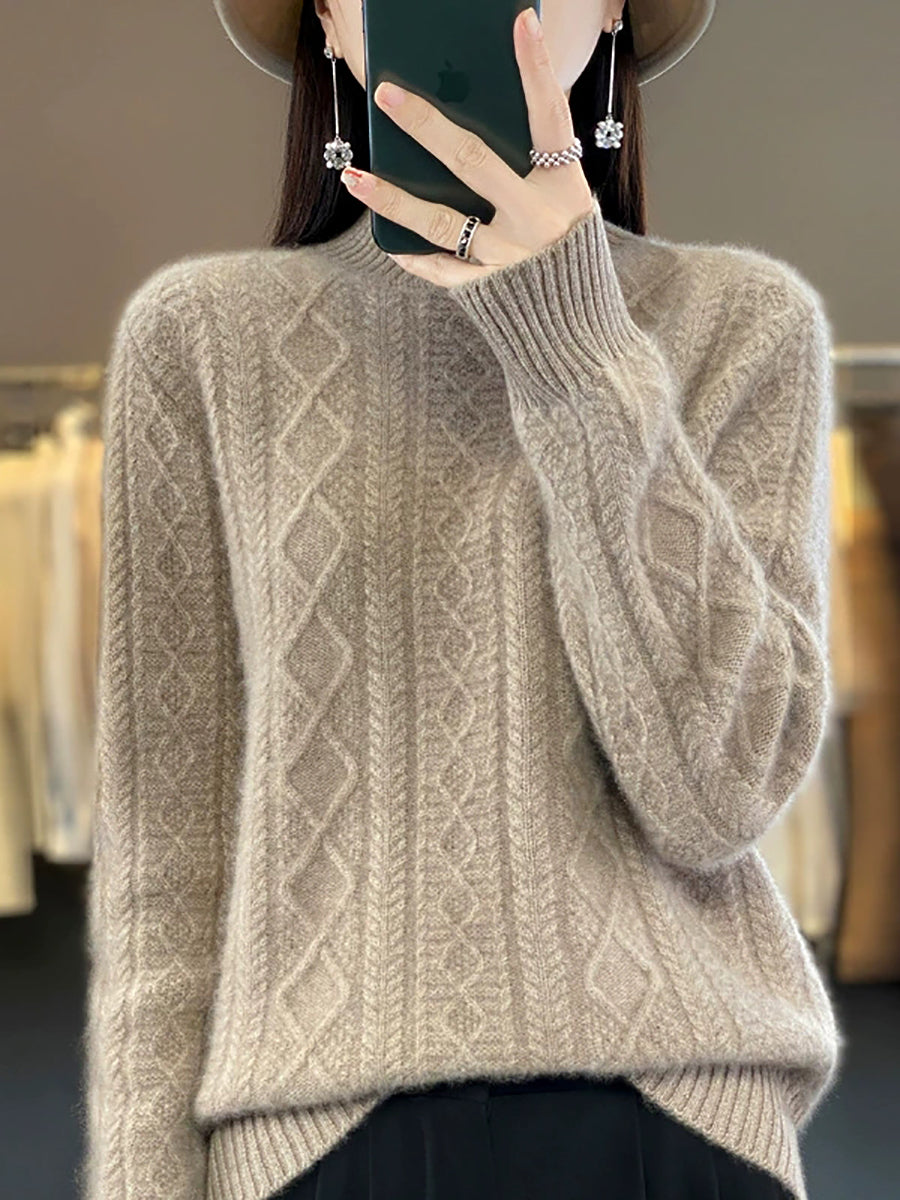 Höstkonstnärlig Jacquard-ulltröja med halv polotröja för kvinnor