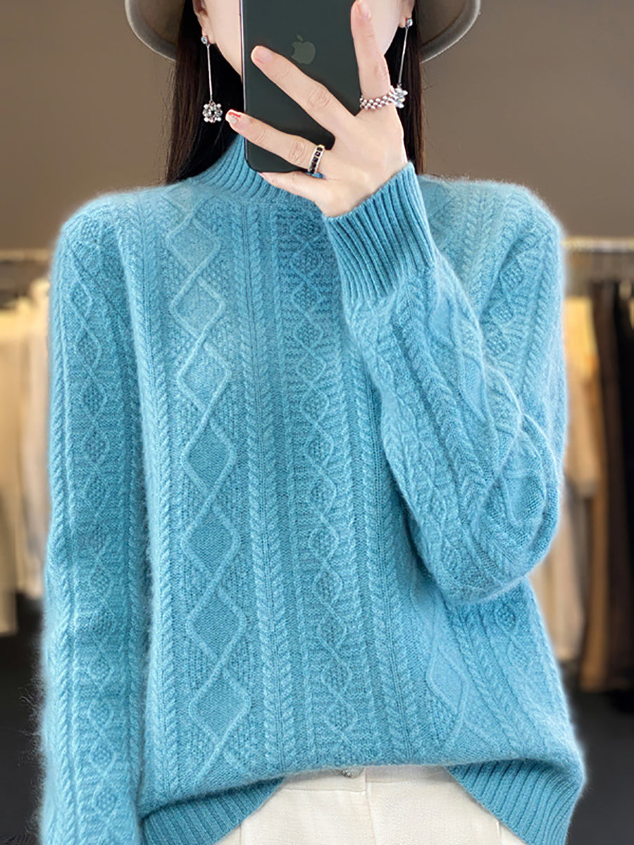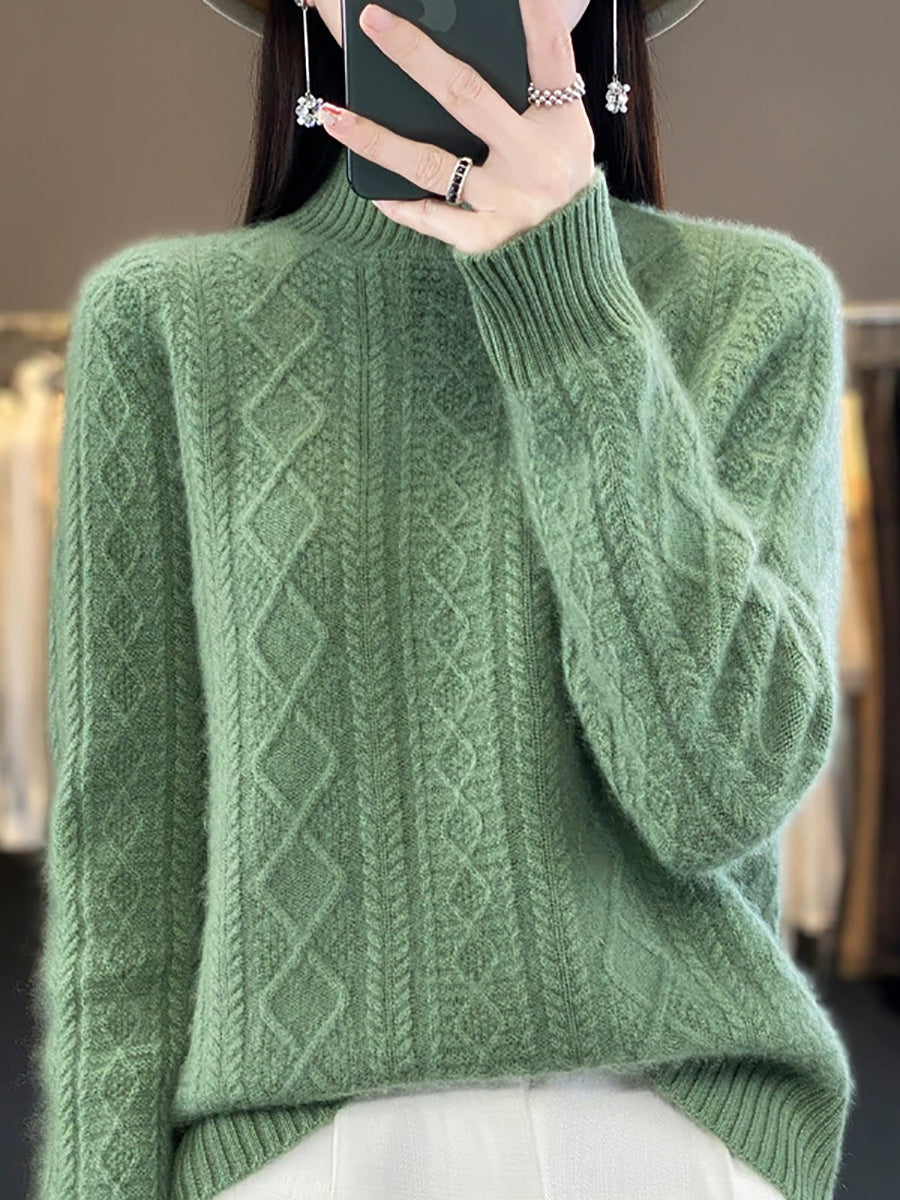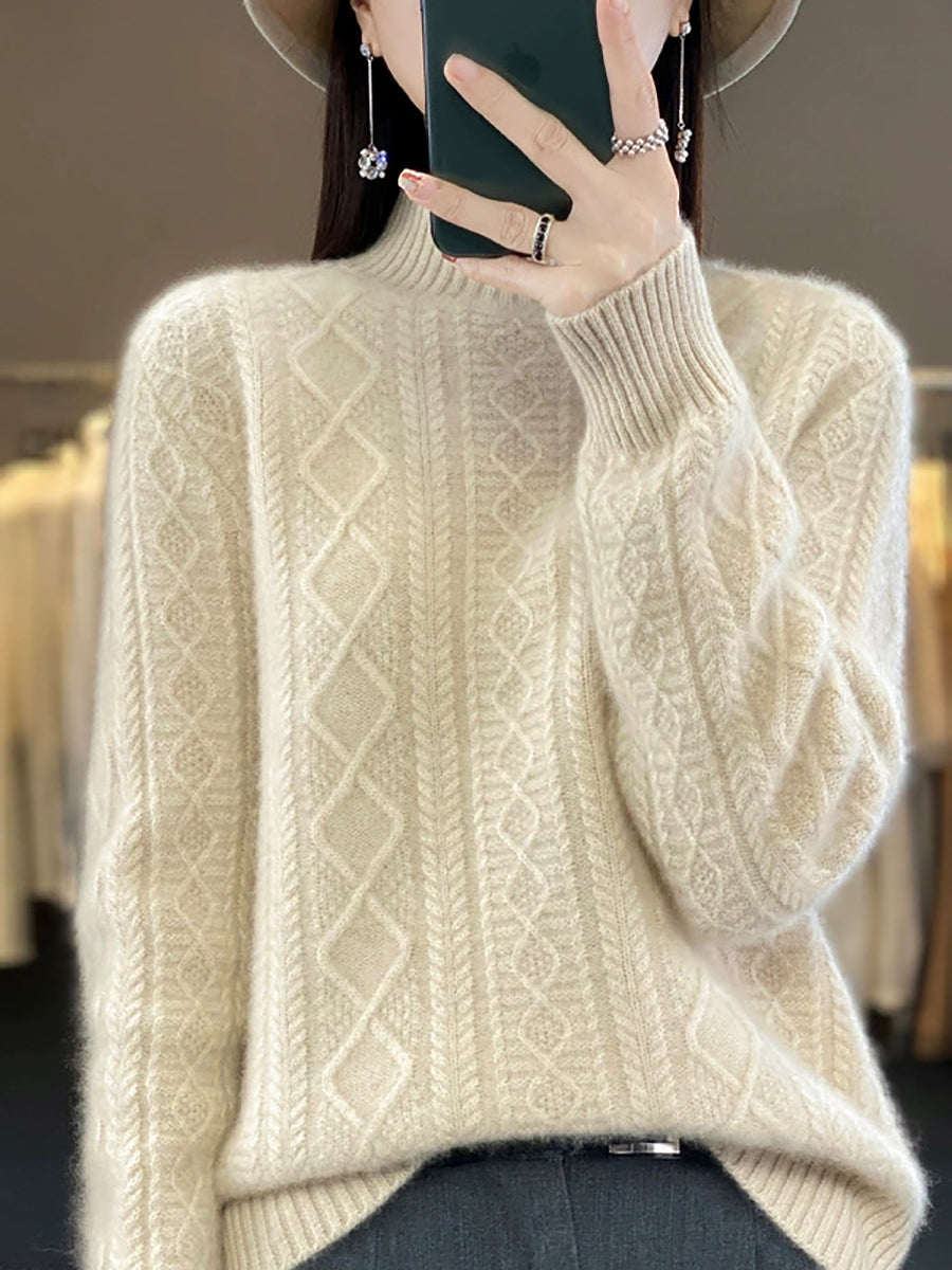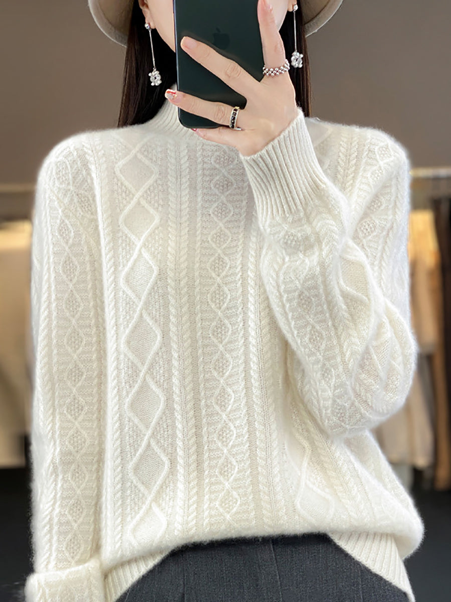 Höstkonstnärlig Jacquard-ulltröja med halv polotröja för kvinnor