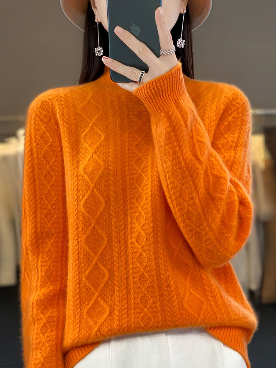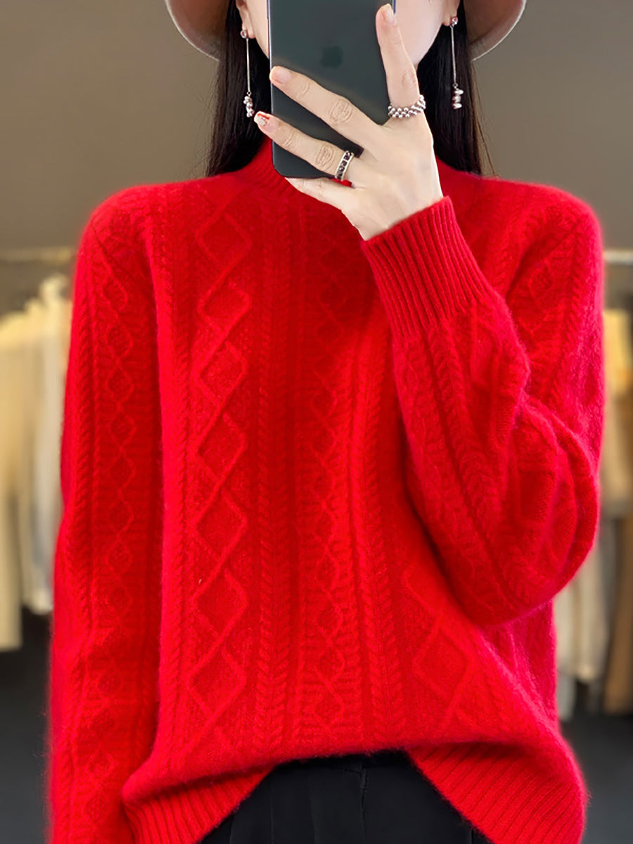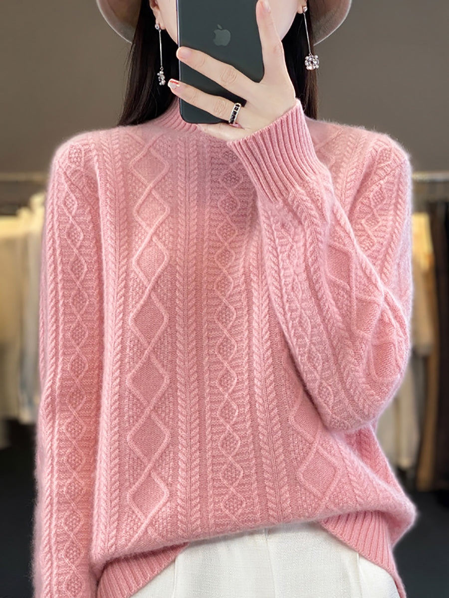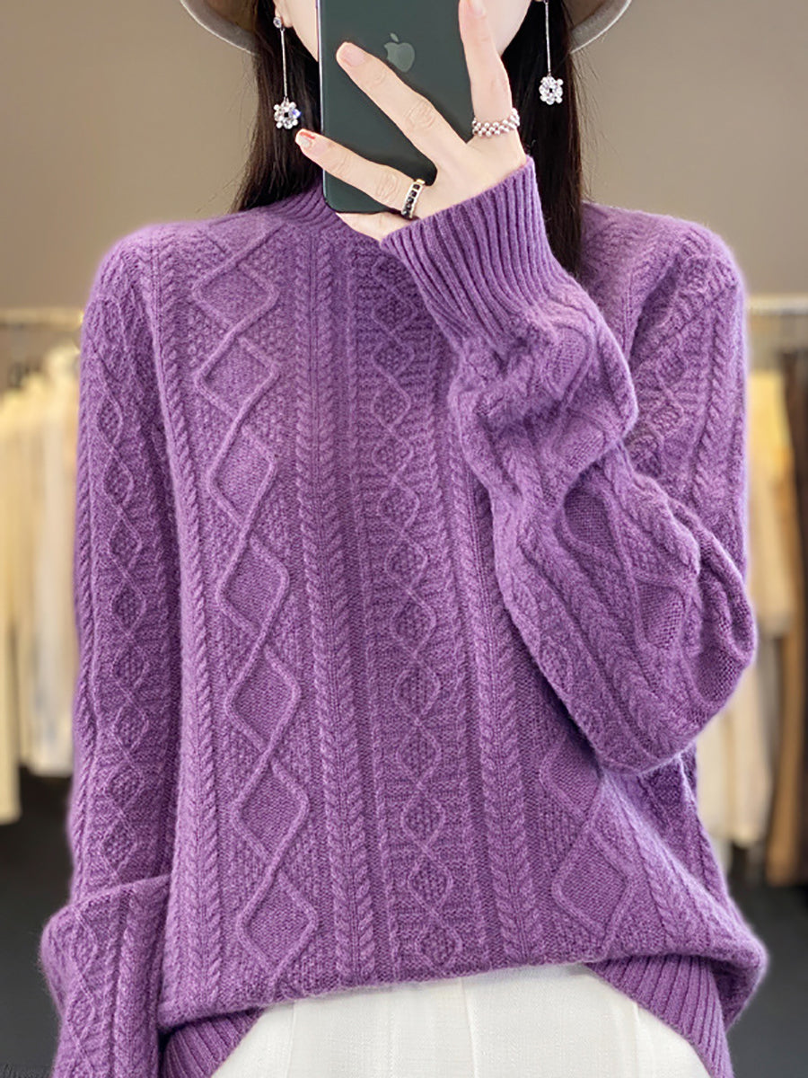 Höstkonstnärlig Jacquard-ulltröja med halv polotröja för kvinnor
