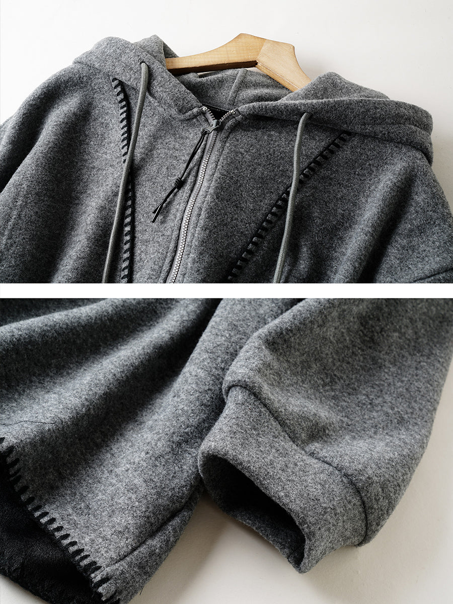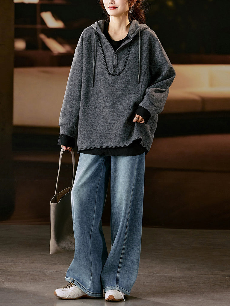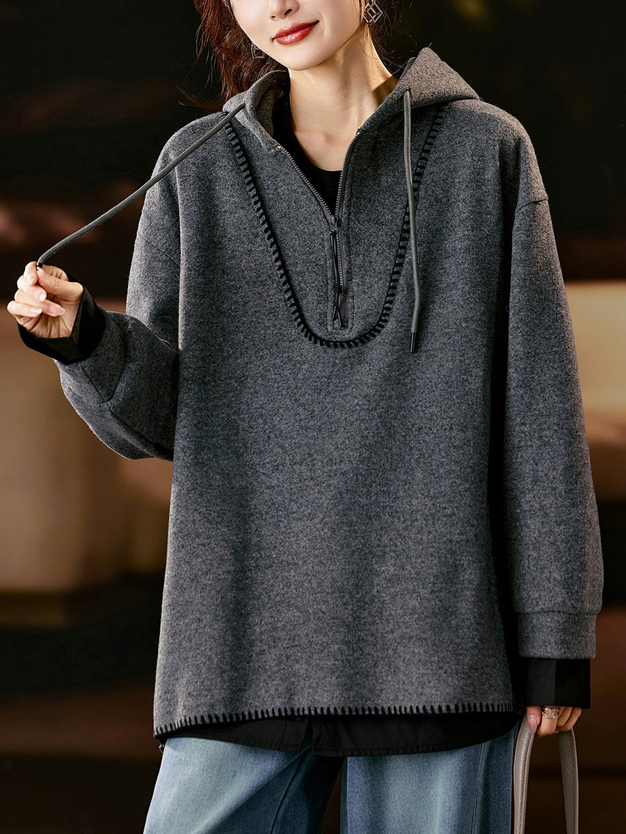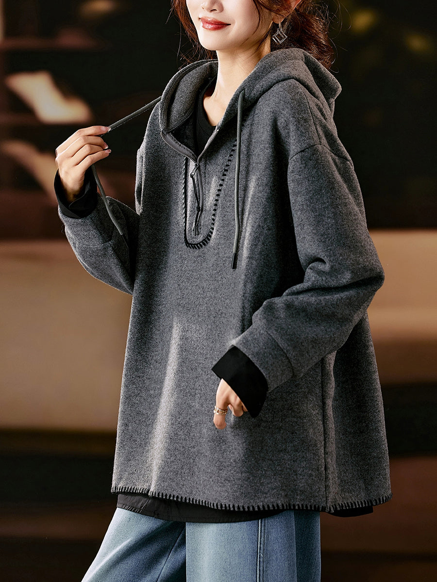 Konstnärlig hösthuvtröja i ren färg för kvinnor med fleecefoder