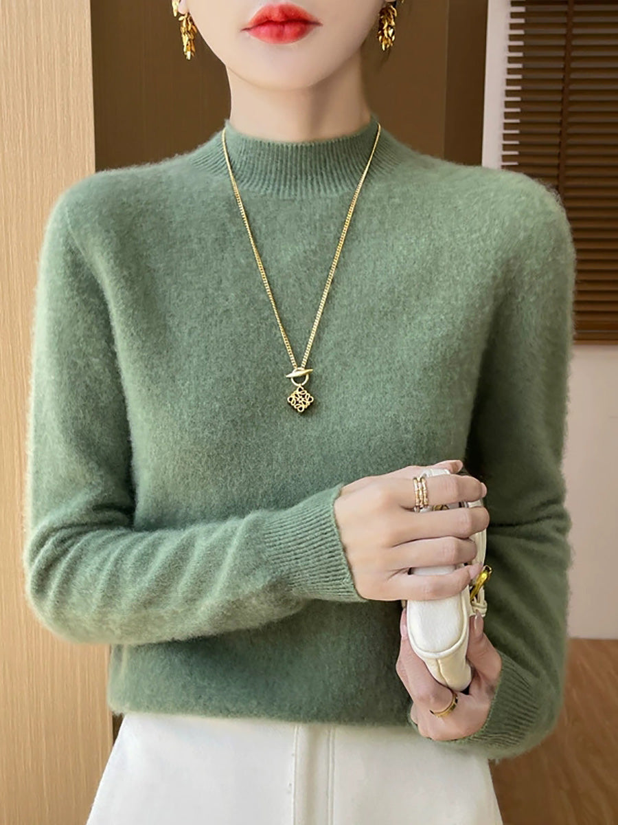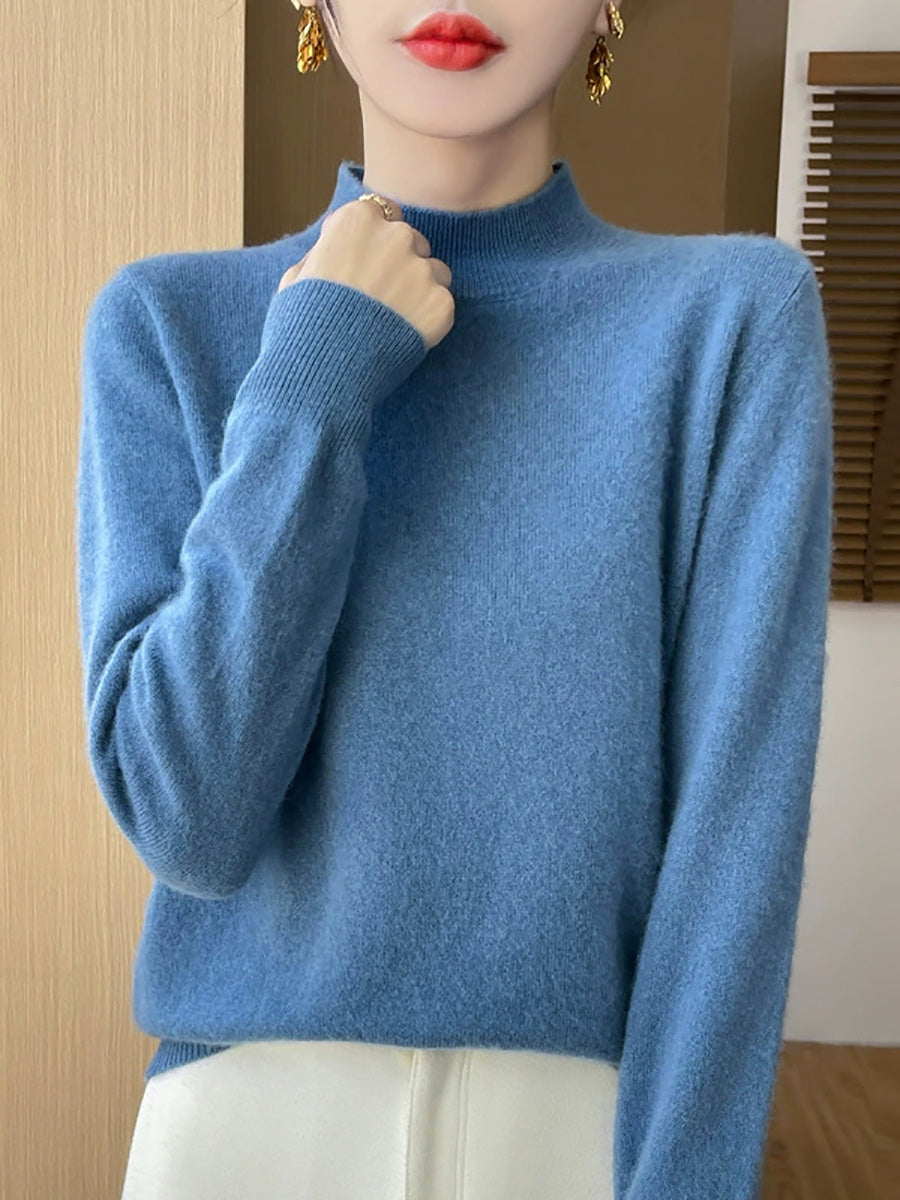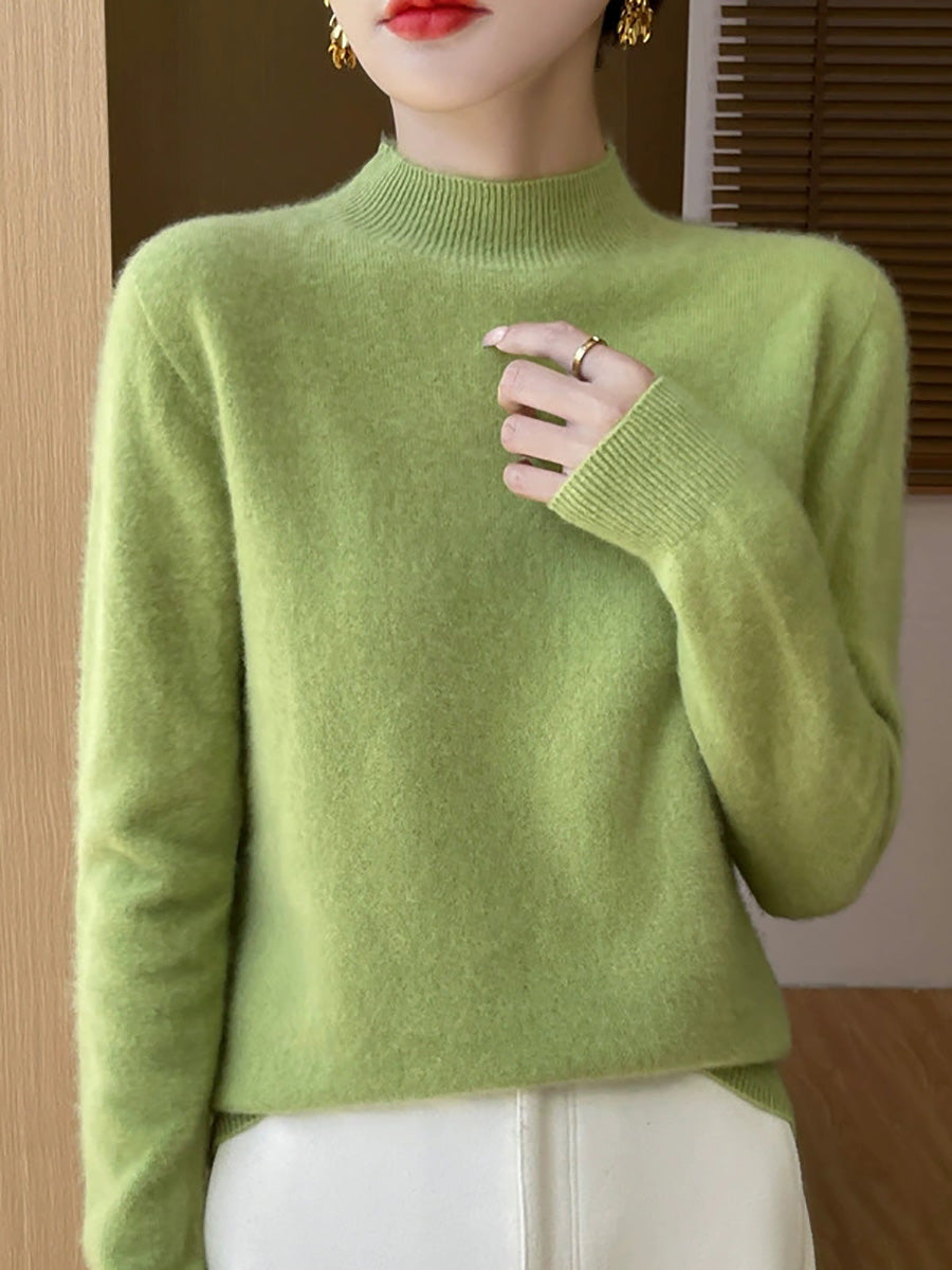 Konstnärlig vårtröja i ren färg för kvinnor med polotröja