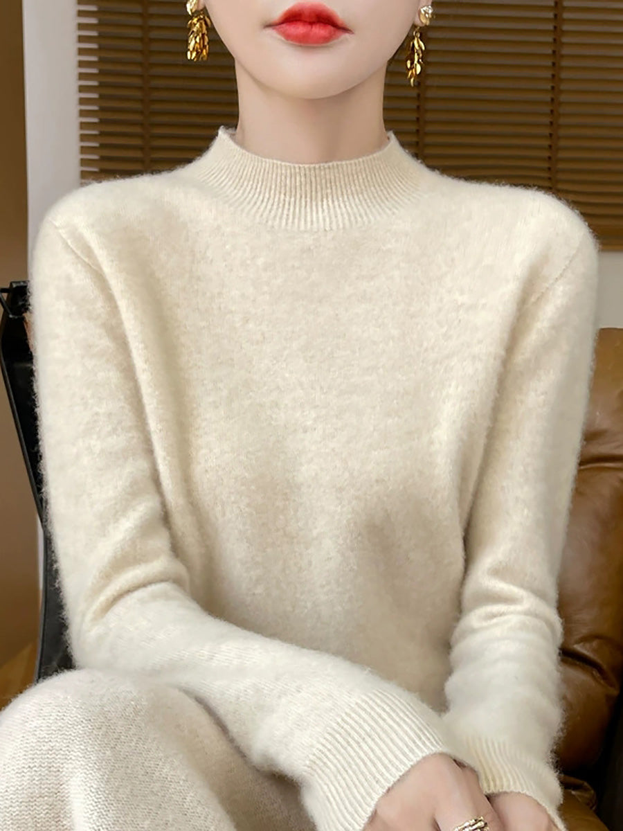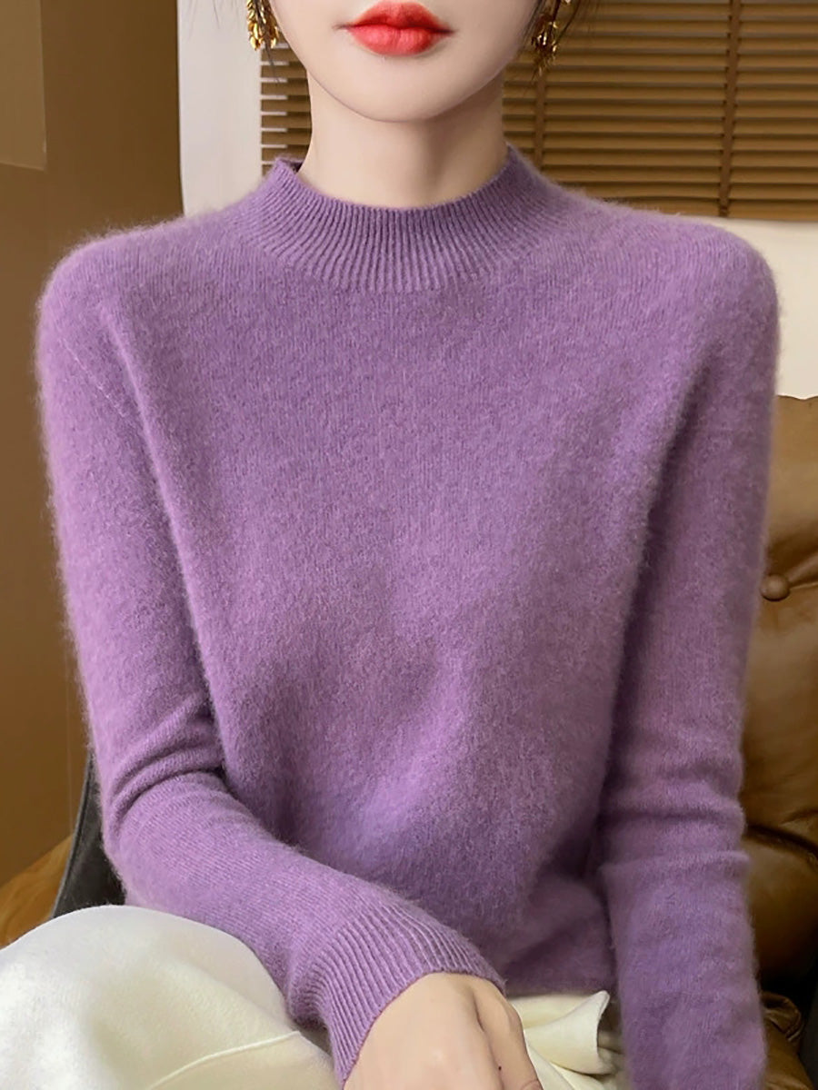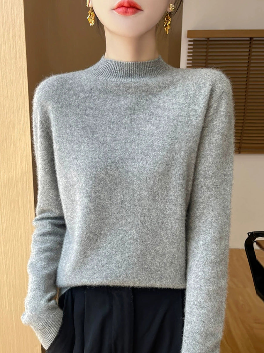 Konstnärlig vårtröja i ren färg för kvinnor med polotröja