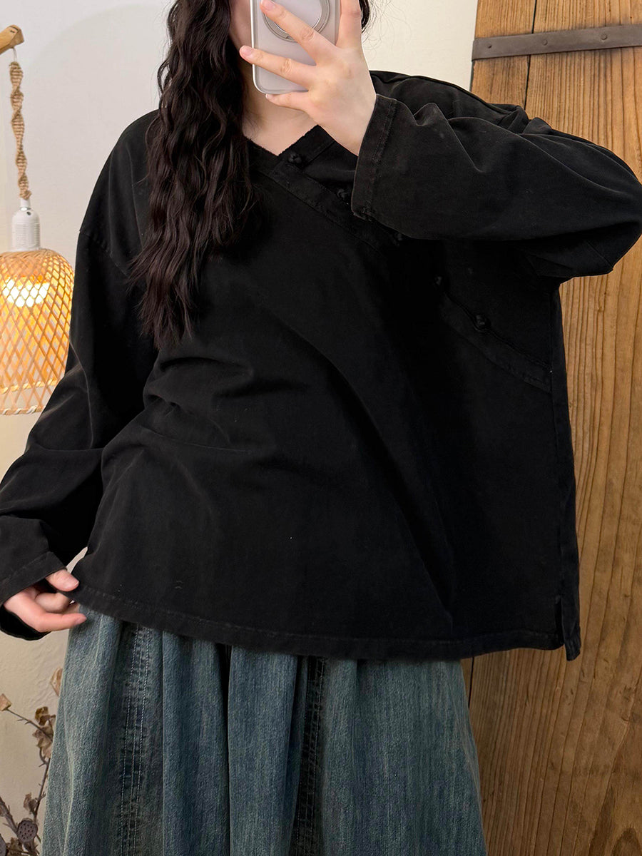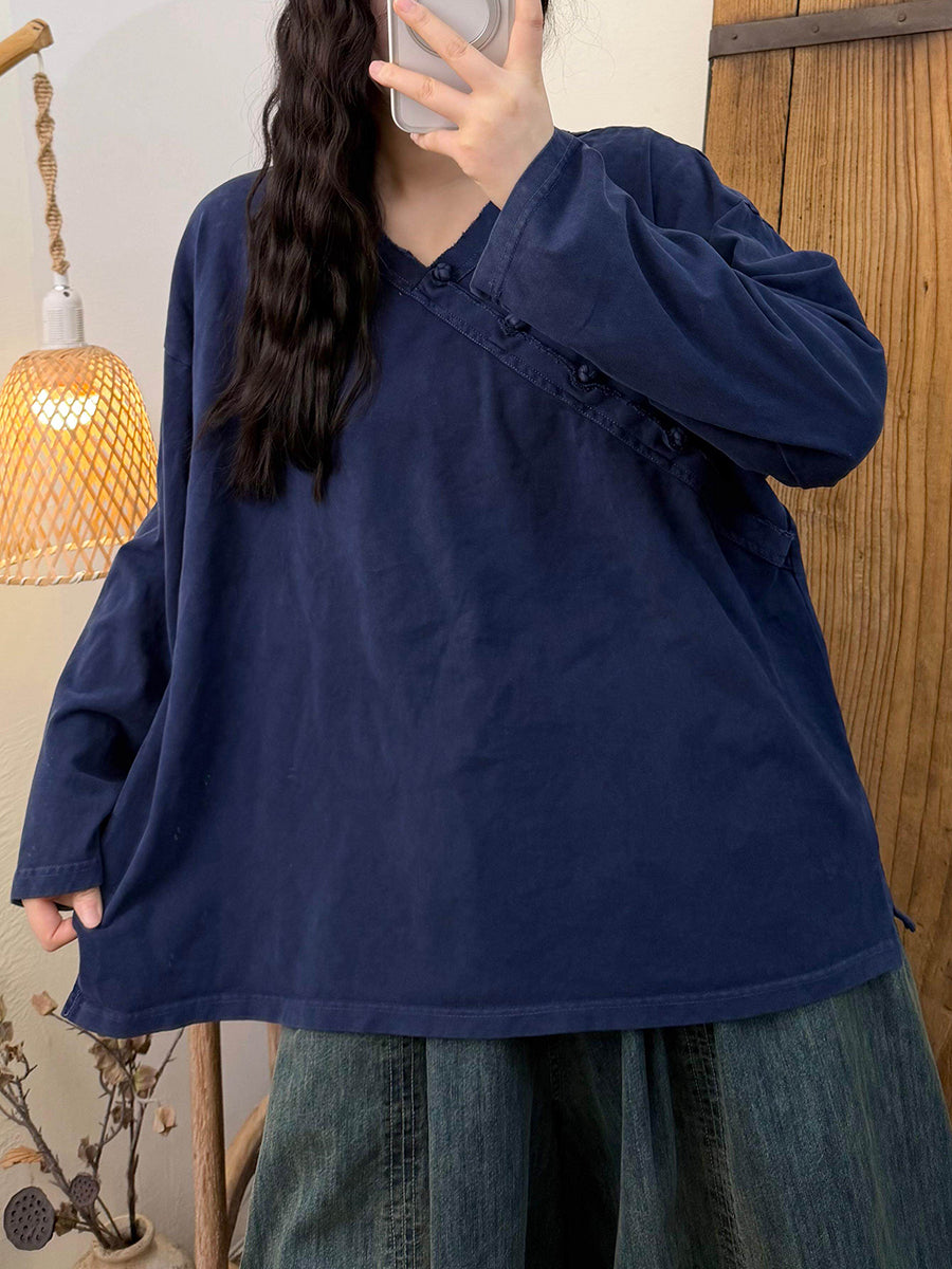 Damkläder Artsy Spring Vintage V-ringad bomullsblus