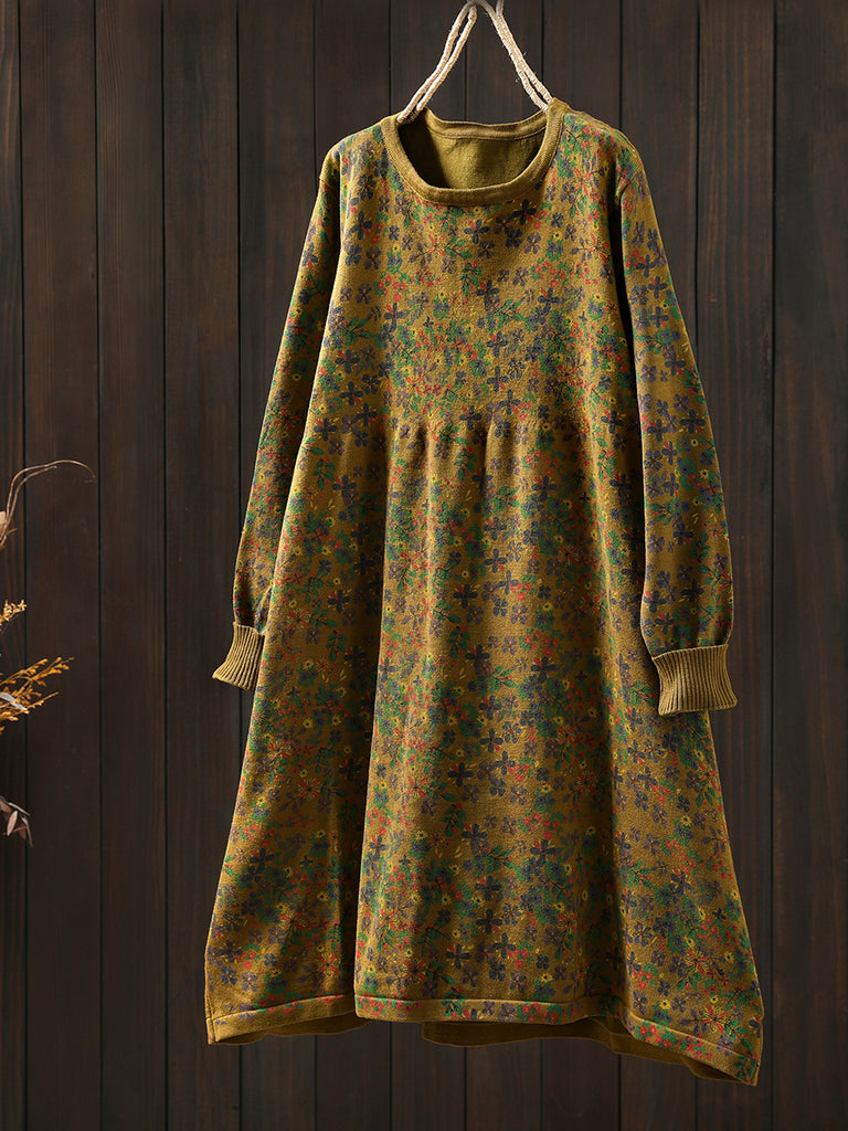 Höstkonstnärlig blommig bomullsklänning med O-ringning för kvinnor