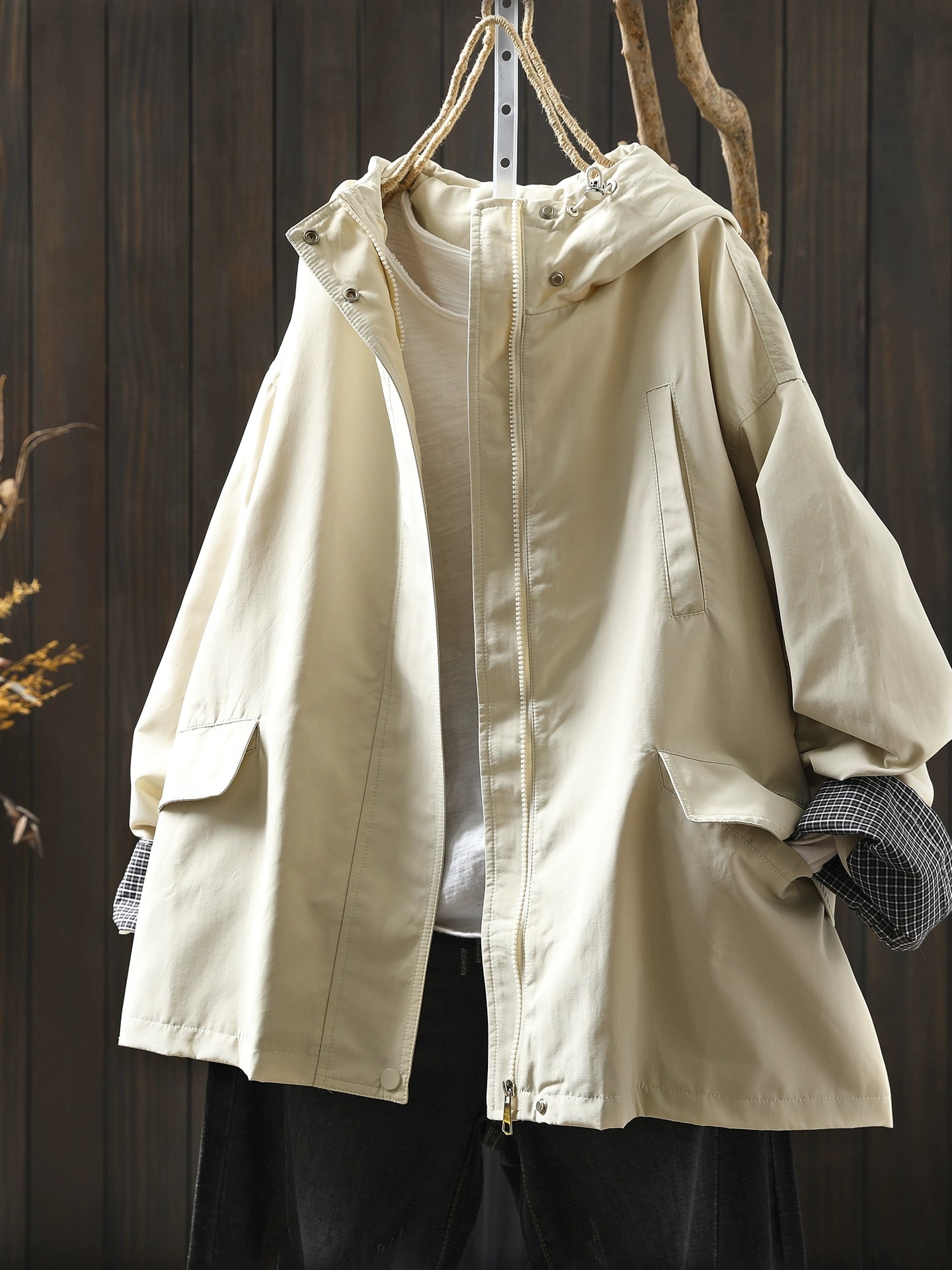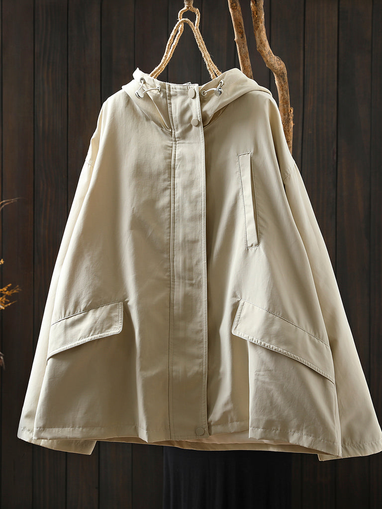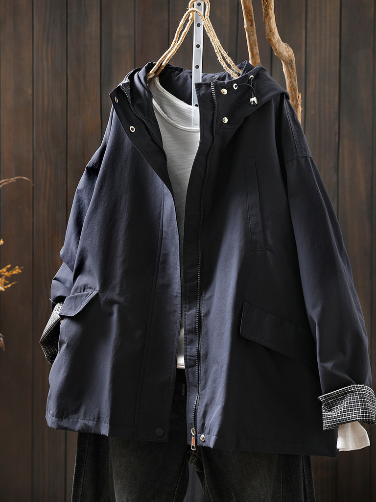 Dam Höst Casual Ren Färg Vindtät Huvjacka