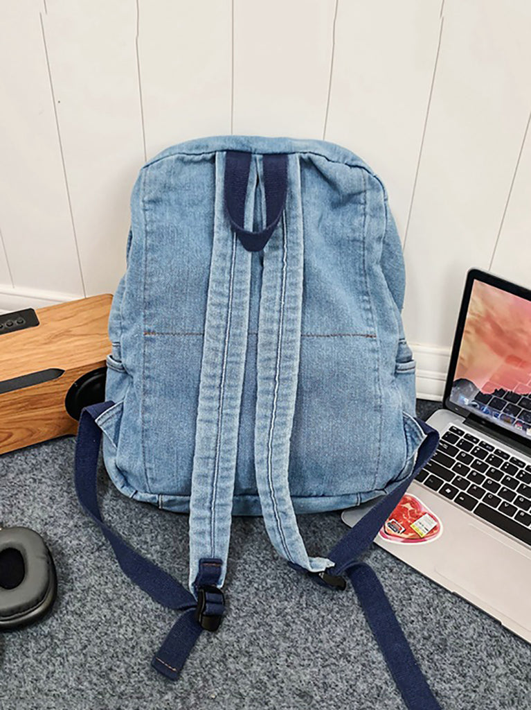 Kvinnor Casual Solid Skol Denim Ryggsäck med stor kapacitet