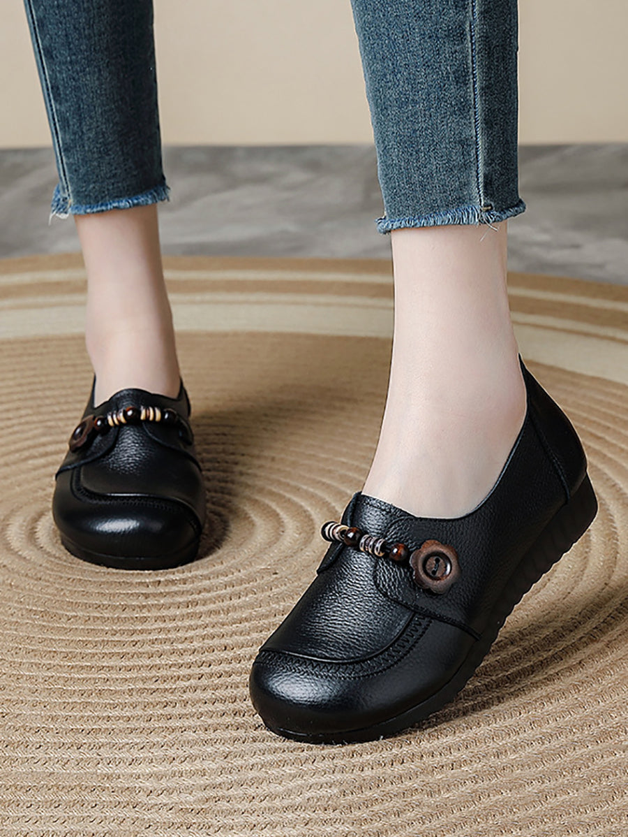 Dam Retro Vårskor i Äkta Läder med Låg Klack