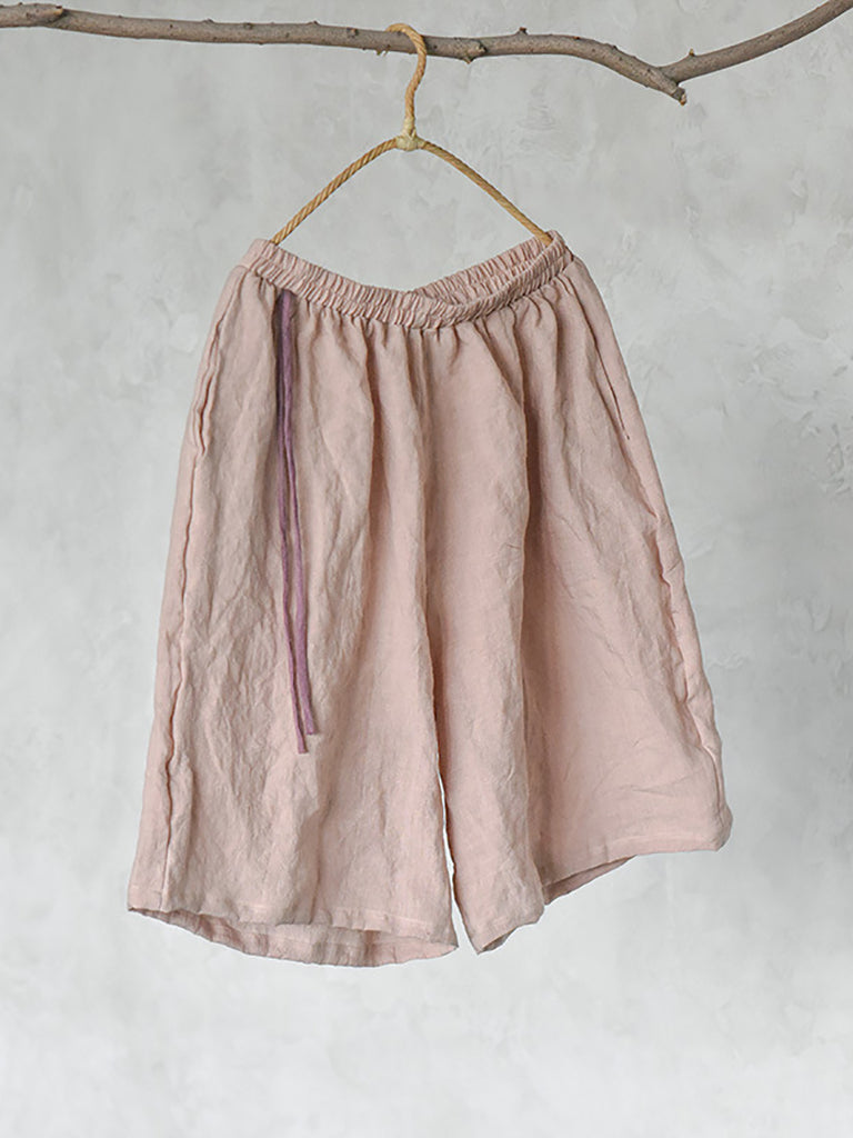 Dessa femte femte byxor i linne sommar avslappnad sommarremmar visar upp en retrostil med en elastisk midja och breda bendesign. Det solida mönstret och femte längden gör dem perfekta för de varma årstiderna vår och sommar.